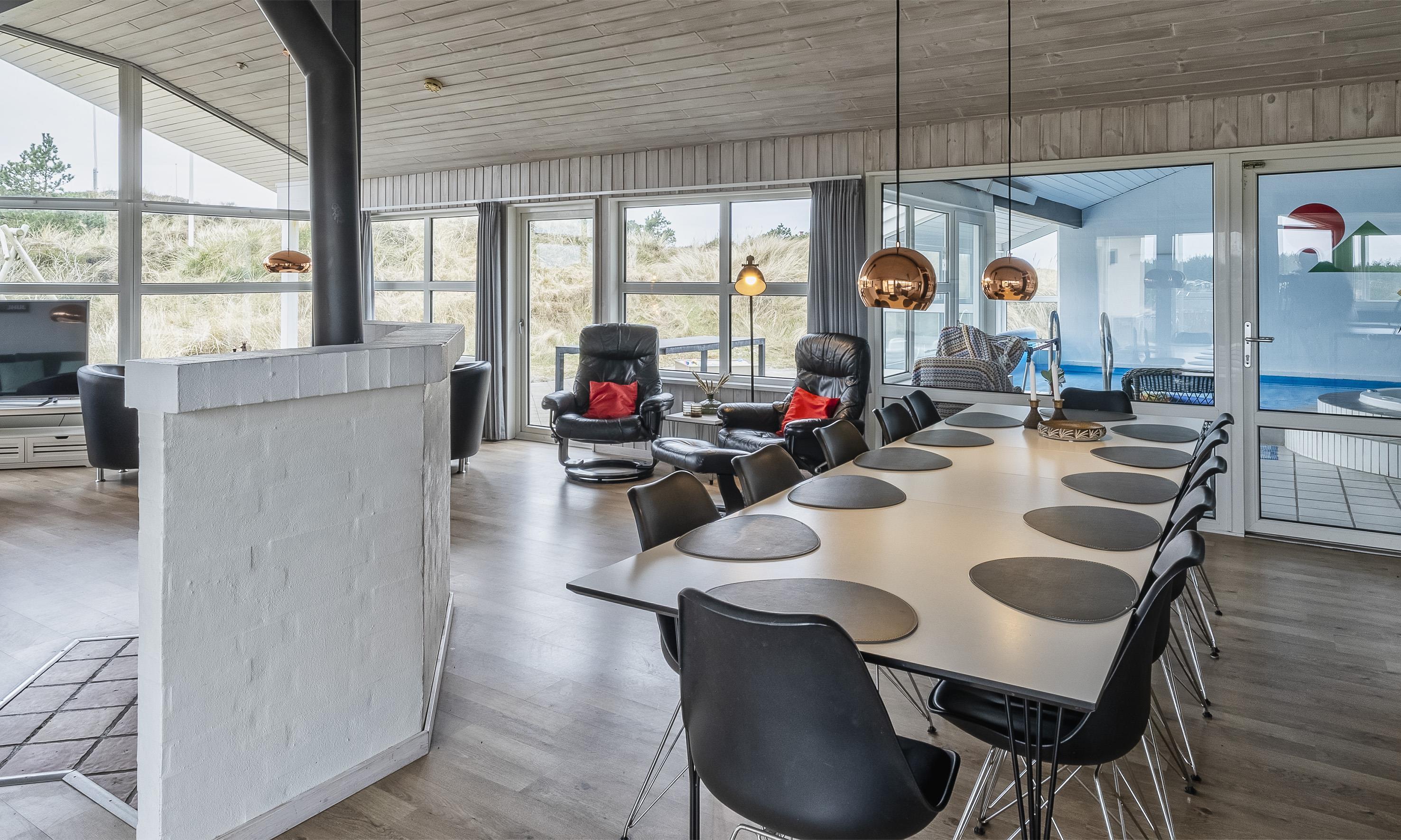 Meget flot sommerhus med pool i Vejers Strand til 12 gæster.