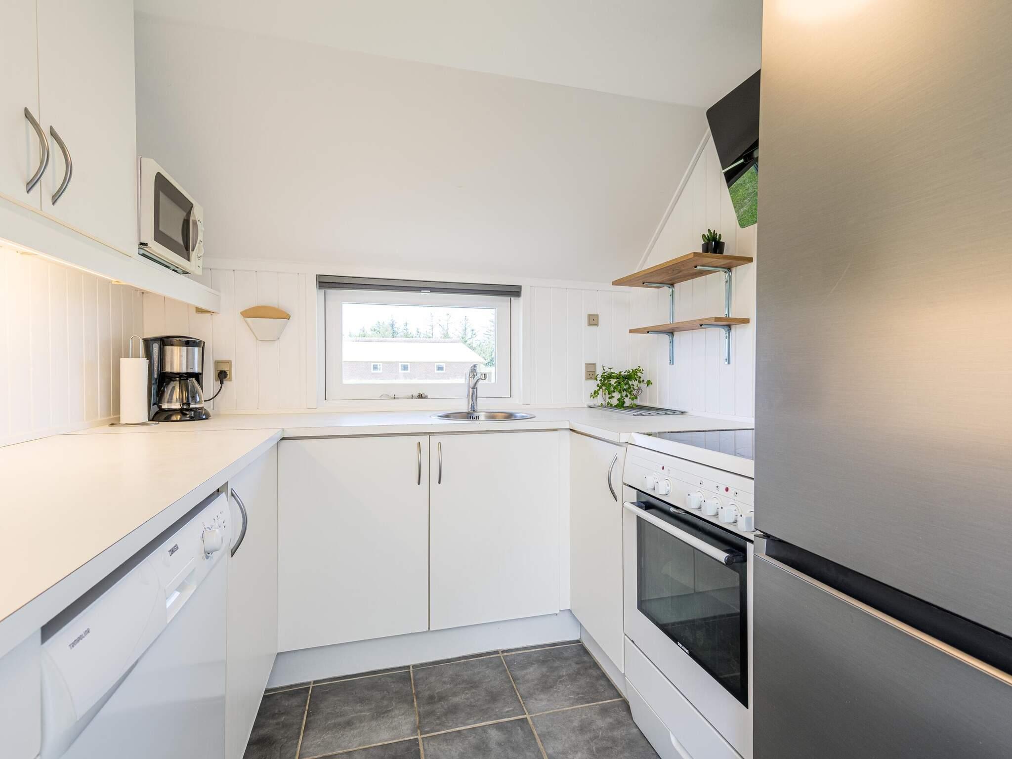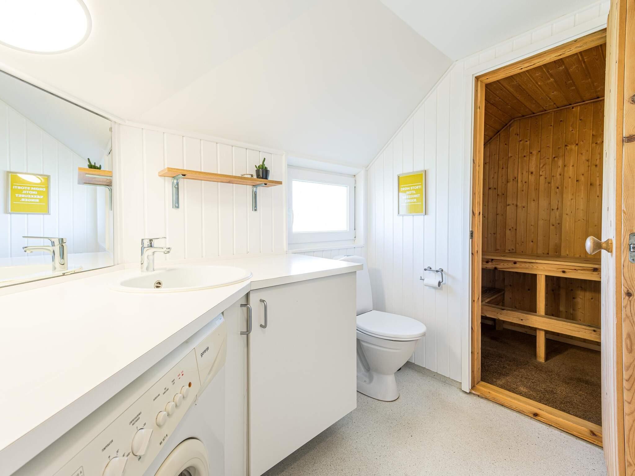 Et mindre men velindrettet køkken, badeværelse med sauna og vaskemaskine samt lille entré med opbevaringsplads lader ikke meget mere at ønske af dette fine sommerhus, og her vil alle uden tvivl få en god ferie.