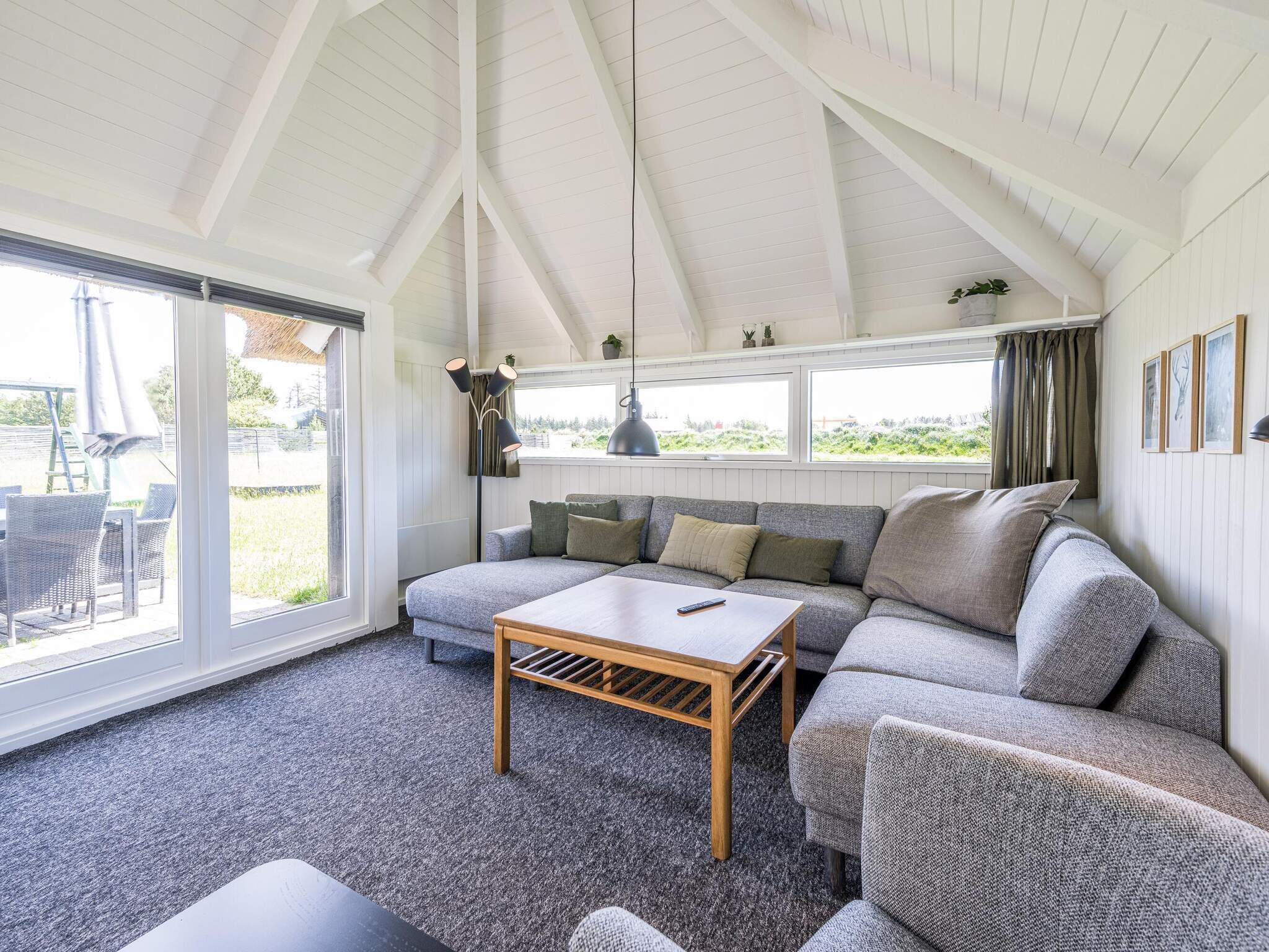Dejligt lyst sommerhus belligende i Vejers Strand der har en af Danmarks fineste badestrande. Sommerhuset rummer en hyggelig stue med brændeovn i åben forbindelse med spisestuen, hvorfra der er nem adgang til såvel køkken, som en praktisk fordelingsgang der baner vejen til alle sommerhusets soveværelser. Flere store vinduespartier sørger for et gavmildt lysindfald i det meste af sommerhuset og giver desuden rig mulighed for at følge med i livet på terrassen eller børnene der leger på grunden.