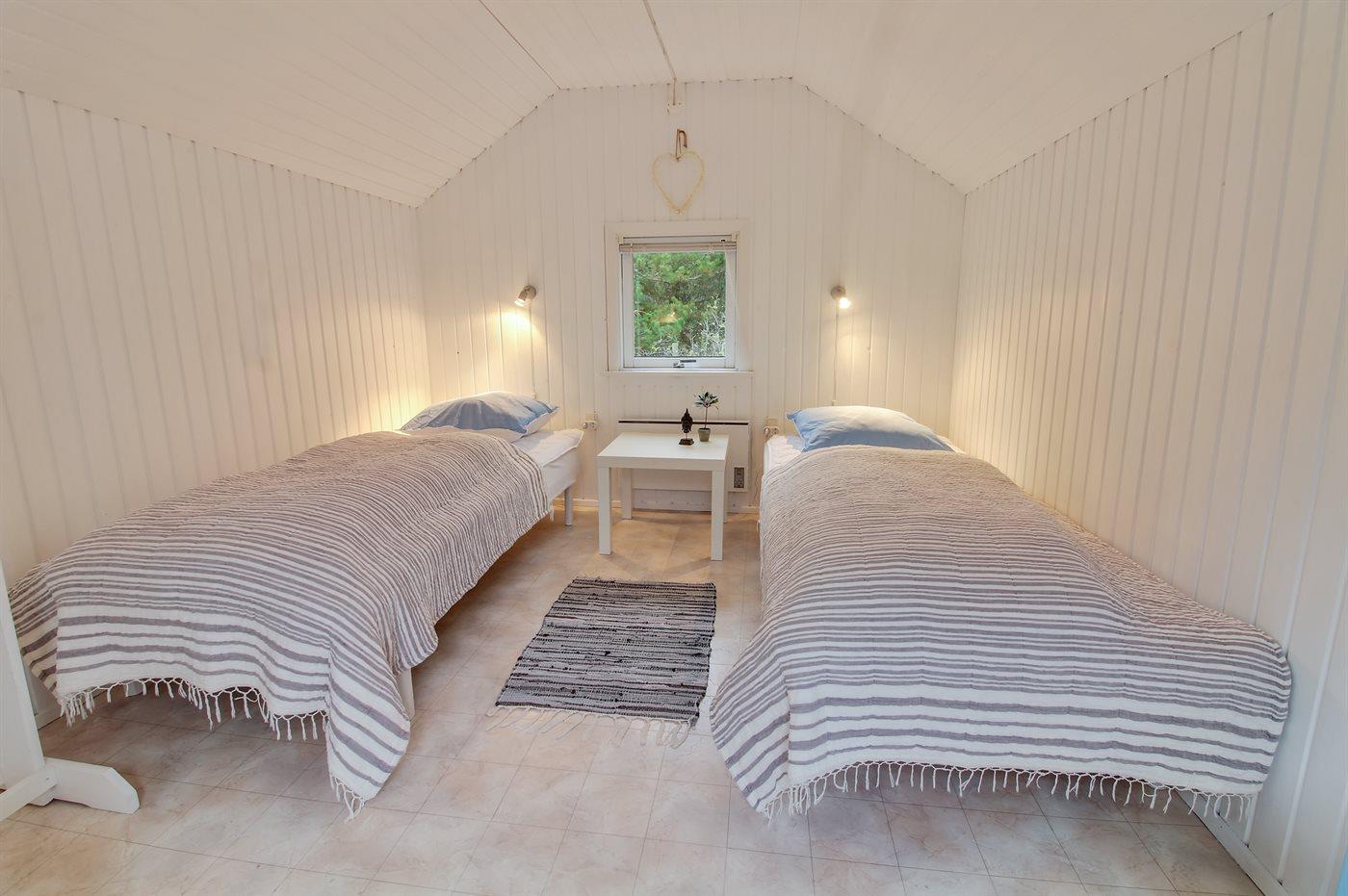 Der er i alt 4 soveværelser. Sovepladserne fordeler sig på: 6 sovepladser i dobbeltsenge. 2 sovepladser i enkeltsenge.- 2 af disse sovepladser befinder sig i et anneks.