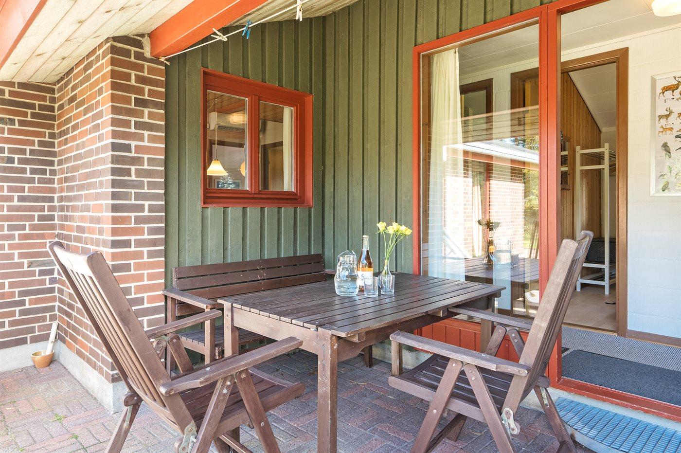 Ferieboligen er beliggende på en 2117 m² stor naturgrund. Der er 1000 m til havet. Nærmeste forretning er beliggende i en afstand af 500 m. Til ferieboligen hører 38 m² terrasseareal. Desuden er der 25 m² overdækket terrasse. Der er redskabsrum. Parkering ved ferieboligen.
