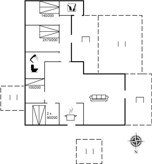 Der er i alt 4 soveværelser. Sovepladserne fordeler sig på: 6 sovepladser i dobbeltsenge. 1 soveplads i enkeltseng.