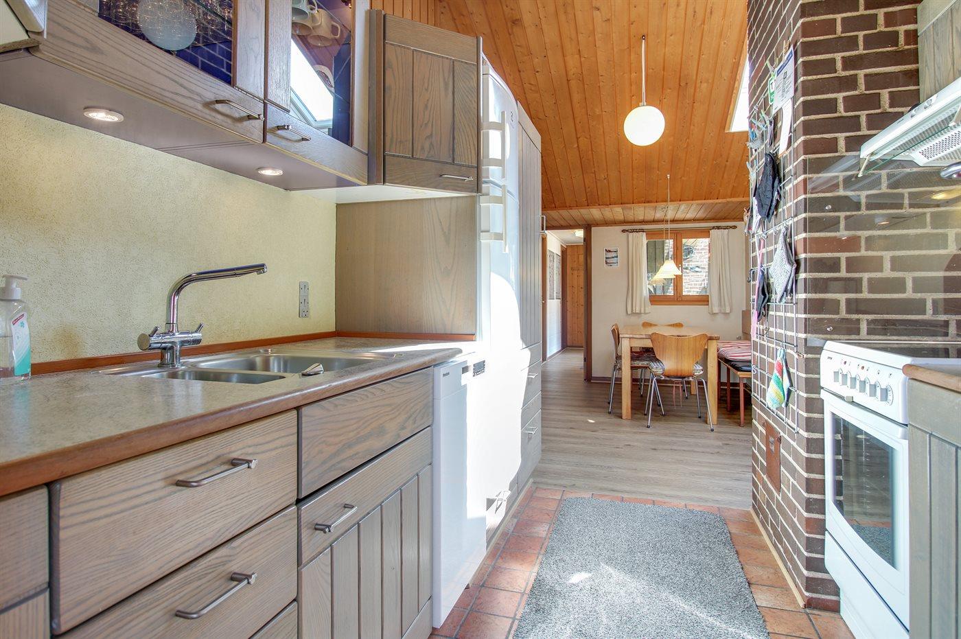 Køkkenet er udstyret med 1 køleskab. Der er 4 keramiske kogeplader, varmluftovn, mikrobølgeovn samt opvaskemaskine.