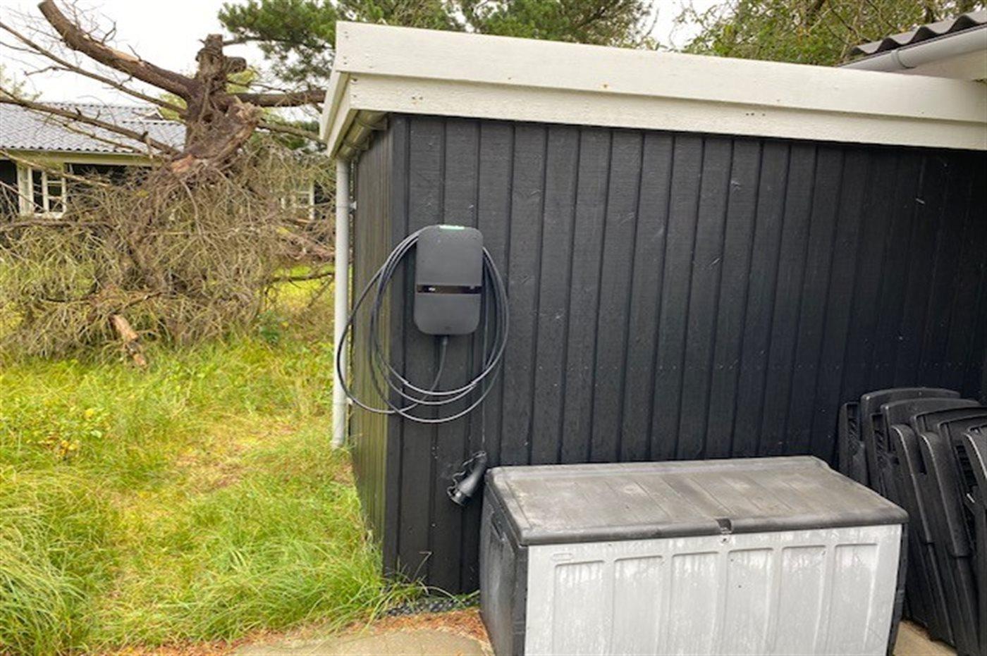 Ferieboligen er beliggende på en 1547 m² stor naturgrund. Der er 1000 m til havet. Nærmeste forretning er beliggende i en afstand af 500 m. Til ferieboligen hører 49 m² terrasseareal. Desuden er der 24 m² overdækket terrasse. Der er installeret stik til opladning af elbil. Type 2 stik. Parkering ved ferieboligen.