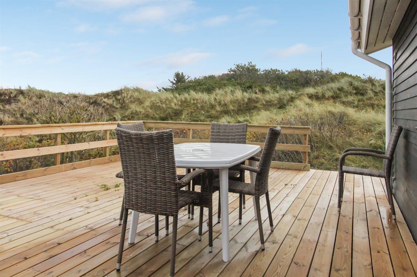 Hyggeligt sommerhus i klitterne ved Vejers Strand med terrasse og naturgrund, tæt på havet.