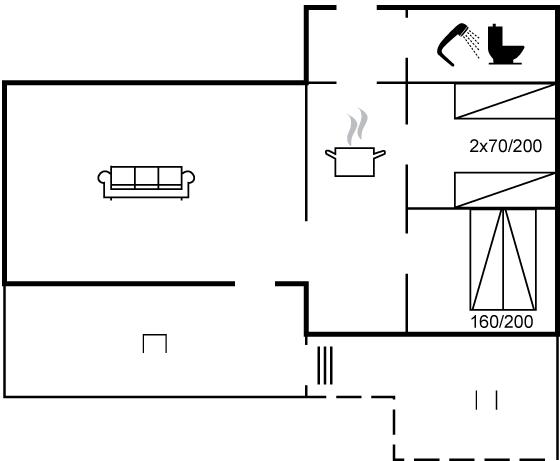 Der er i alt 2 soveværelser. Sovepladserne fordeler sig på: 2 sovepladser i dobbeltseng. 2 sovepladser i enkeltsenge.