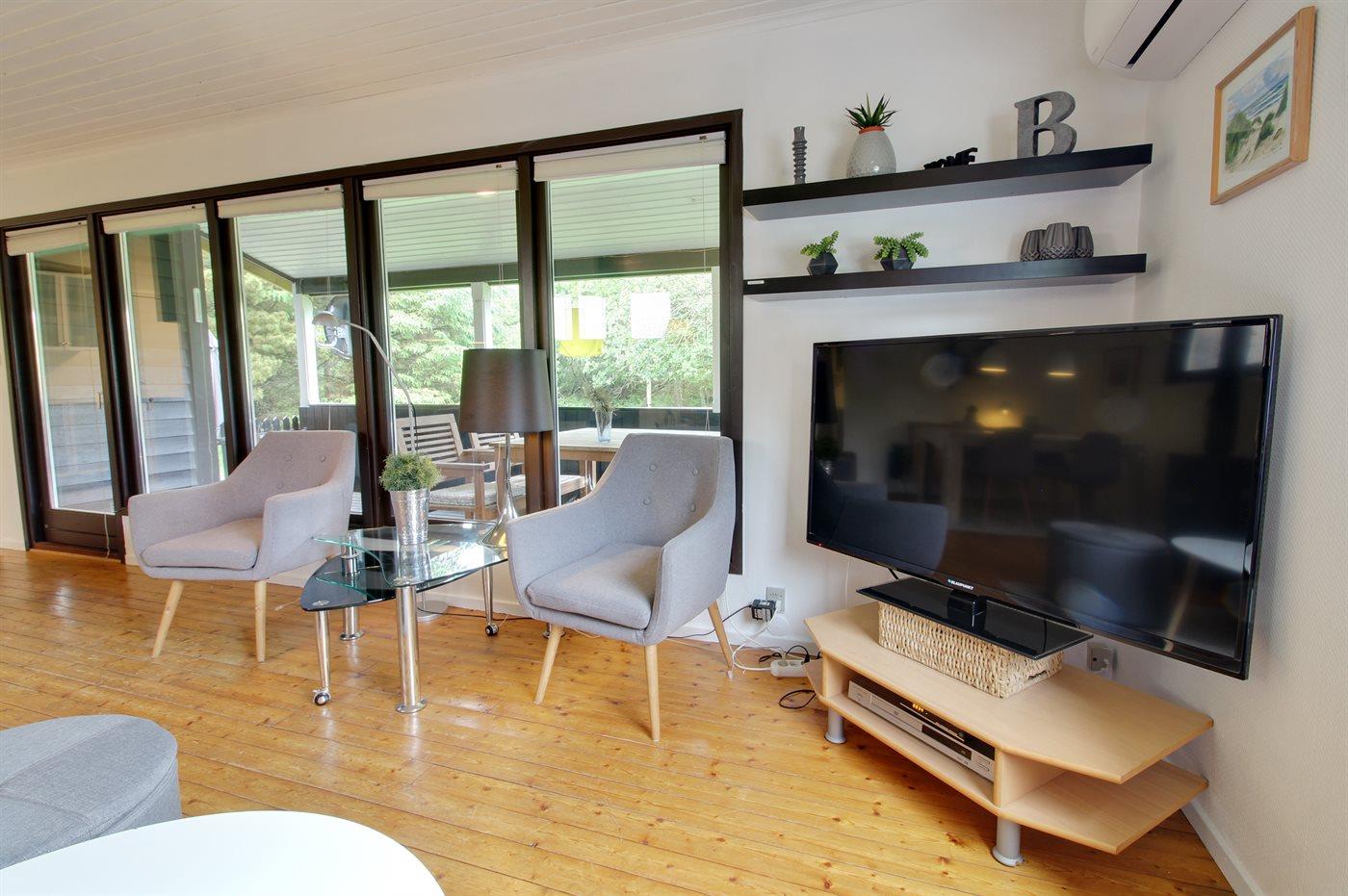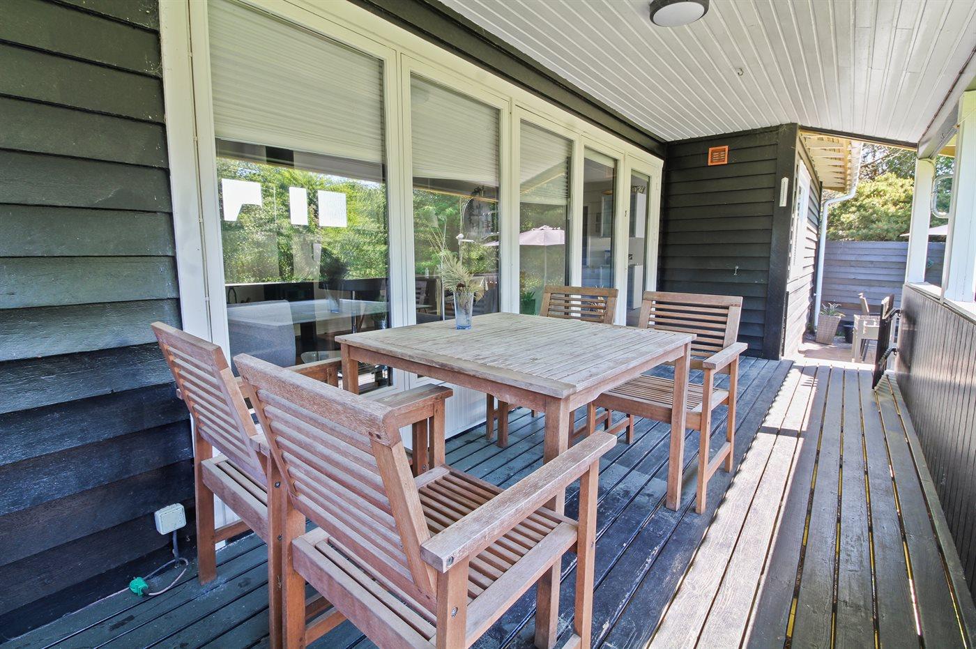 Dejligt centralt beliggende sommerhus med direkte udgang til overdækket terrasse fra kombineret spise- og opholdsstue, ikke langt fra den dejlige strand og en restaurant.