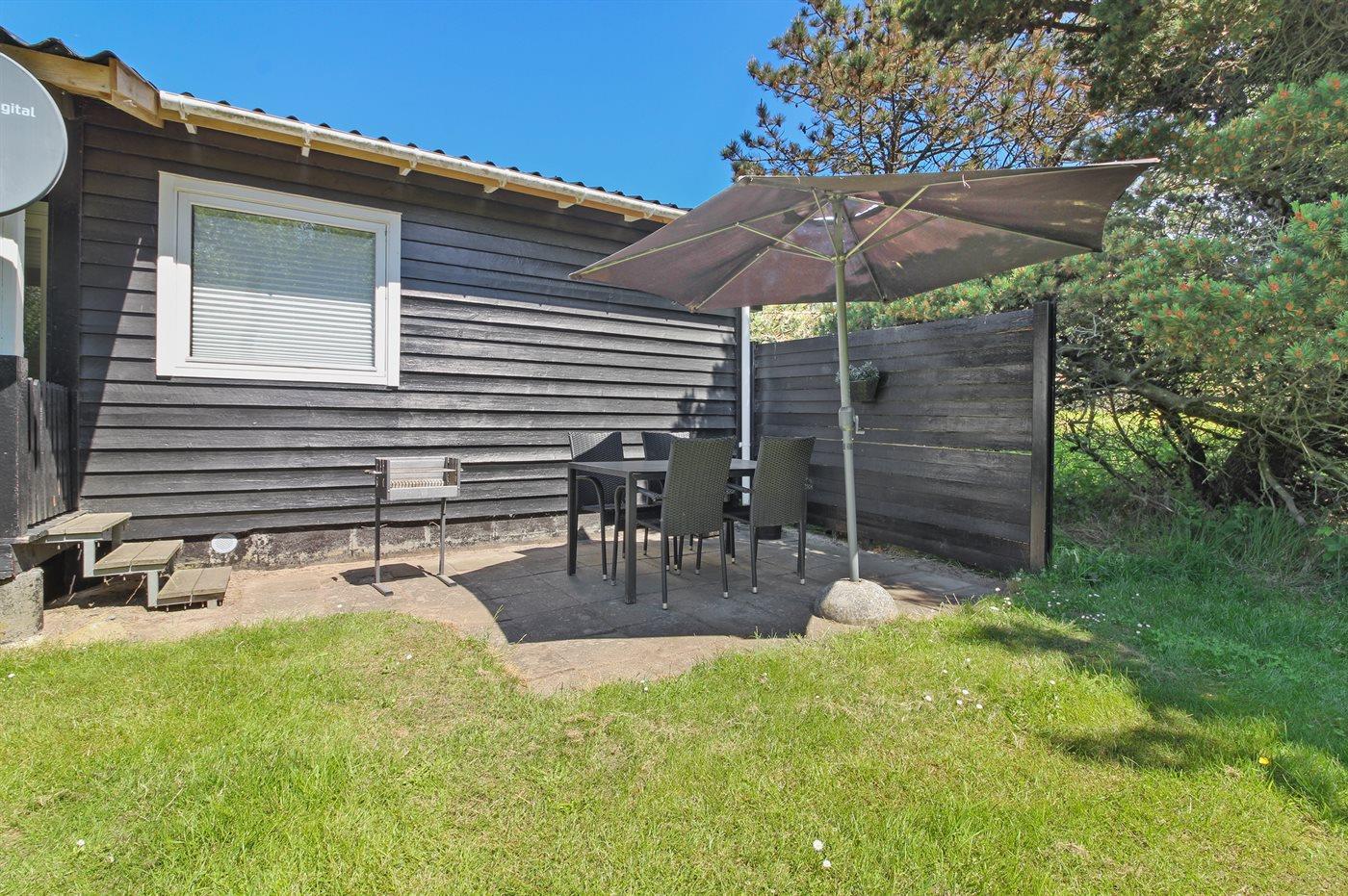 Ferieboligen er beliggende på en 1700 m² stor naturgrund. Der er 900 m til havet. Nærmeste forretning er beliggende i en afstand af 700 m. Til ferieboligen hører 16 m² terrasseareal. Desuden er der 12 m² overdækket terrasse. Gynge. Sandkasse. Rutchebane. Grill til rådighed. Parkering ved ferieboligen.