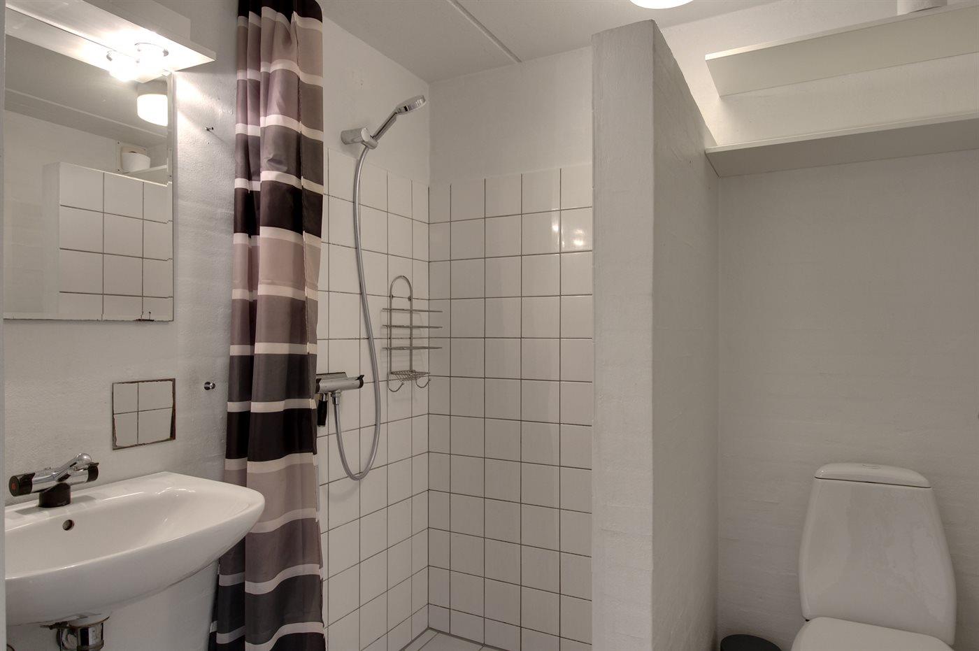 Der er 1 badeværelse med bruseniche og 1 toilet.