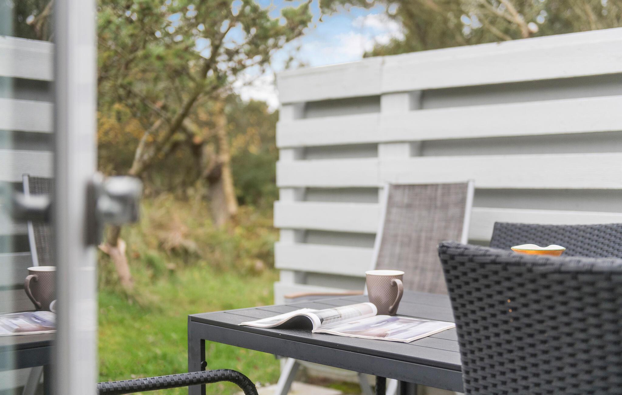 Benyt terrassen til at nyde morgenmaden i den friske luft eller afslutte dagen med et glas vin. En kort gåtur fører jer direkte til Vejers Strand, en af Danmarks smukkeste strande, hvor I kan bade, gå ture og nyde havbrisen. Udforsk også de nærliggende attraktioner som Blåvand Zoo eller Tirpitz Museet, som giver spændende indblik i regionens historie og natur.