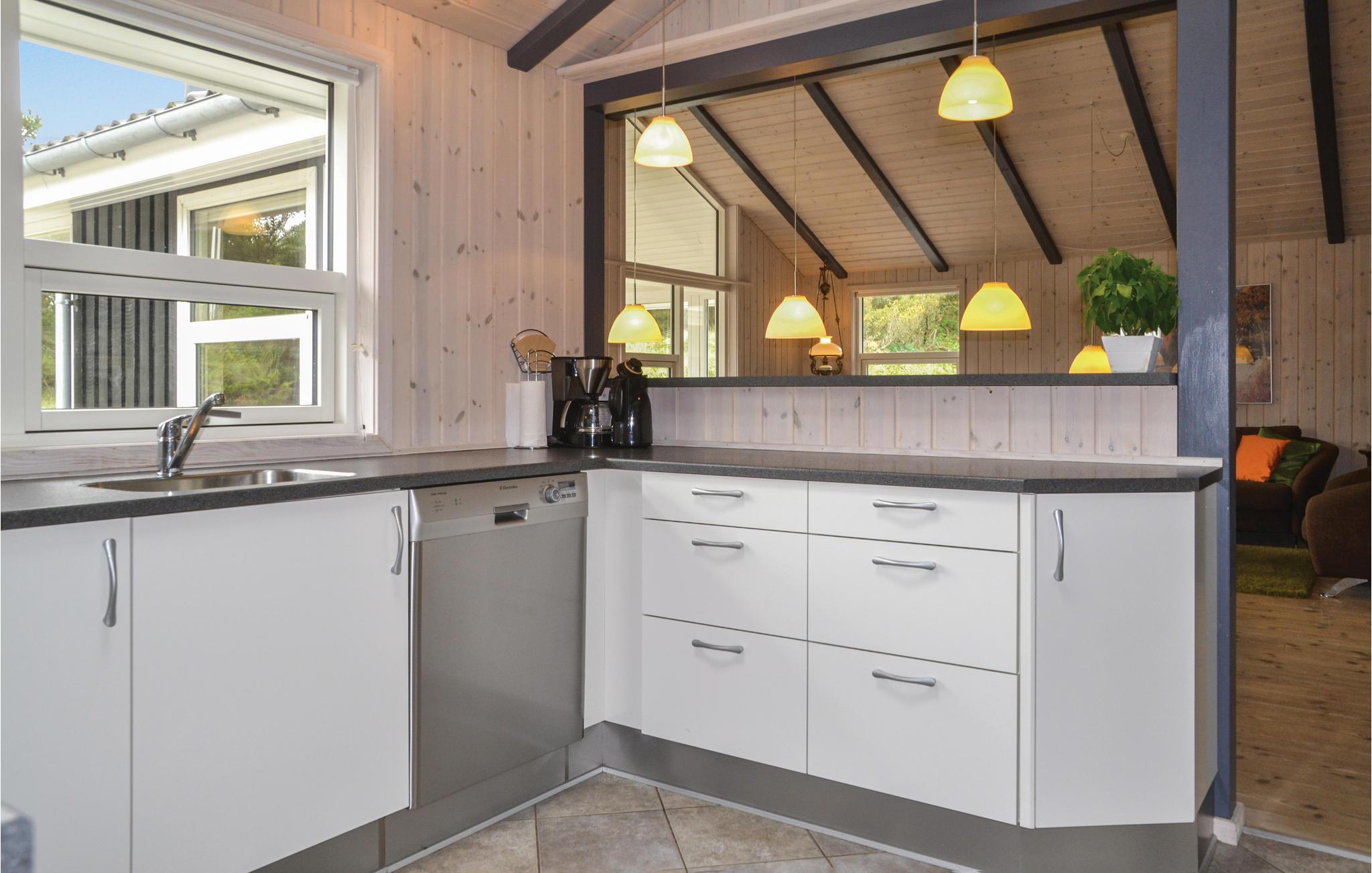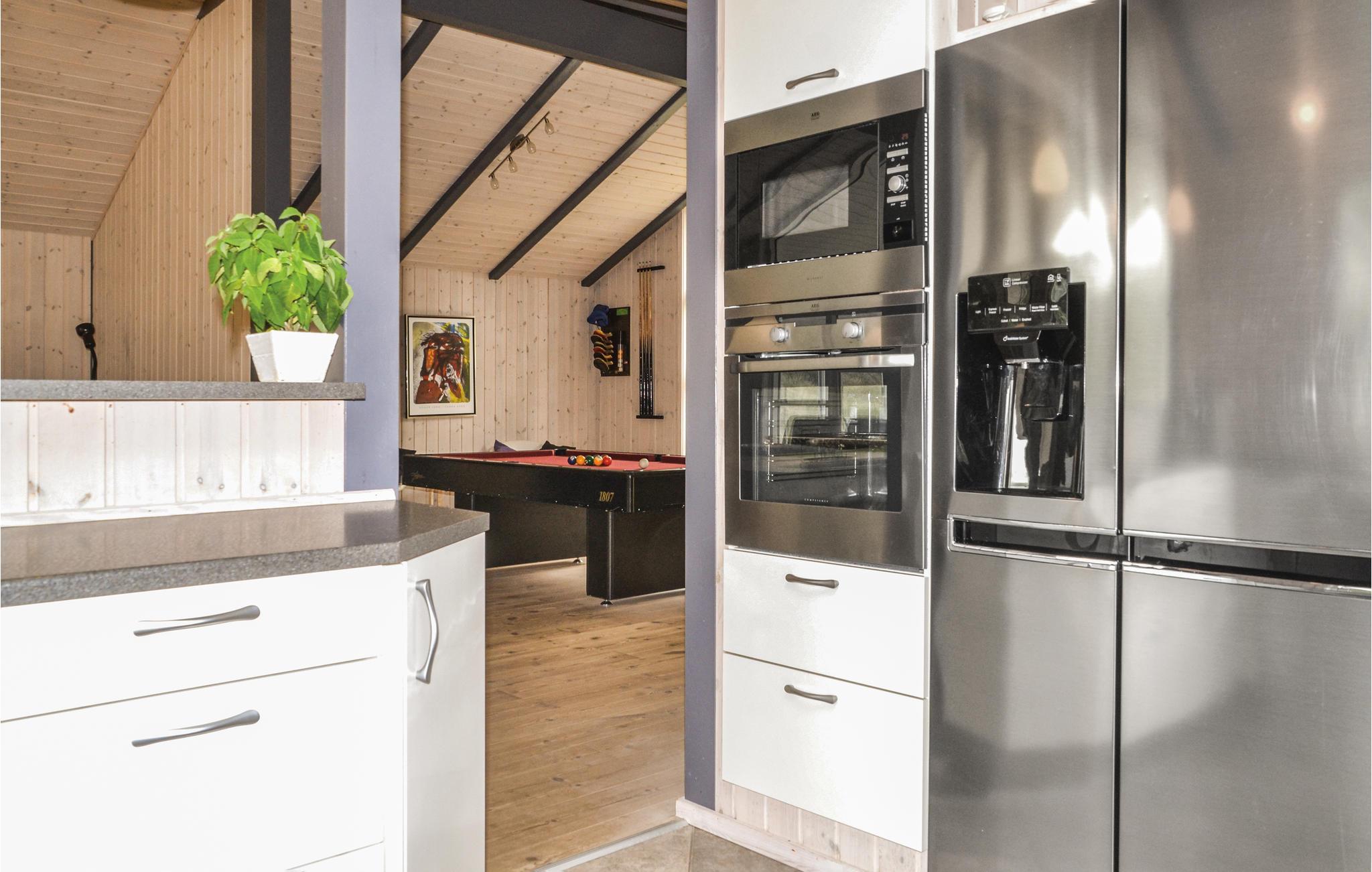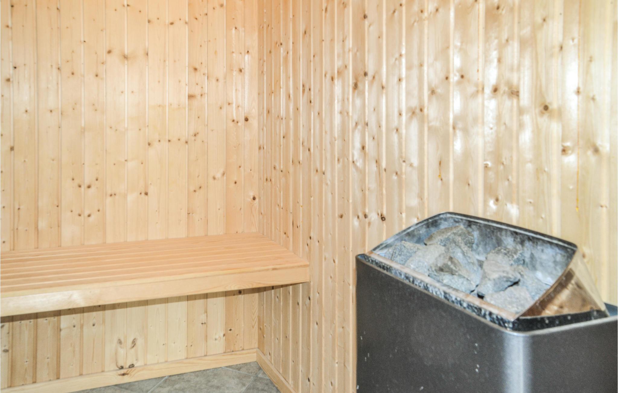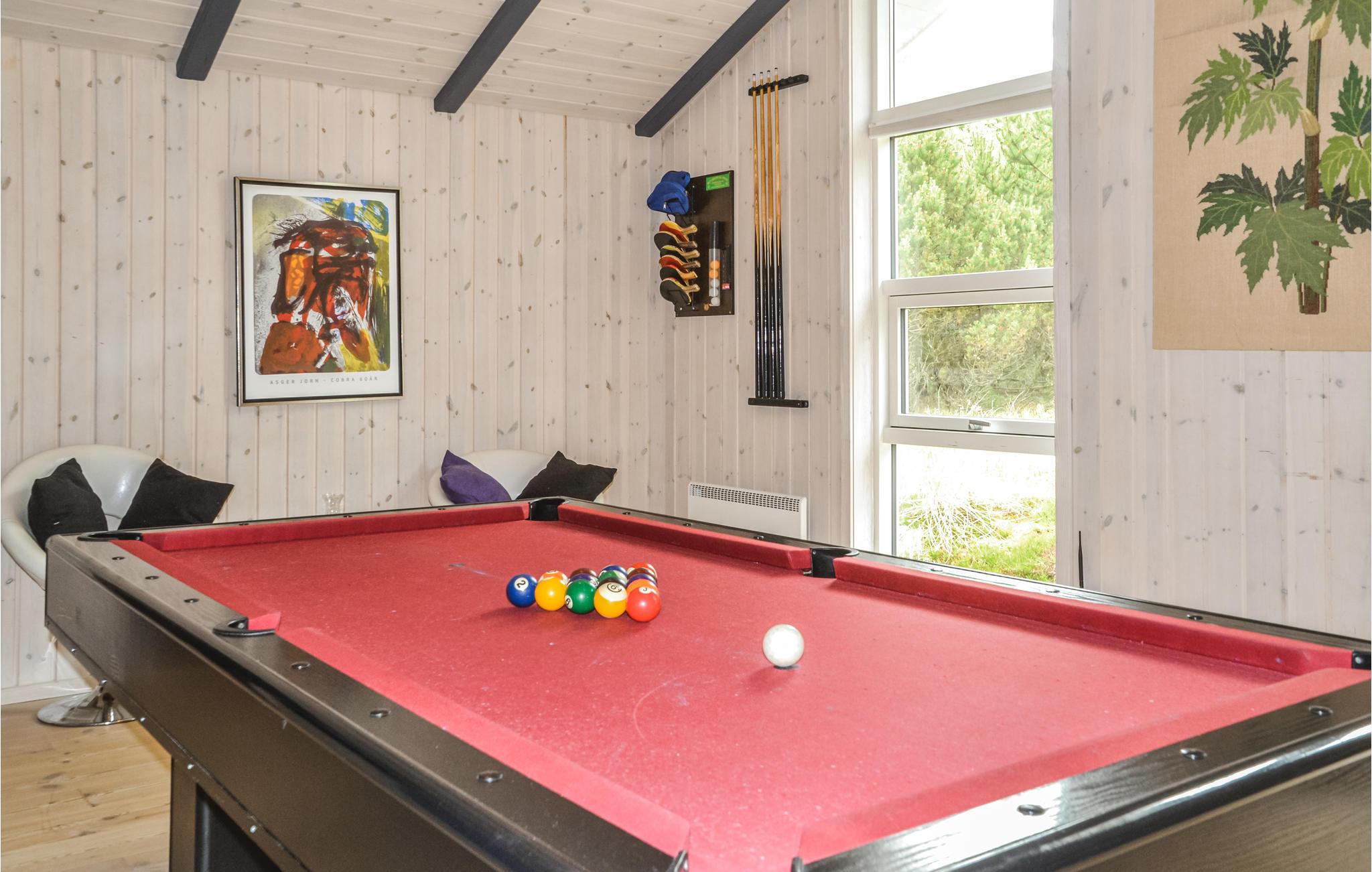 Rigtig hyggelig og velholdt aktivitetssommerhus med bl.a. bordtennis, poolbord og bordfodbold. Sommerhuset er yderst praktisk indrettet med et rummeligt køkken/alrum indeholdende et stort spisebord med plads til alle og en hyggelig sofaafdeling, hvorfra der er adgang til aktivitetsrummet. Alle soveværelser er rummelige og i de største af de to badeværelser findes et spabad og adgang til saunaen. Omkring sommerhuset er der flere gode og læfulde, delvis overdækkede terrasser, og den store naturgrund har en ugenert beliggenhed. På grunden findes desuden trampolin, petanquebane, sandkasse og grill.