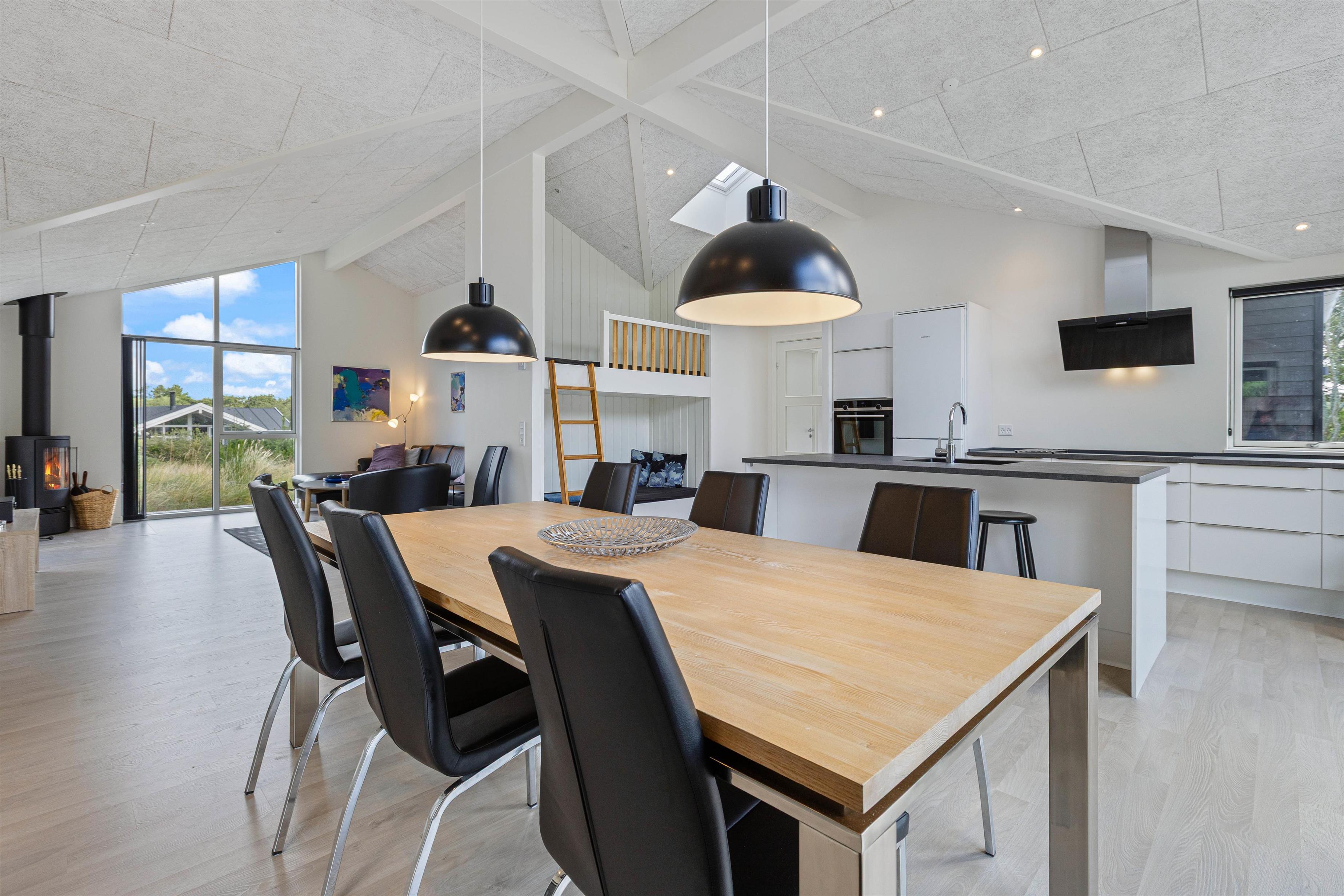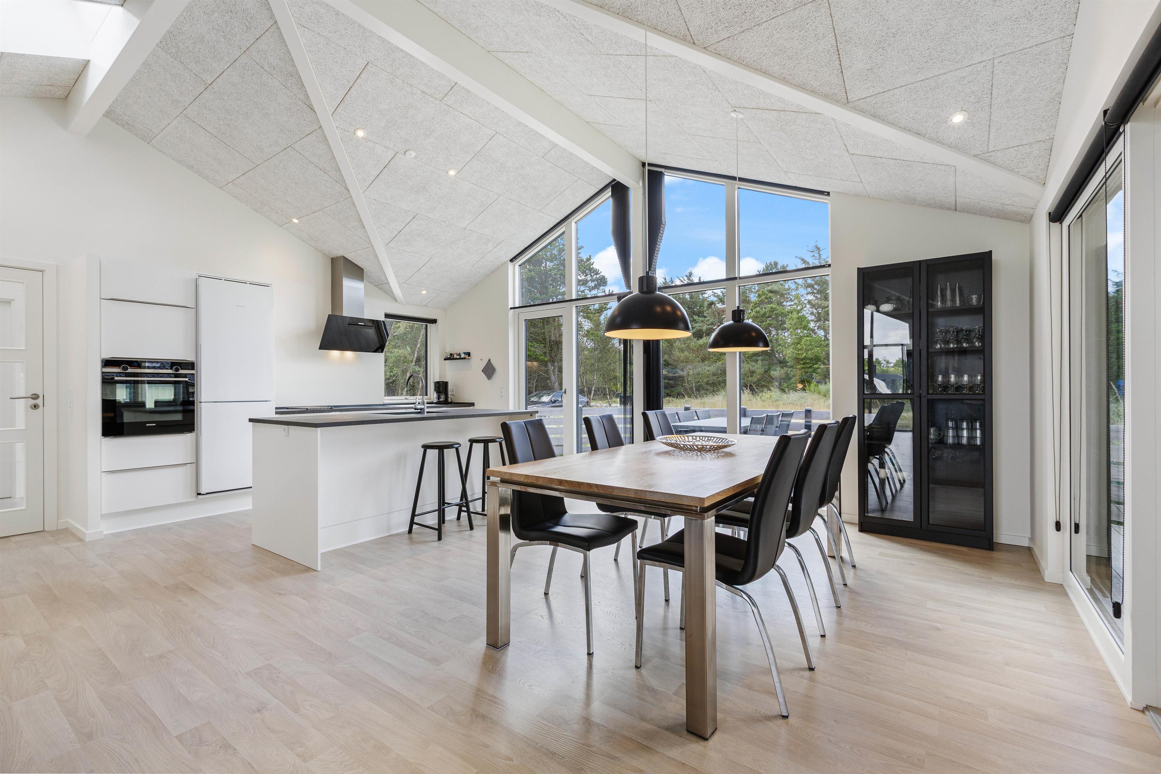Sommerhusets på 130 m2 byder på råhygge for op til 6 gæster, som uden tvivl hurtigt vil kunne føle sig hjemme her. I sommerhuset er der kræset for detaljerne både hvad angår funktionalitet, afslapning og socialt samvær. Over det hele er der loft til kip og de store vinduespartier, som får rummene til at virke større, lyse og trækker naturen med helt ind i stuen.