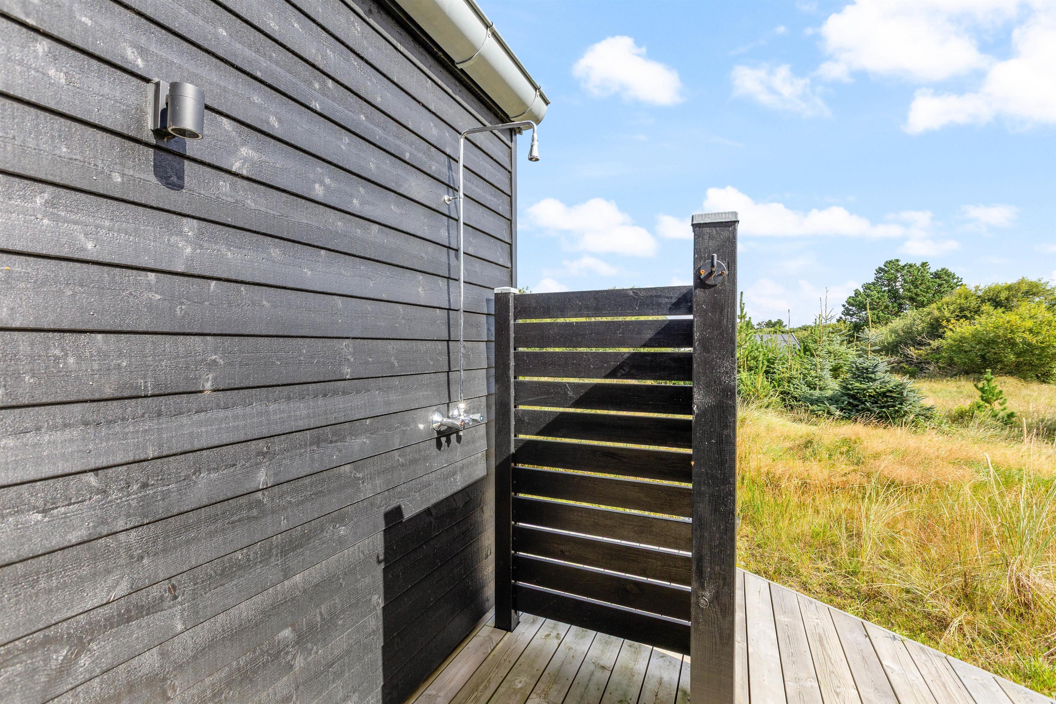 På en varm sommerdag er der mulighed for at blive kølet helt af under udebruseren. Også meget praktisk til at få sandfødderne rene igen efter en tur på stranden.