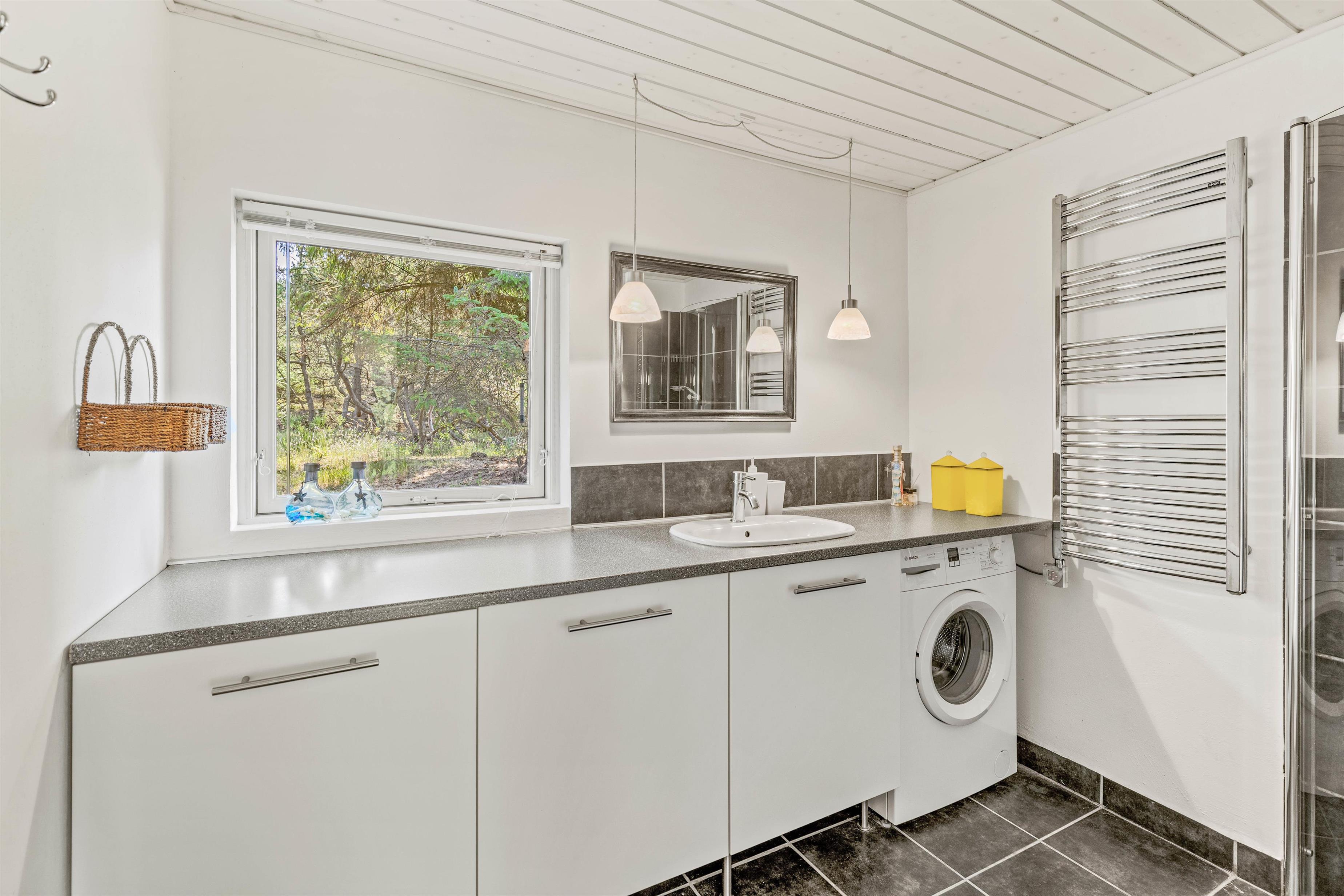 Ekstra fin er den dejlige udestue med trægulvet – det perfekte sted at tanke lys og slappe af i læ og varme hele året rundt, imens man har udsigt til den skønne naturgrund. Skal man have en lille morfar eller vil ikke forstyrres midt i en spændende krimi, så er der mulighed for at trække sig tilbage til gæsteværelset med sovesofaen eller et af de to lyse soveværelser med dobbeltseng.