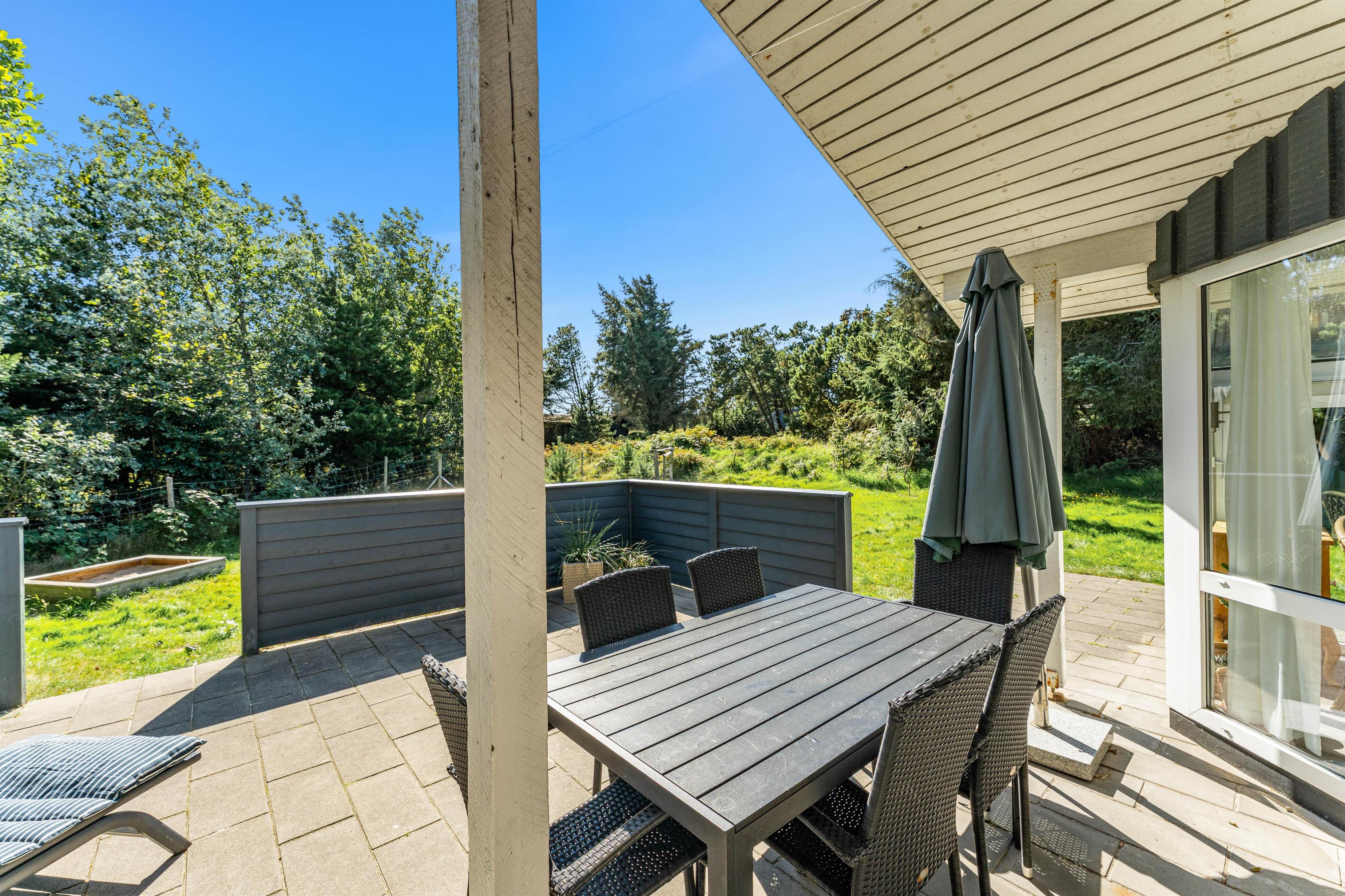 Den 2000 kvm store naturgrund er omgivet af buske og træer, så her kan I føle jer fri. Der er masser af plads til, at børnene kan lege. Imens kan I slappe af på den afskærmede og delvist overdækkede terrasse. De gode havemøbler indbyder til at blive hængende - f.eks. med en kop friskbrygget kaffe og et lækkert stykke kage. Om aftenen kan I tænde op i grillen til en lækker barbeque og afslutte dagen sammen.