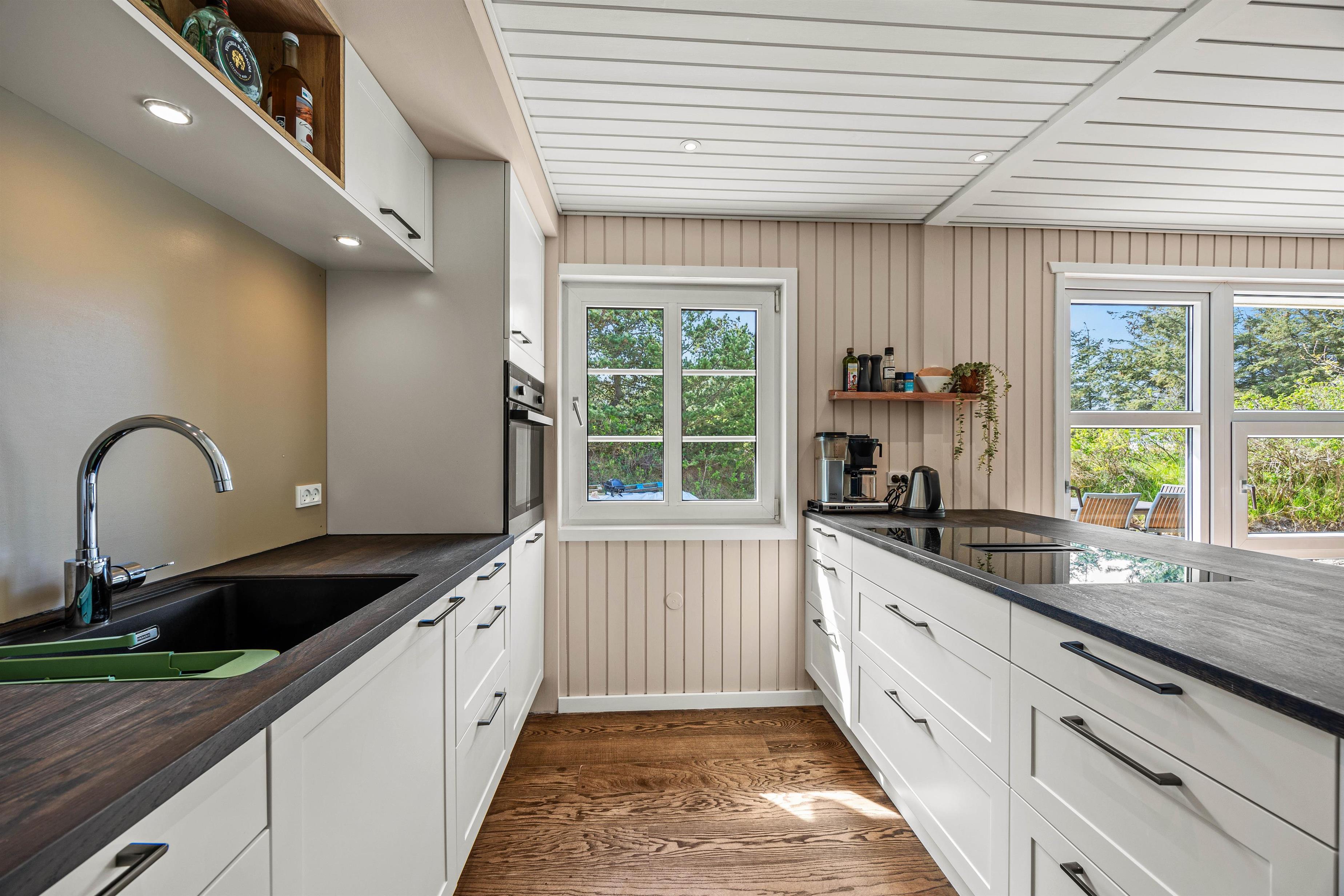 I sommerhuset finder du alt, hvad du har brug for til et ophold fuld af bekvemmeligheder. I det veludstyrede køkken er der bl.a. en moderne opvaskemaskine og en separat fryser på 80 liter.