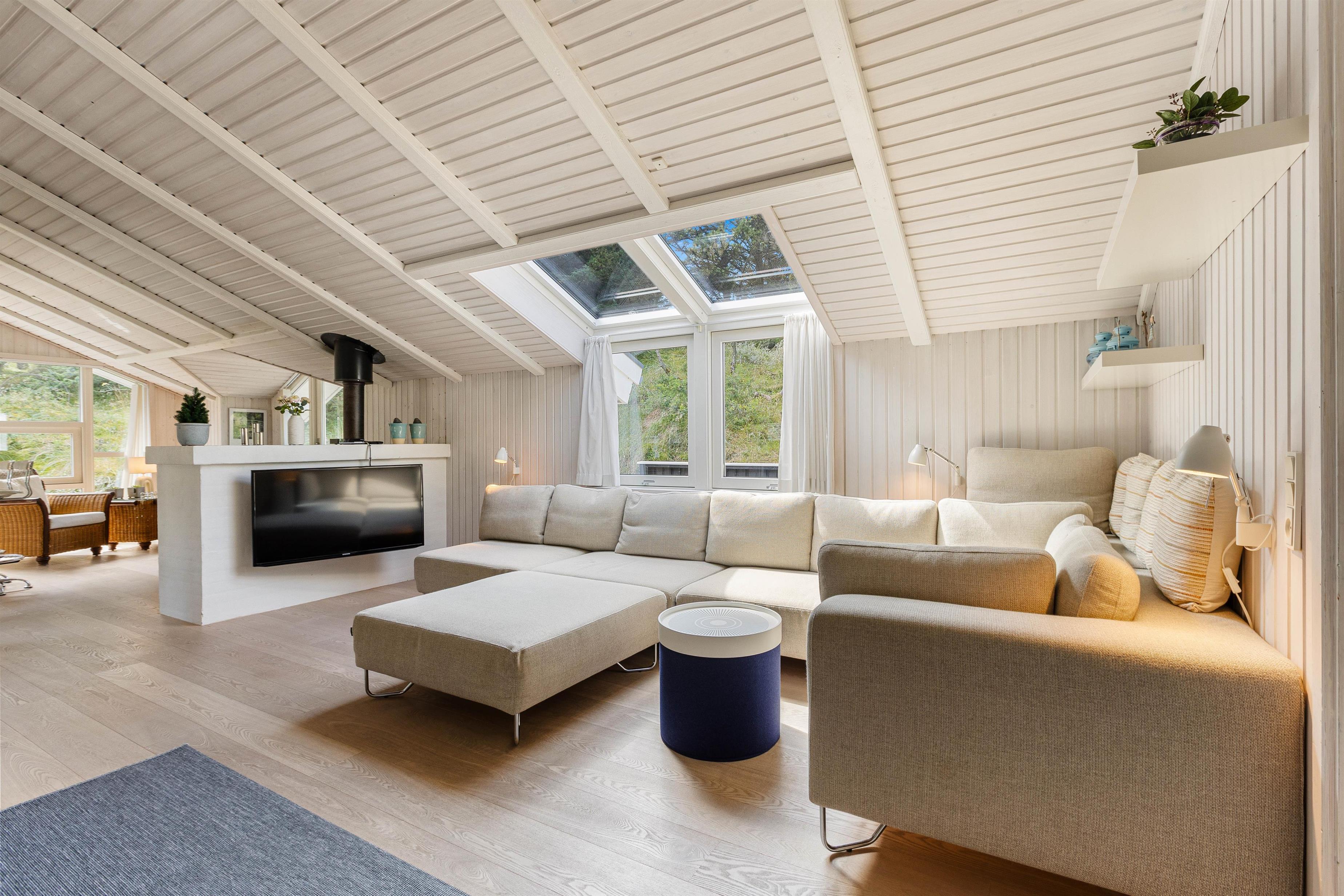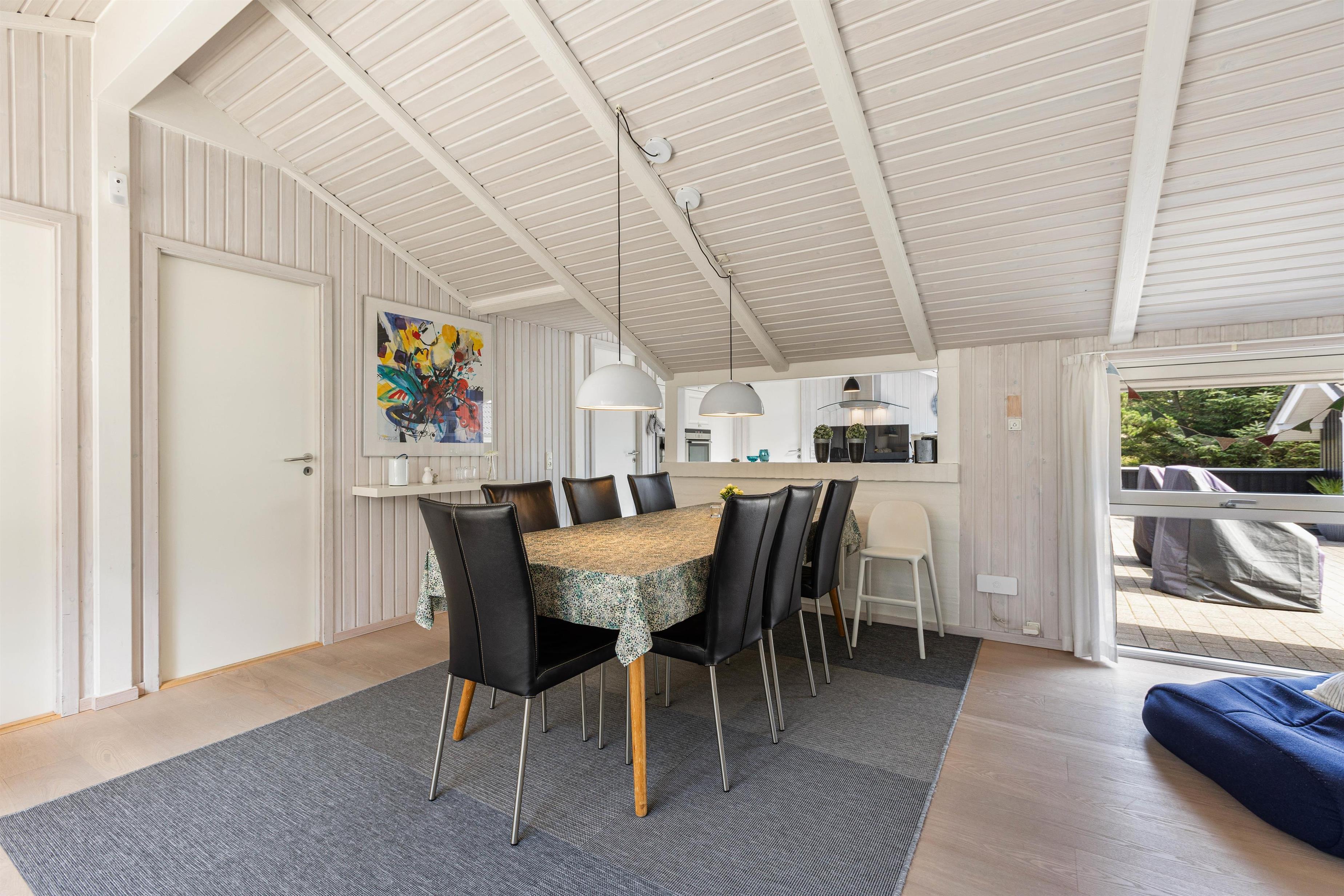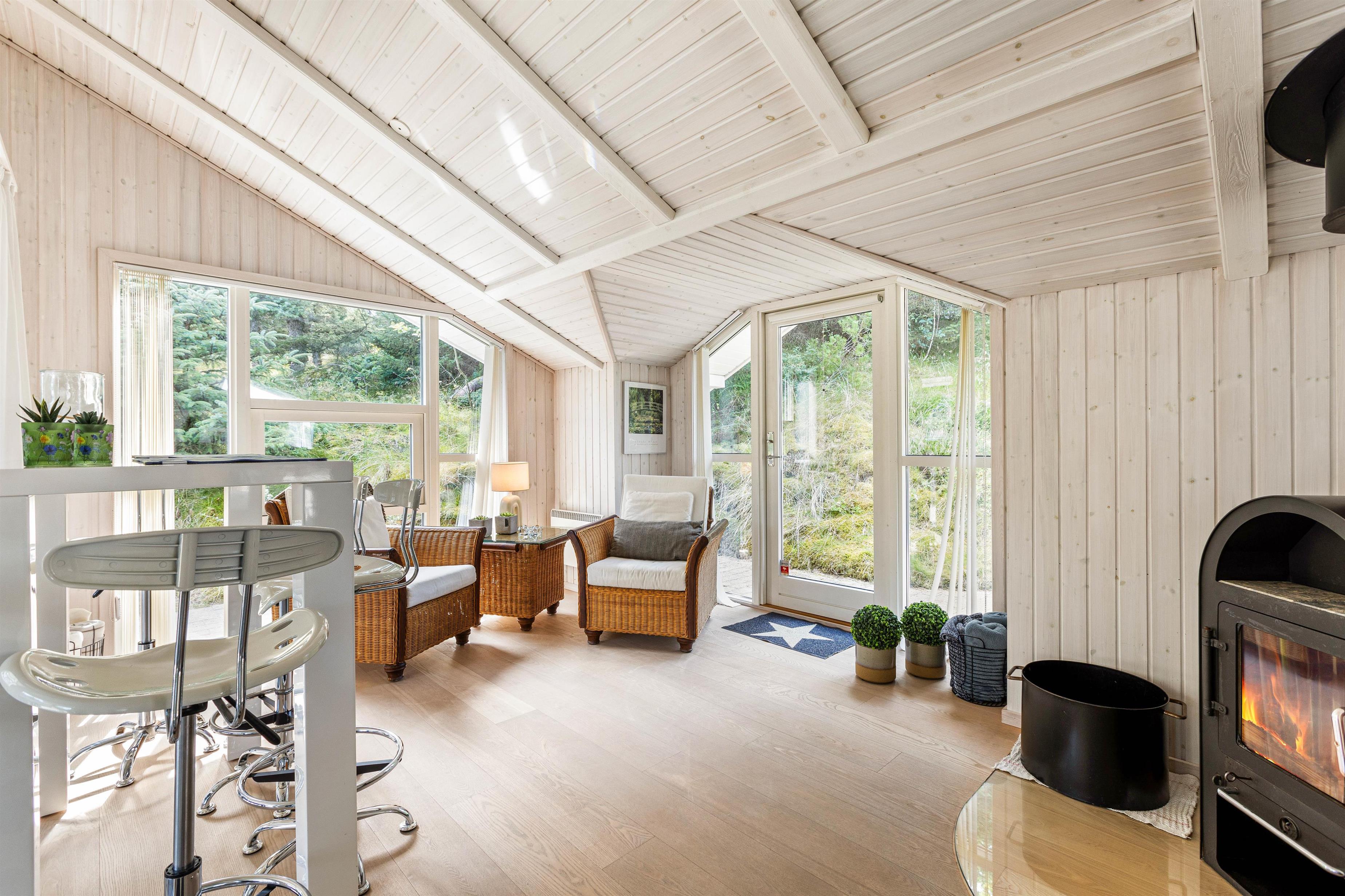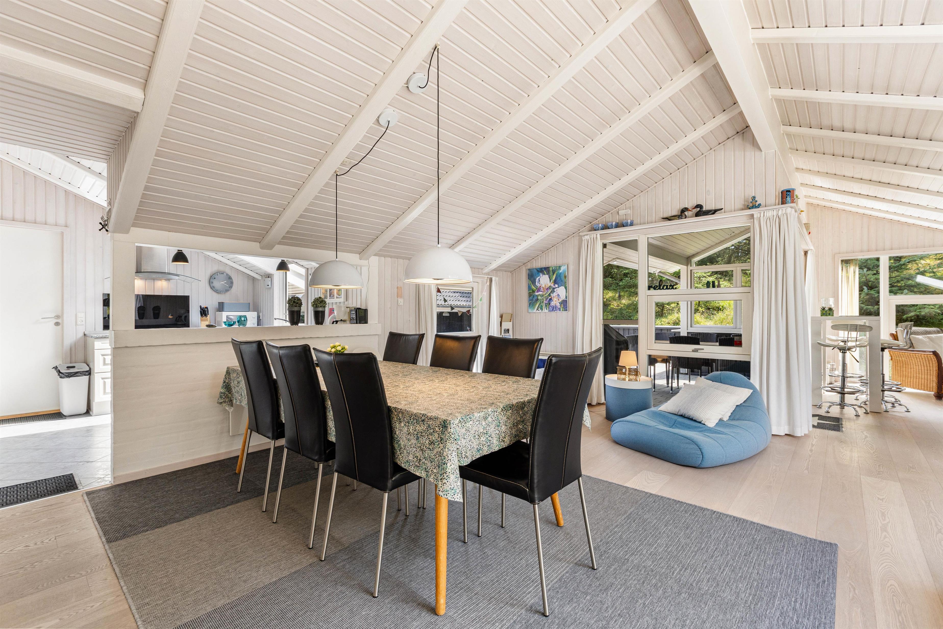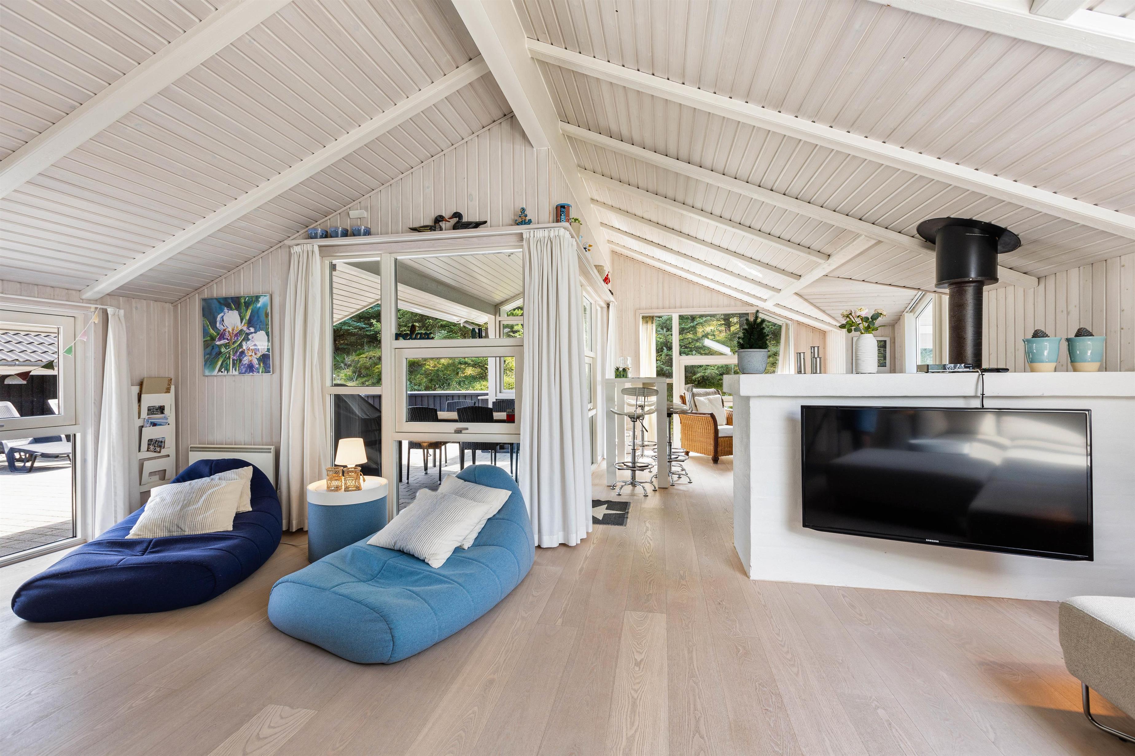 Det skønne feriehus på Risvej 45 byder på 108 stilrene og rummelige kvadratmeter til den næste familieferie. Der er stort fokus på åbenhed og hygge med lyse farver, lækre møbler og store vinduer, der giver et herligt lysindfald og udsyn til Vejers' grønne natur.