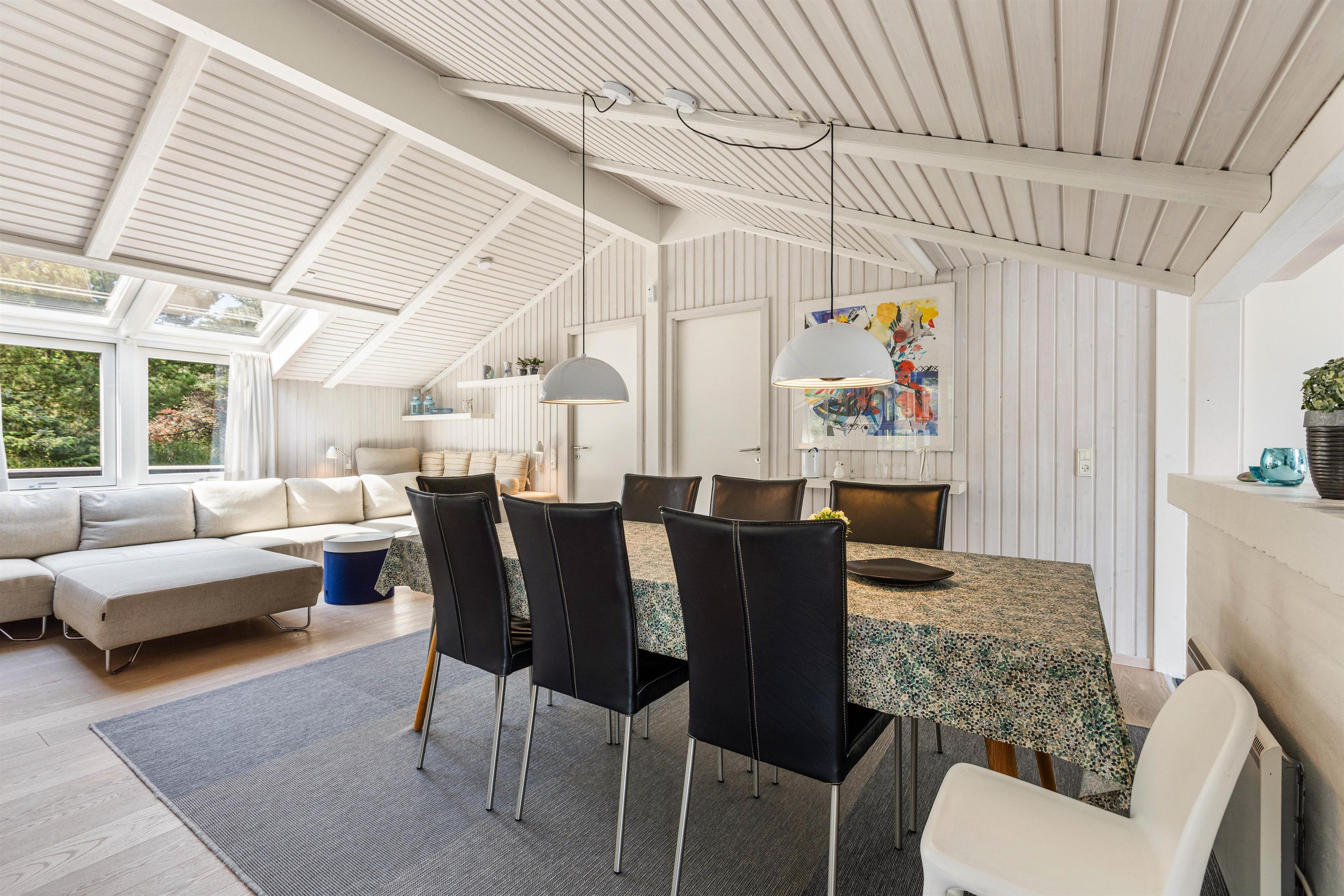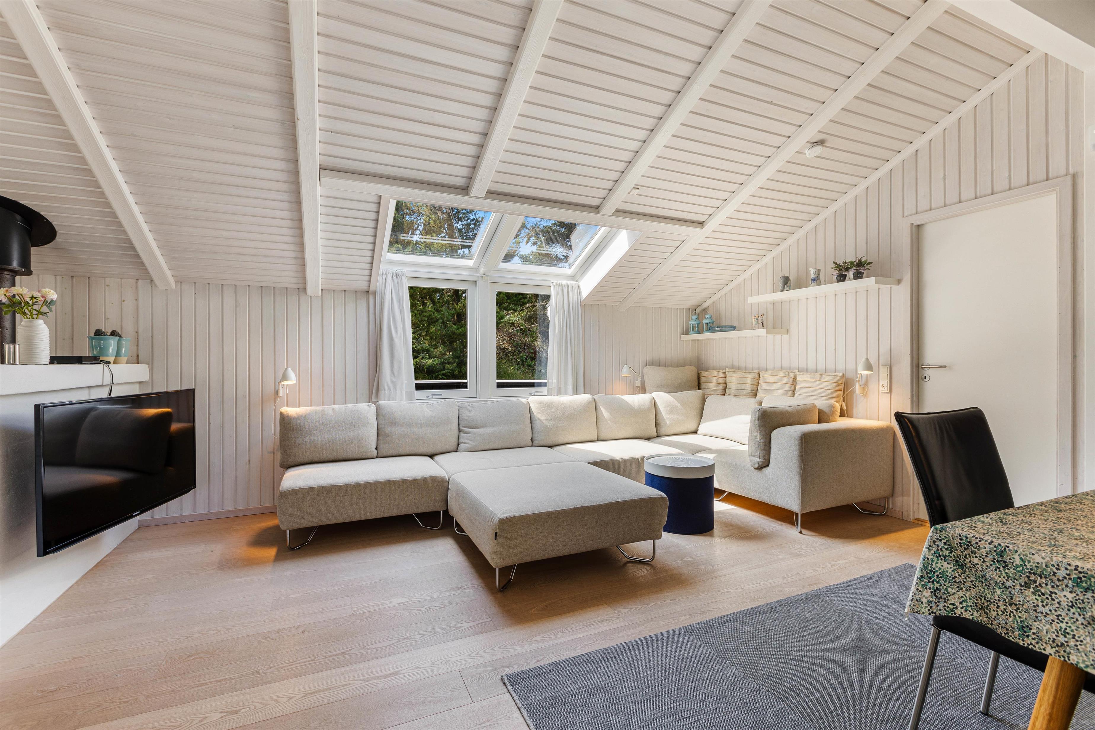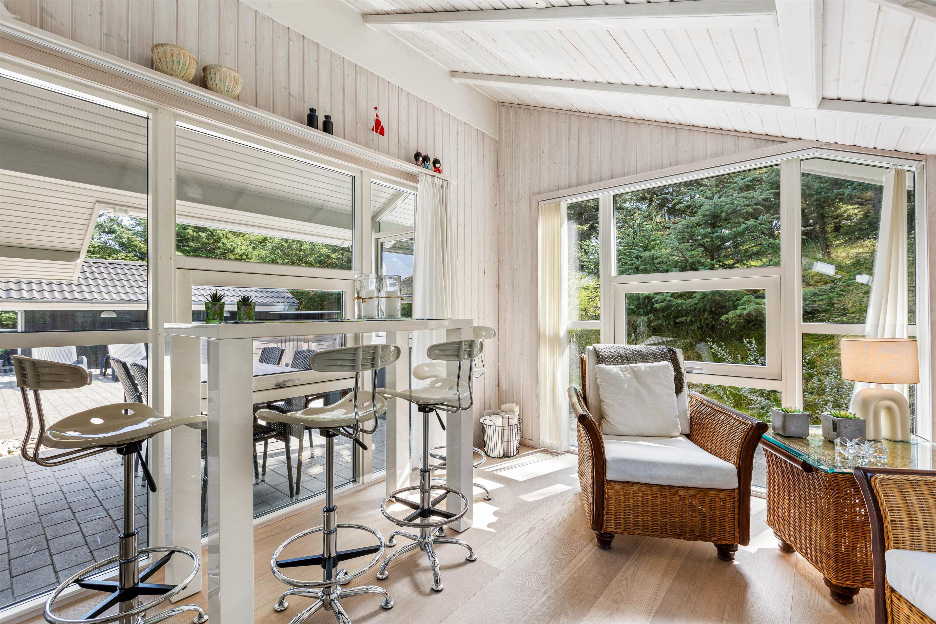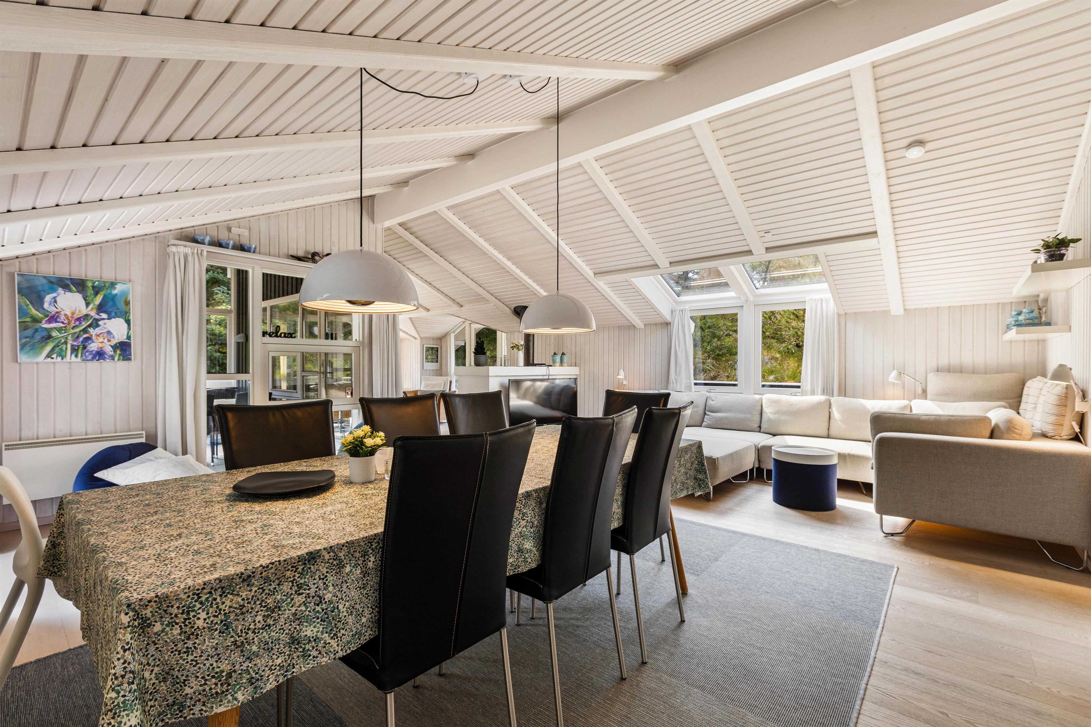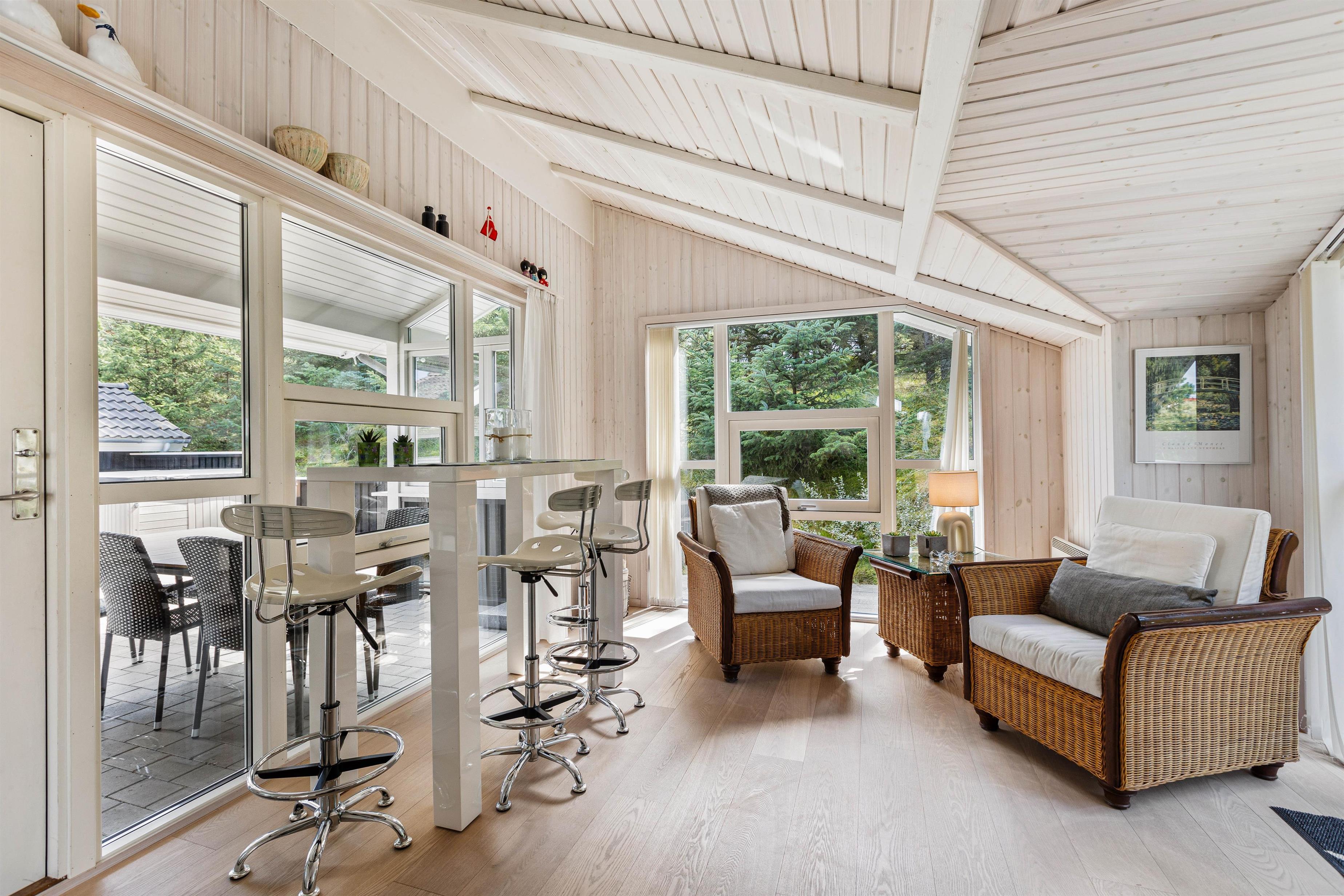 Det skønne feriehus på Risvej 45 byder på 108 stilrene og rummelige kvadratmeter til den næste familieferie. Der er stort fokus på åbenhed og hygge med lyse farver, lækre møbler og store vinduer, der giver et herligt lysindfald og udsyn til Vejers' grønne natur.