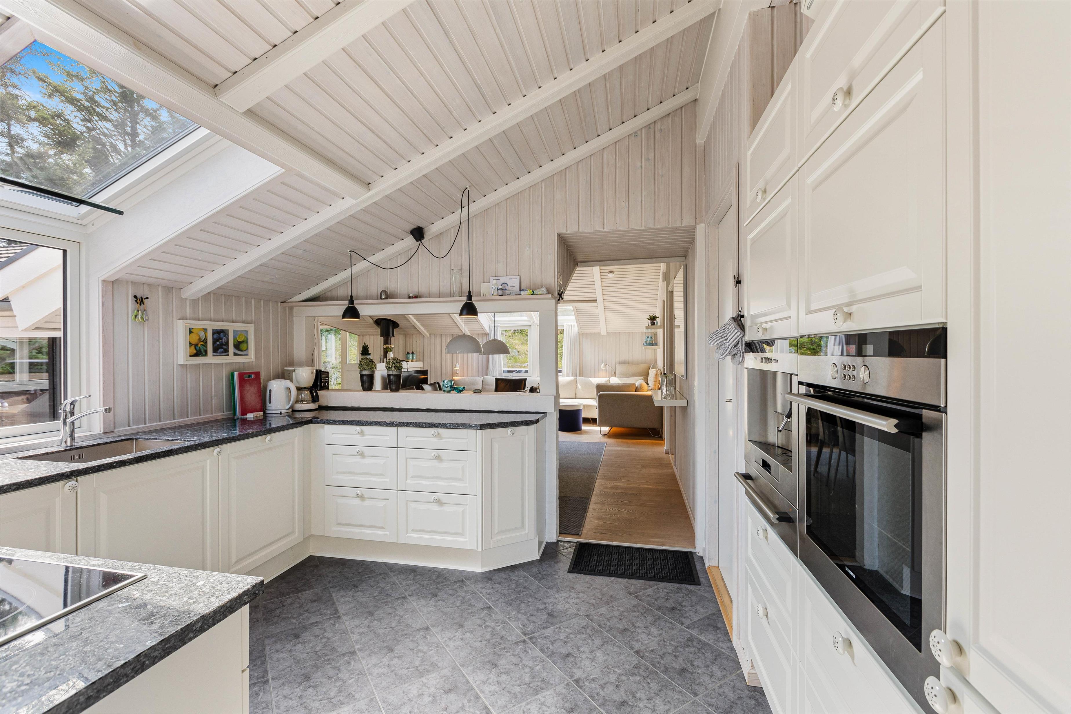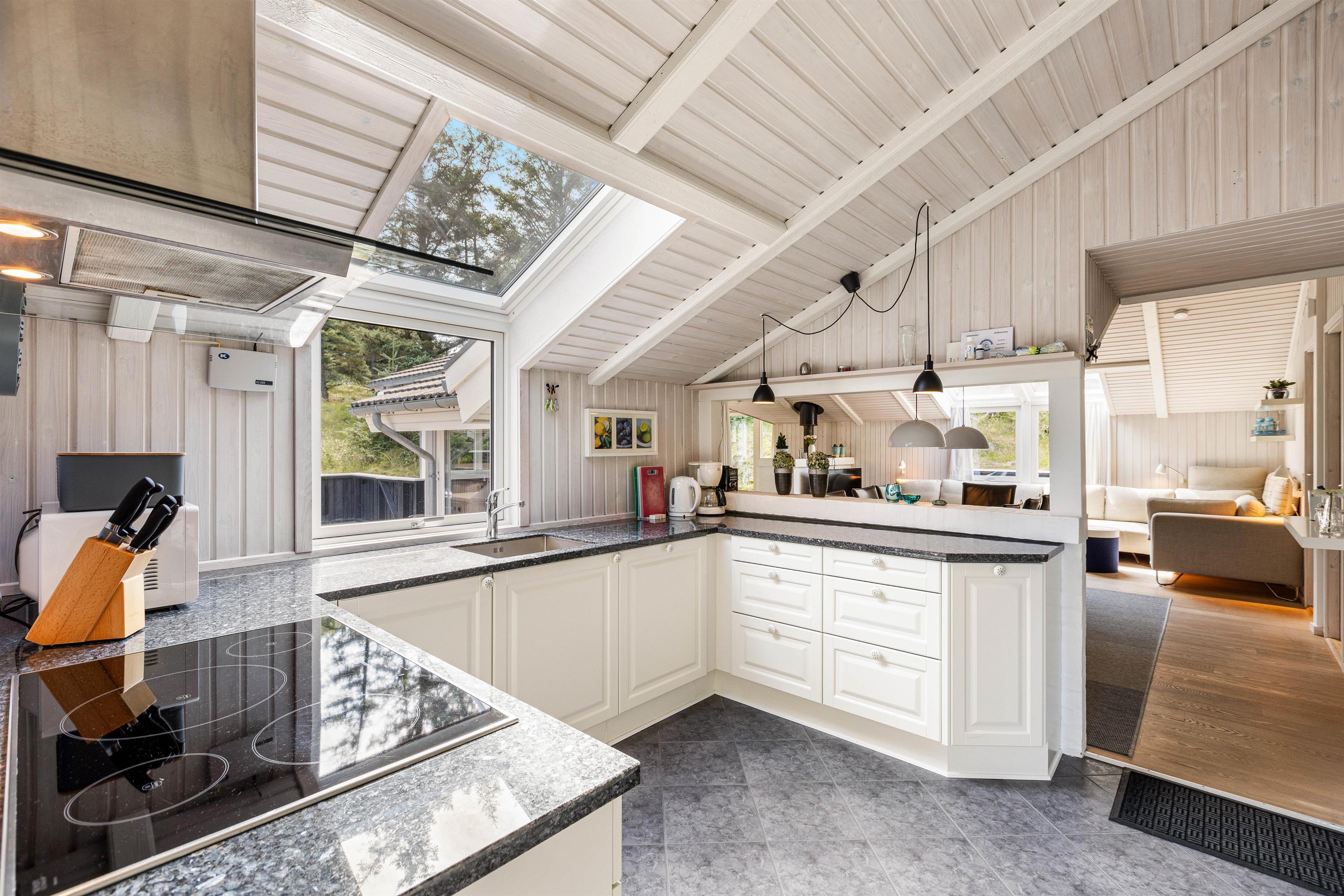 Husets hjerte er det åbne opholdsrum, der samler køkken, spiseafdeling og stue i ét og fungerer som samlingspunkt for hele familien. I det veludstyrede køkken er der plads til, at I kan samles om madlavningen. De mange små siddekroge giver mulighed for at koble af med en god bog og en varm kop kaffe.
