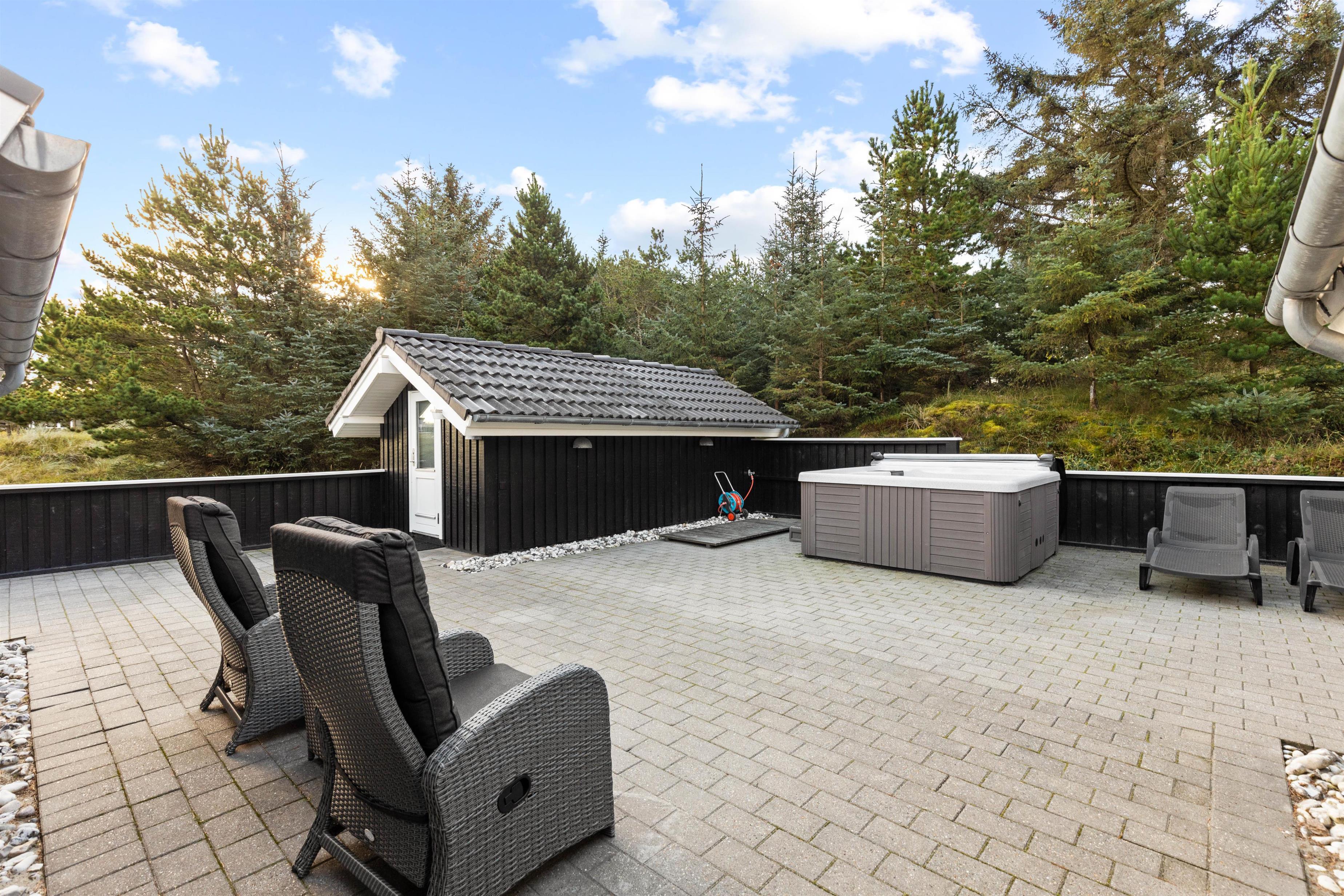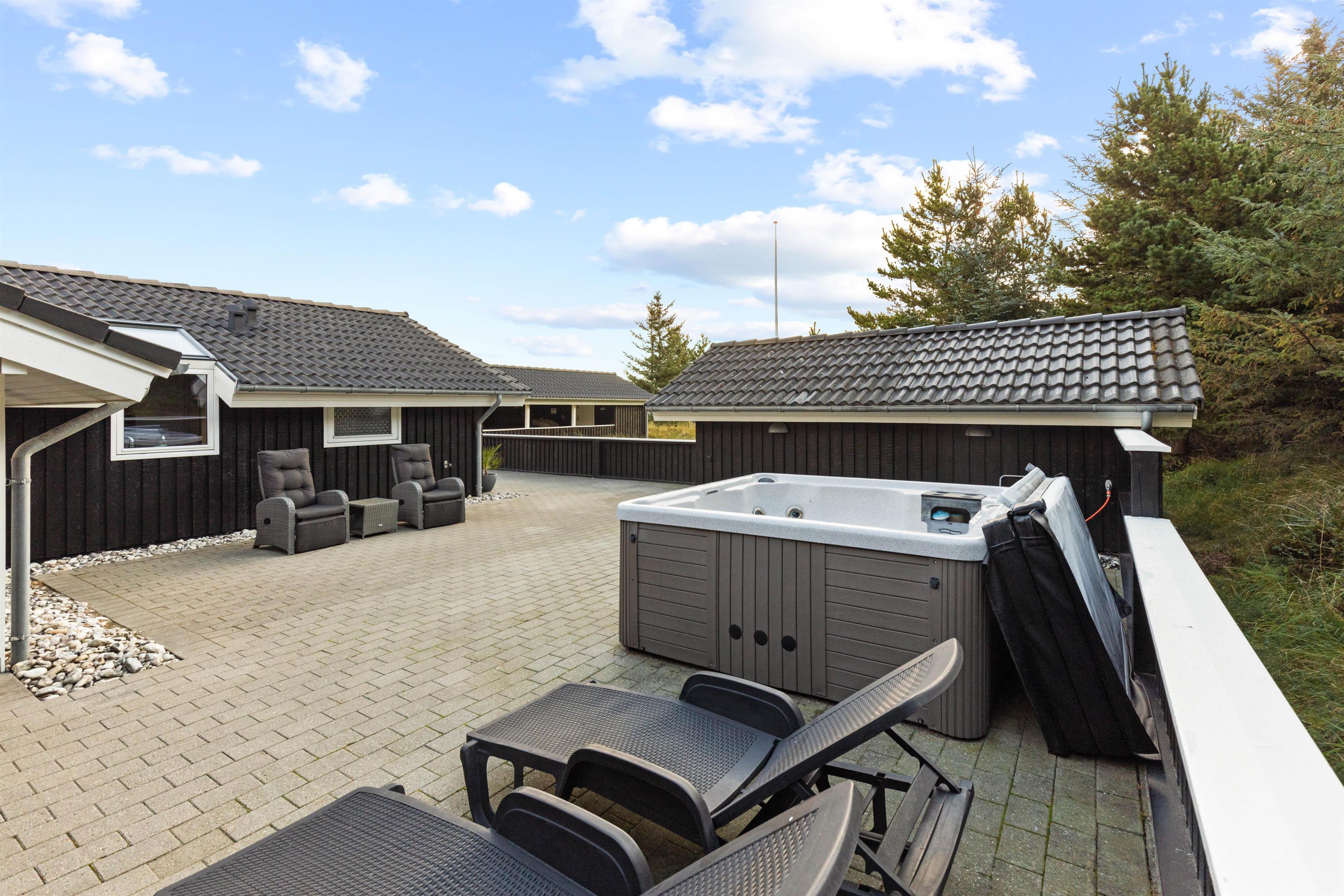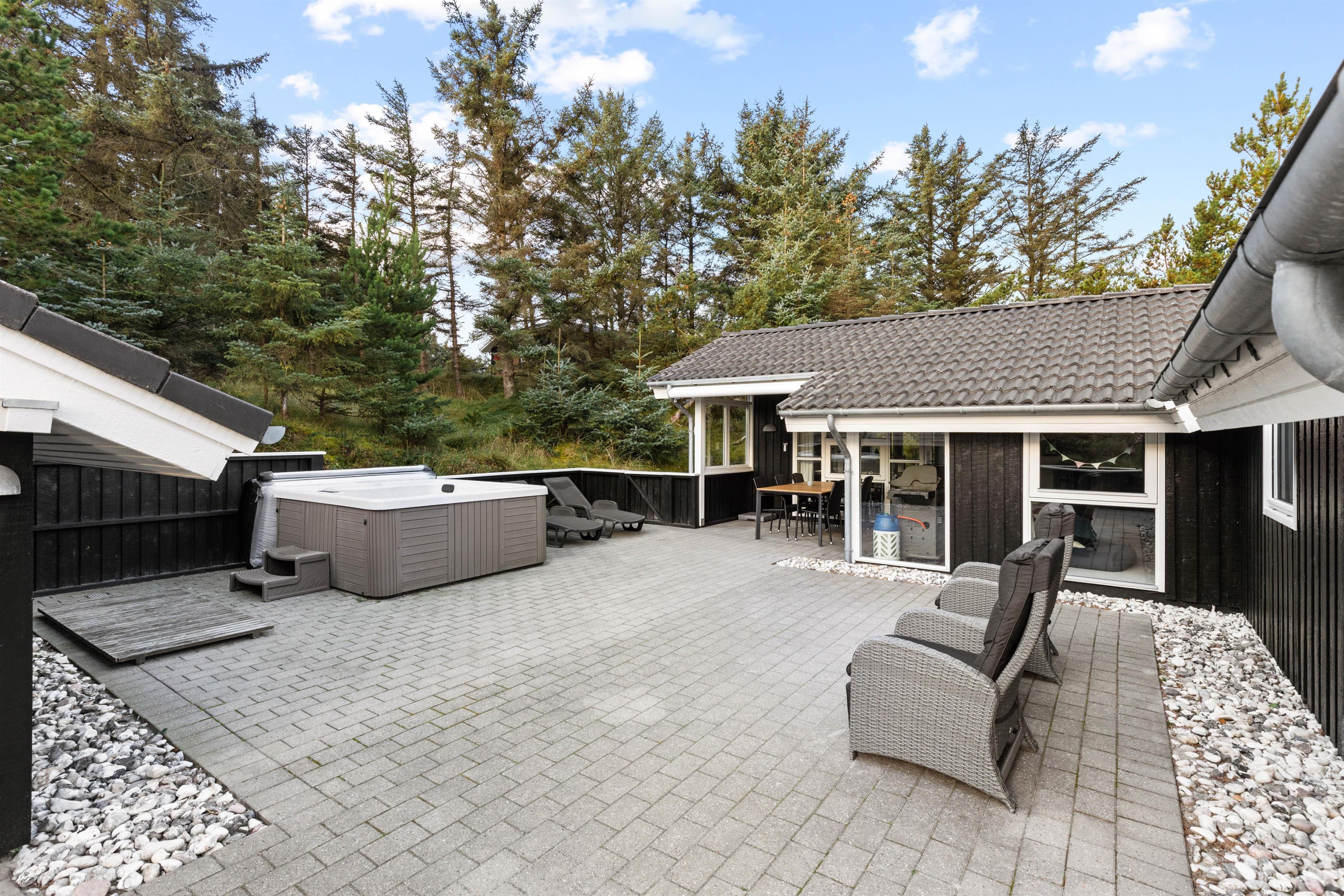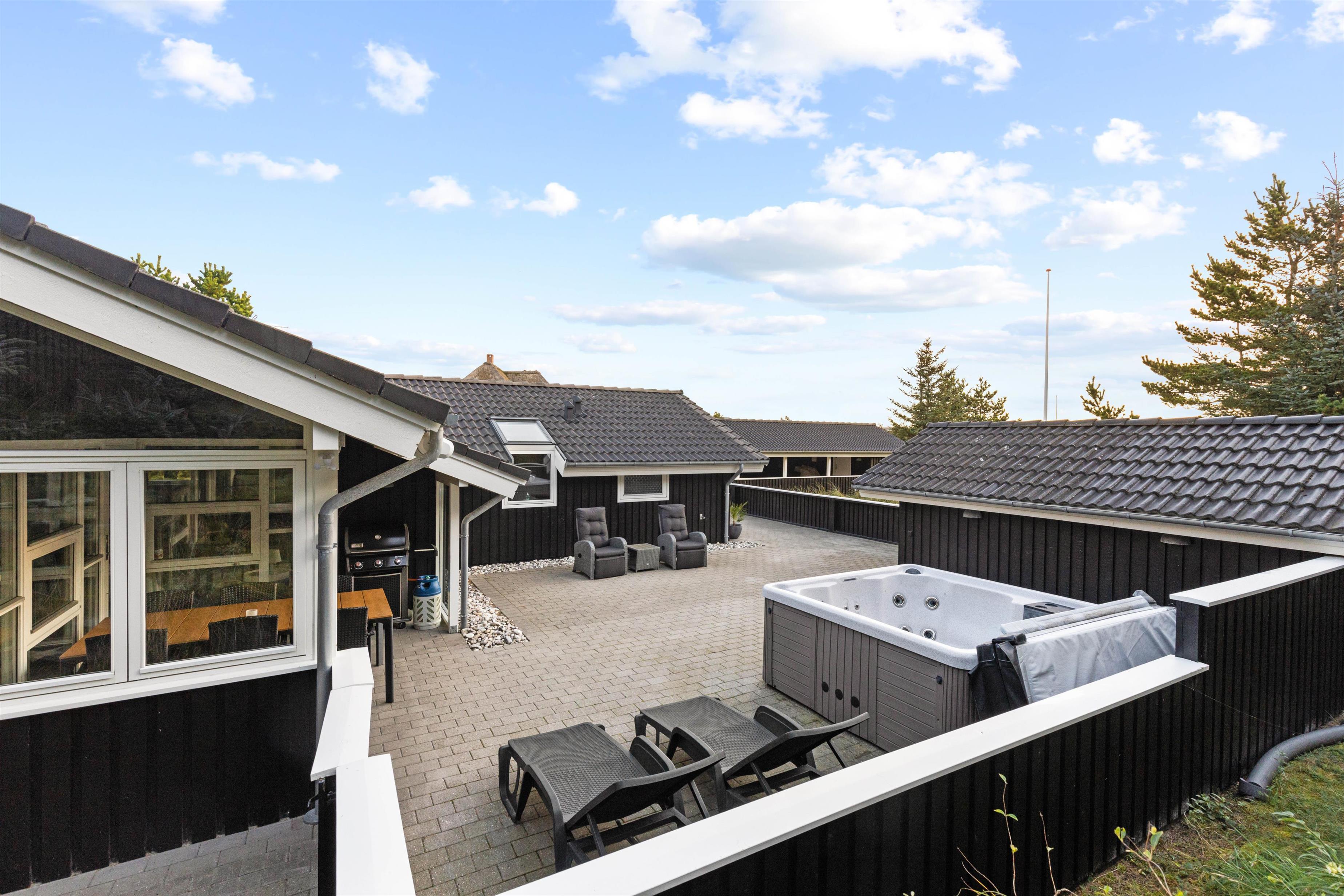 Der er god grund til at pakke badetøjet med, ligegyldigt hvornår på året I holder ferie. På den store terrasse står nemlig et lækkert udendørs spa og en gasgrill.