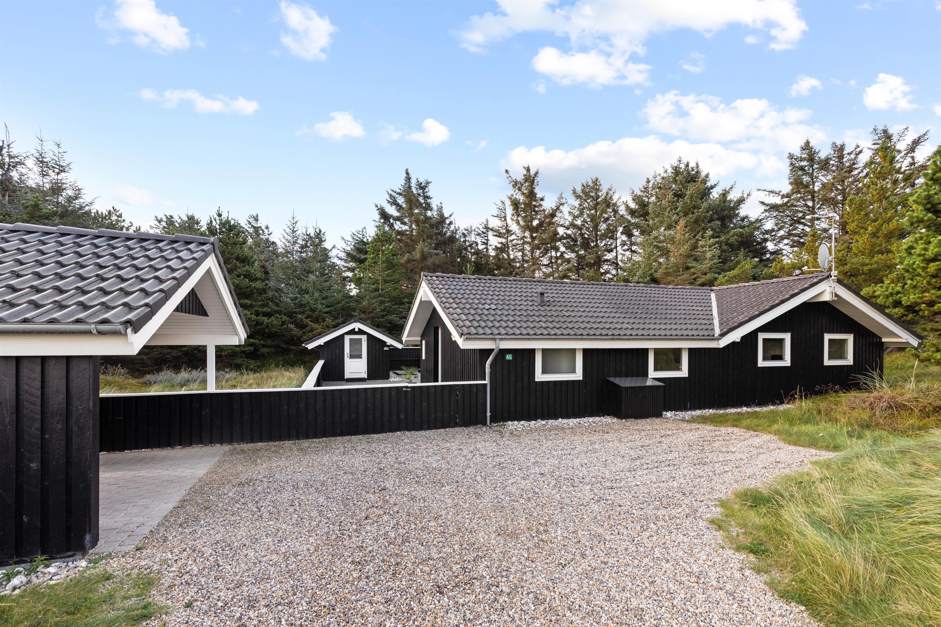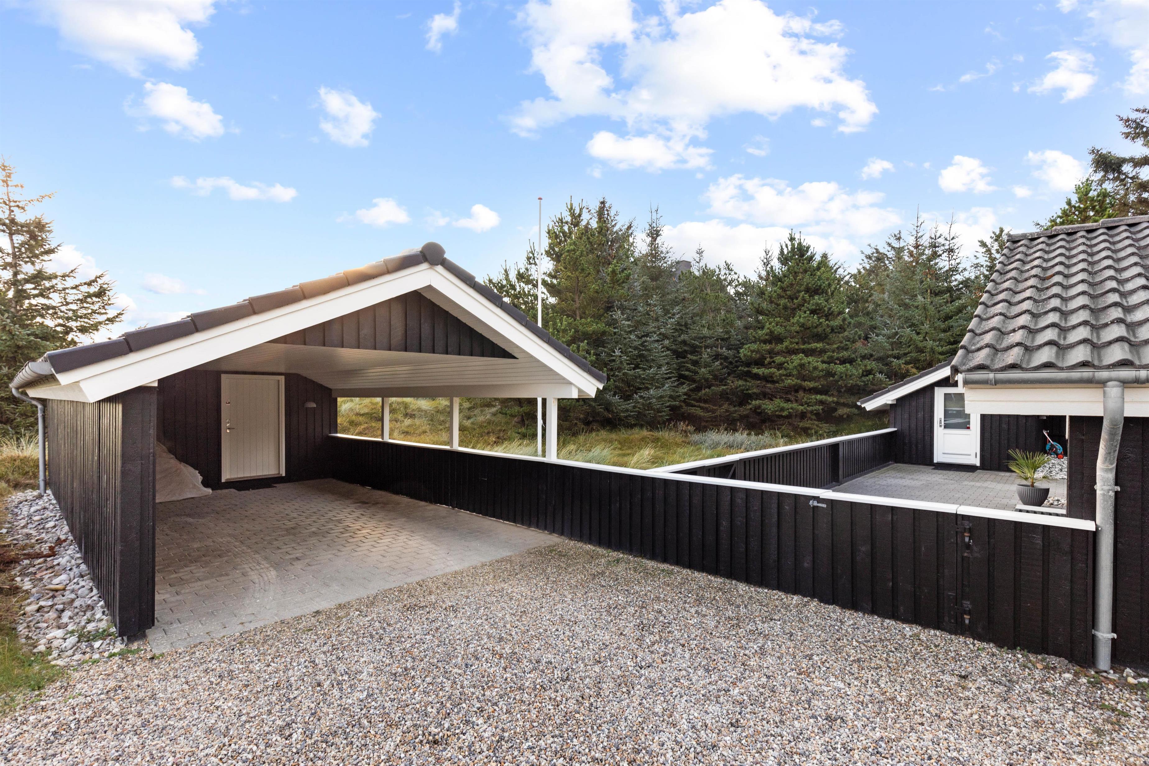 Til bilen er der en carport, så der er mulighed for at parkere i skyggen. Desuden er der et redskabsrum, hvor I kan deponere jeres cykler osv.