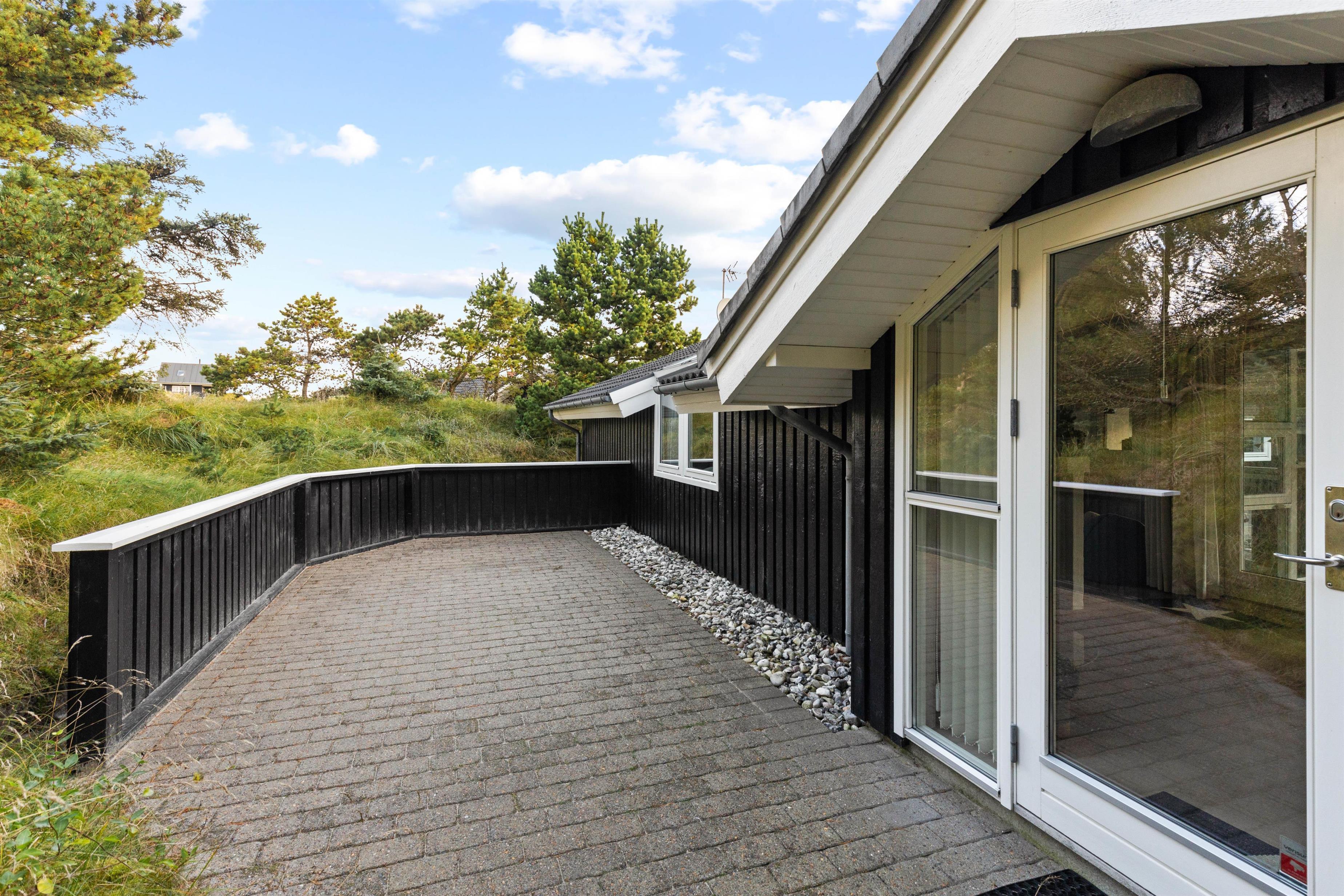 Med til feriehuset hører et skønt udeareal. Den lukkede terrasse går hele vejen rundt om huset, og der er mere end god plads til at hive havemøblerne og liggestolene frem på en varm sommerdag. Den grønne natur omgiver huset og tilsætter ferien ekstra idyl.