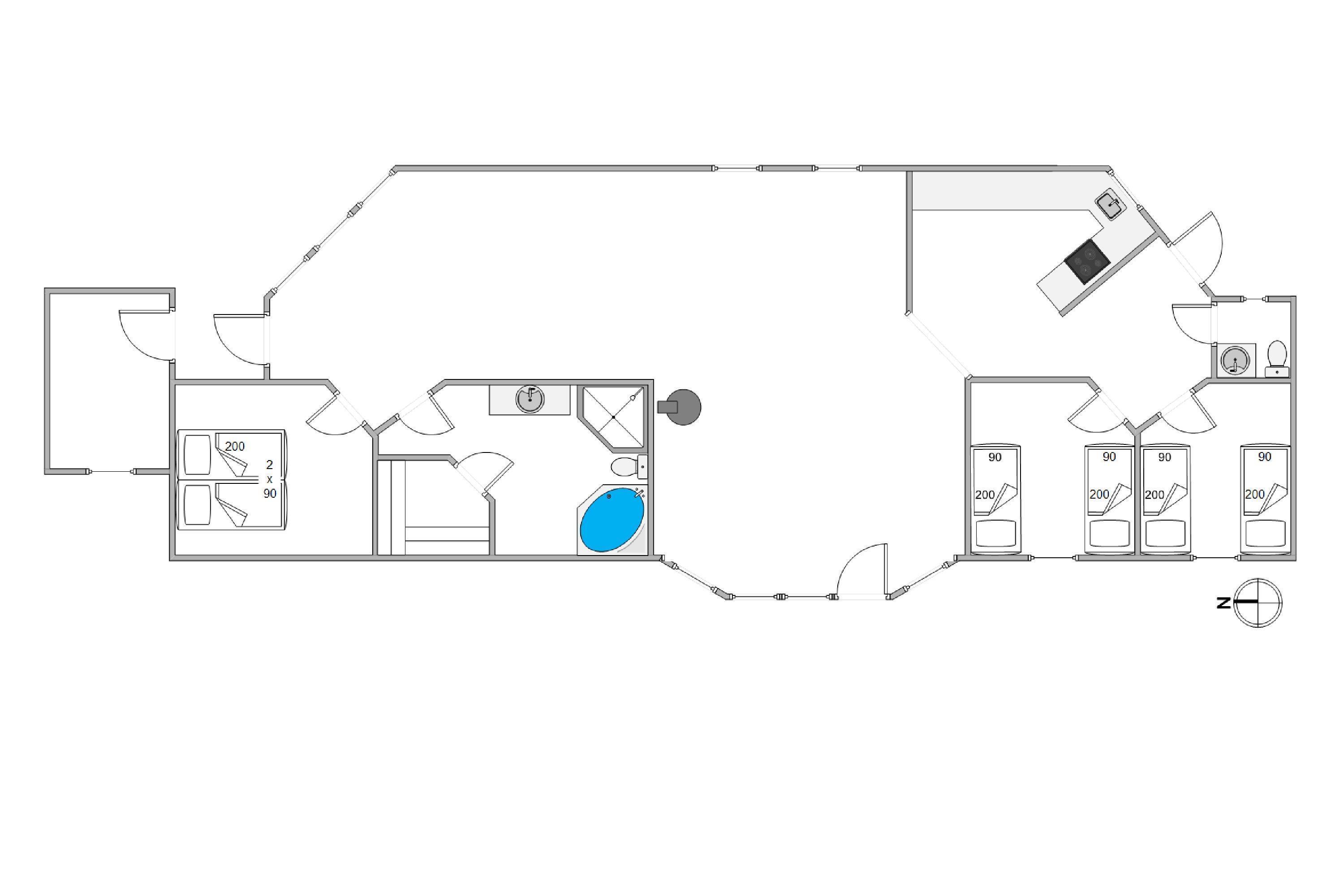 Hjertet i dette hyggelige feriehus er den store stue-allrum med det åbne moderne køkken, som er indrettet, så I nemt kan tilberede lækre feriemåltider sammen, som i efterfølgende kan nyde ved det store spisebord. Efter maden er der masser af fritid, opvaskemaskinen klarer nemlig resten. Med både vaskemaskine og opvaskemaskine er det dejligt nemt og bekvemt at holde sin ferie på Violvej 17.
