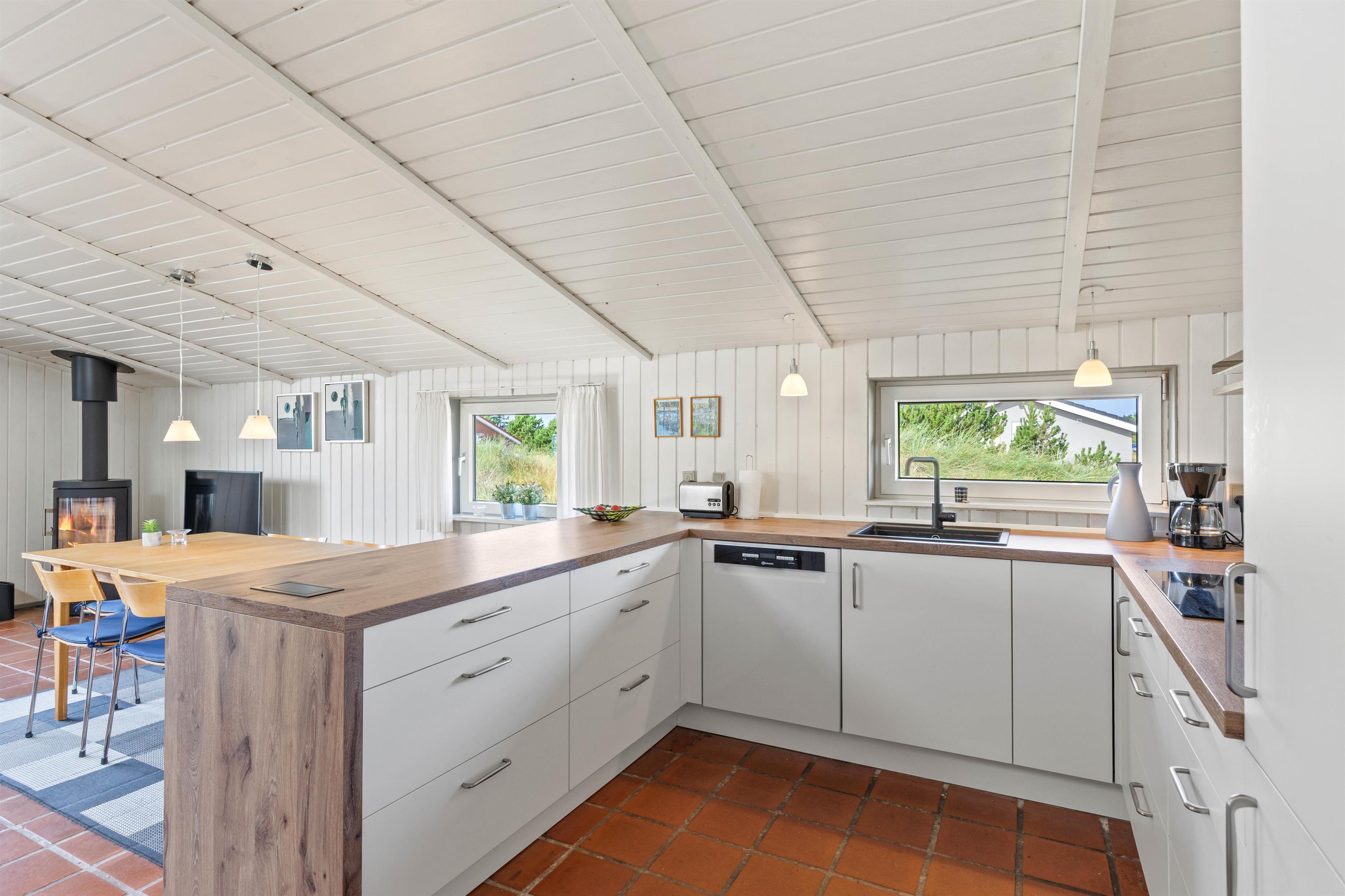 Det lyse træværk kombineret med røde klinker giver Engesøvej 27 en dejlig hyggelig atmosfære. I det åbne køkkenalrum og stuen kan familien samles til fælles madlavning og hygge efter en dejlig feriedag med masser af frisk luft og oplevelser. Køkkenet er ny fra 2023.