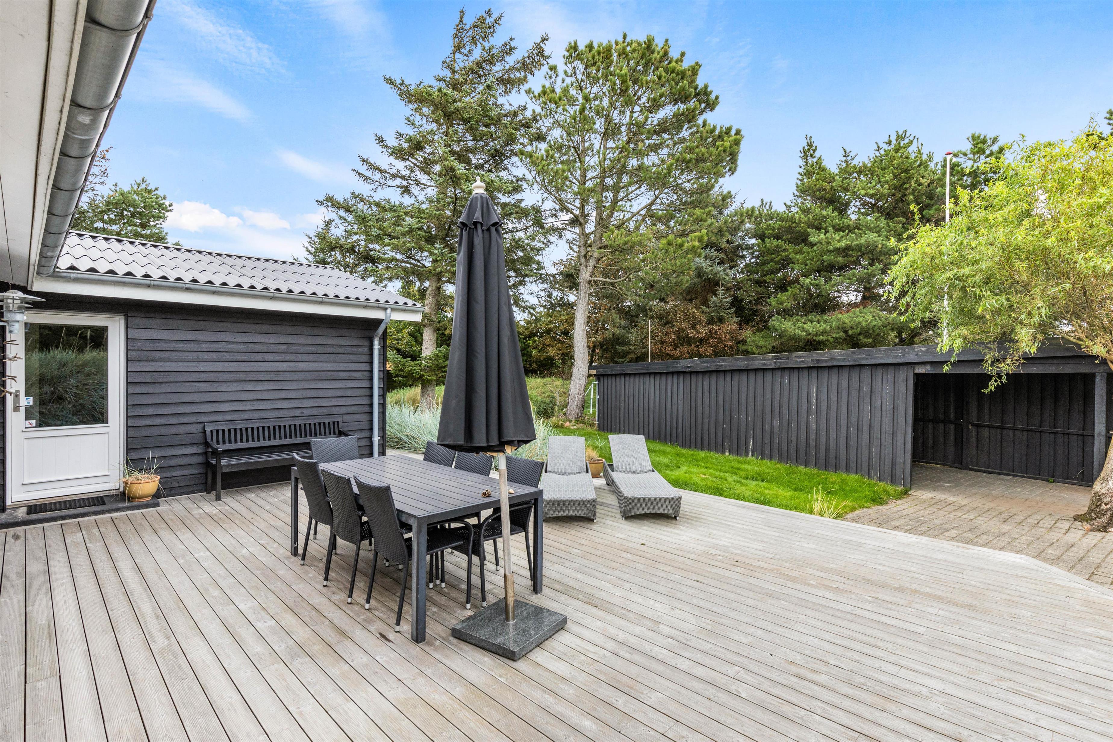 Omkring sommerhuset flere skønne terrasser, som I kan tilbringe de solrige dage af jeres ferie på. På terrasserne står der både havemøbler og liggestole klar, som I kan finde jer godt til rette i på en plads i solens stråler. En af terrasserne er delvist overdækket, så I har også mulighed for at nyde en stund i skyggen, når I skulle få brug for det.