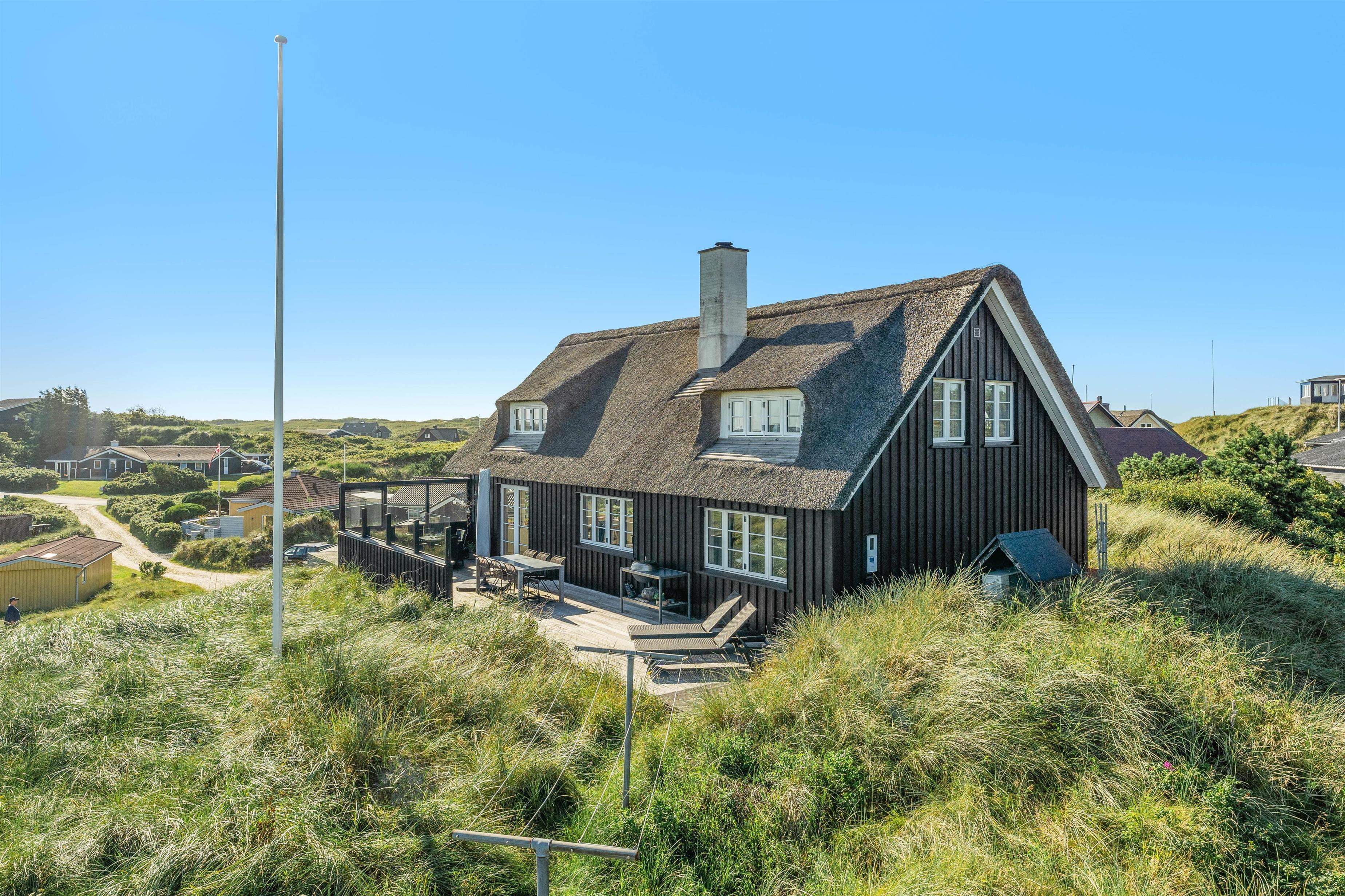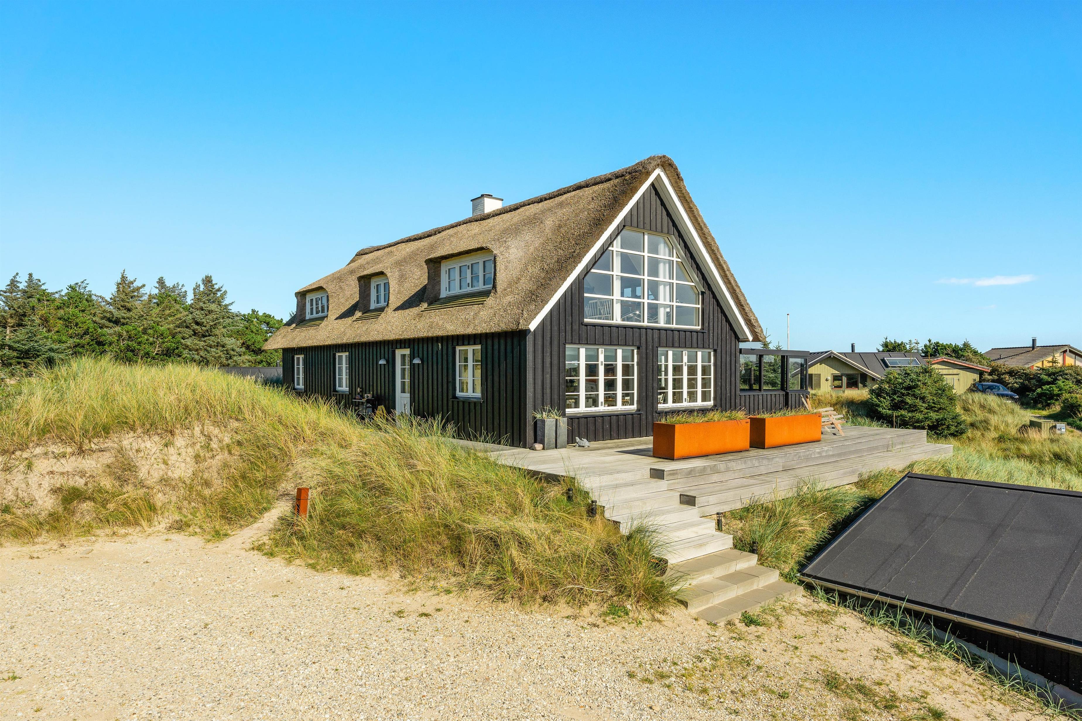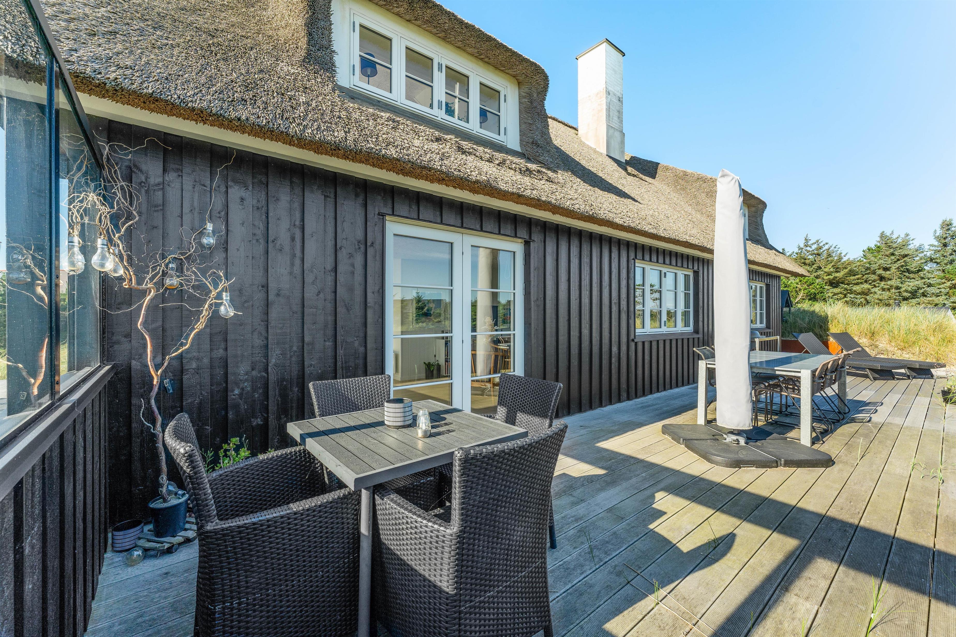 Dette stråtagshus tæt på stranden i Vejers har plads til 8 personer og har - blandt andet en dejlig stor terrasse og et spabad. sommerhus med sauna, spabad og attraktiv beliggenhed