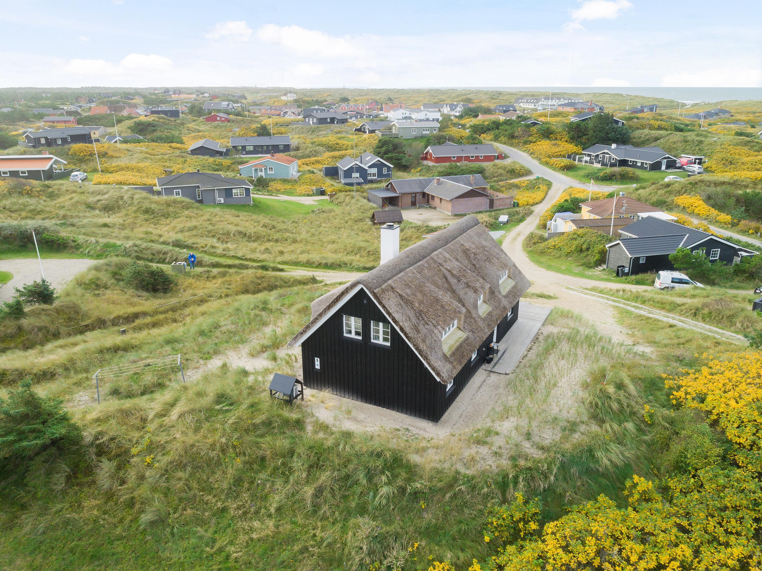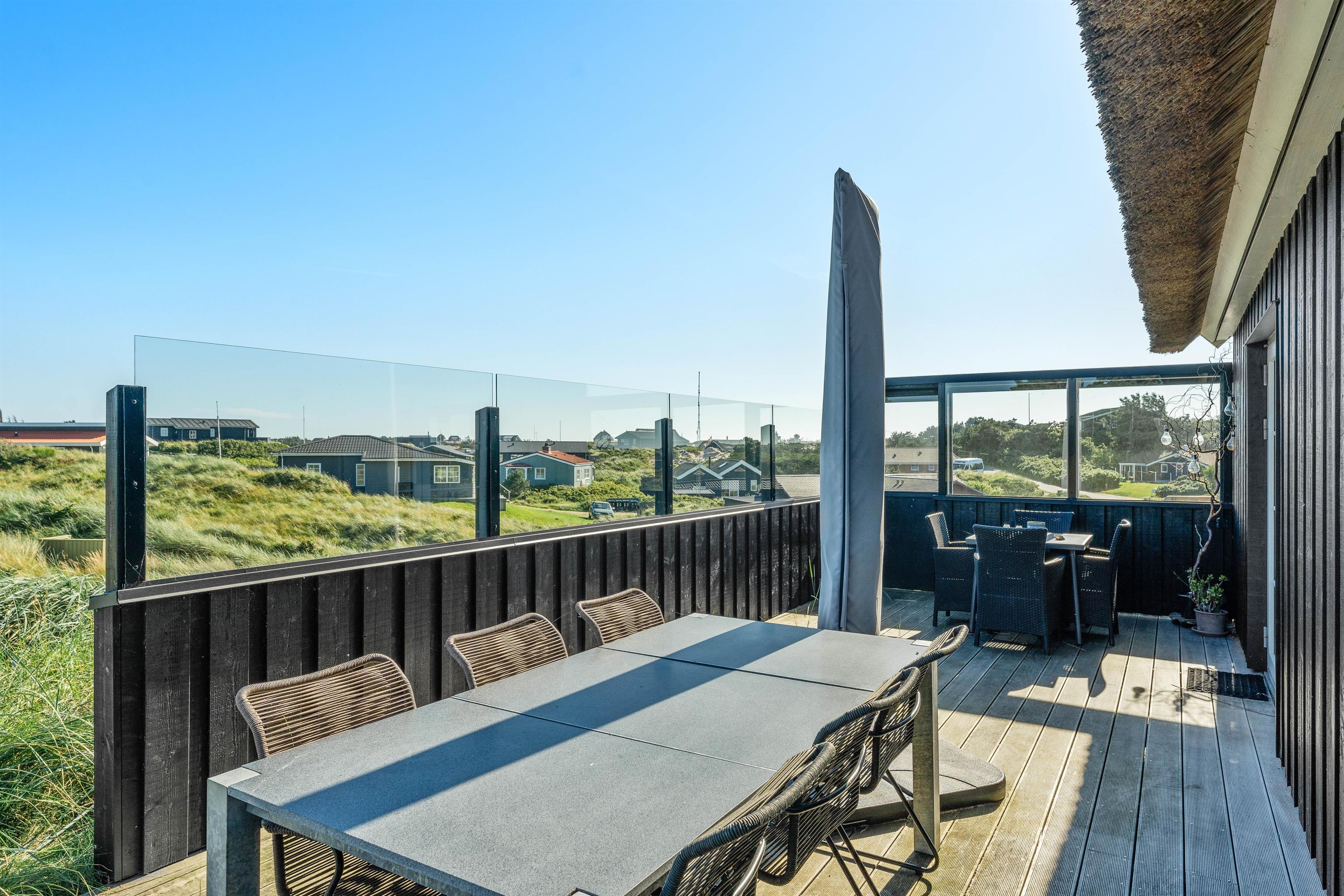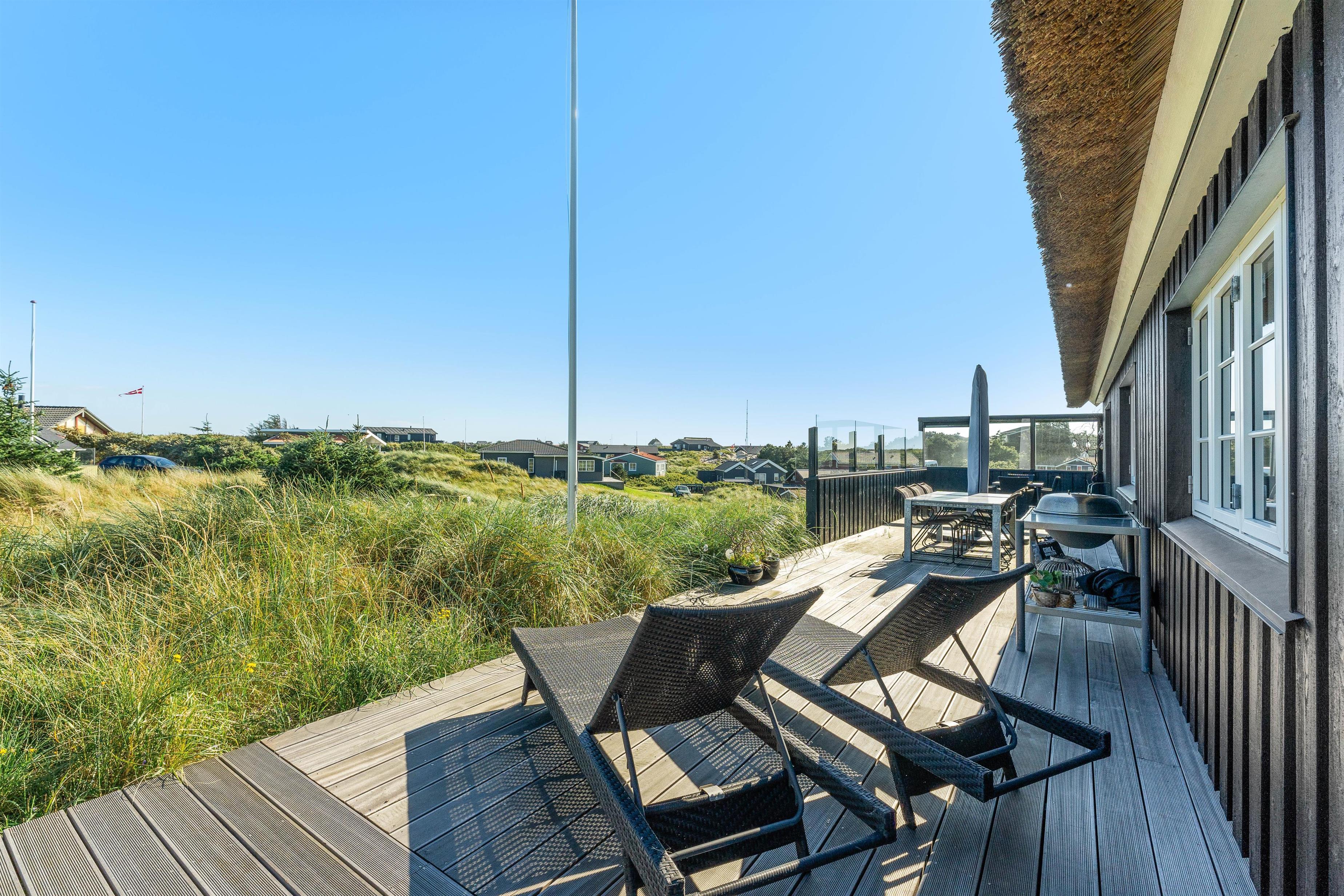 Dette stråtagshus tæt på stranden i Vejers har plads til 8 personer og har - blandt andet en dejlig stor terrasse og et spabad. sommerhus med sauna, spabad og attraktiv beliggenhed