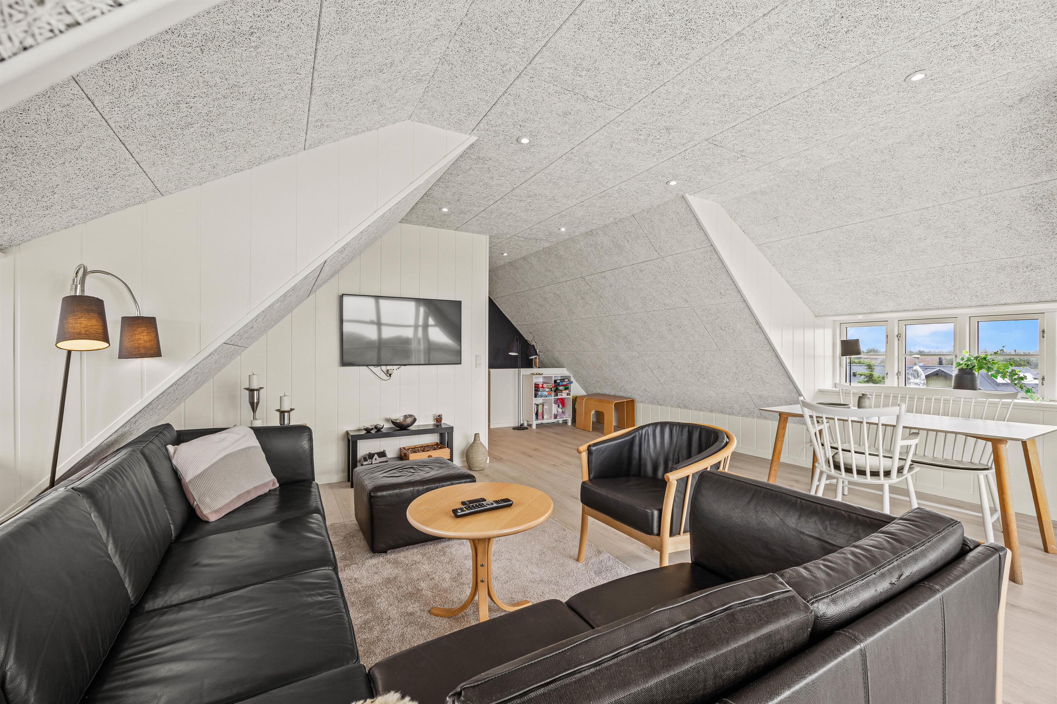 Husets hjerte er det store fællesområde, der kombinerer køkkenalrum og stue. Her kan hele familien samles og lægge planer for morgendagen over en god middag eller tage et spil kort sammen med en nybrygget kop kaffe.