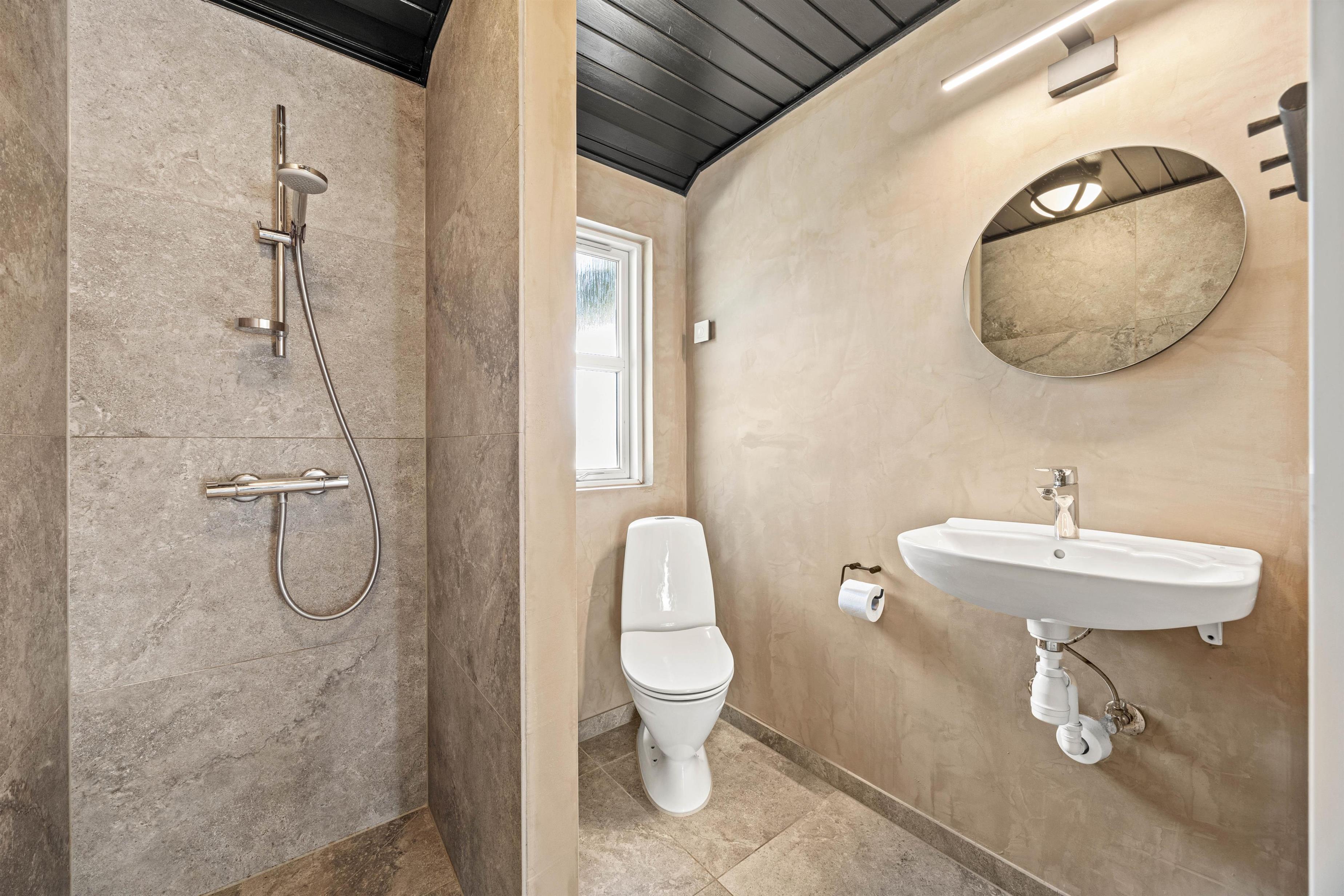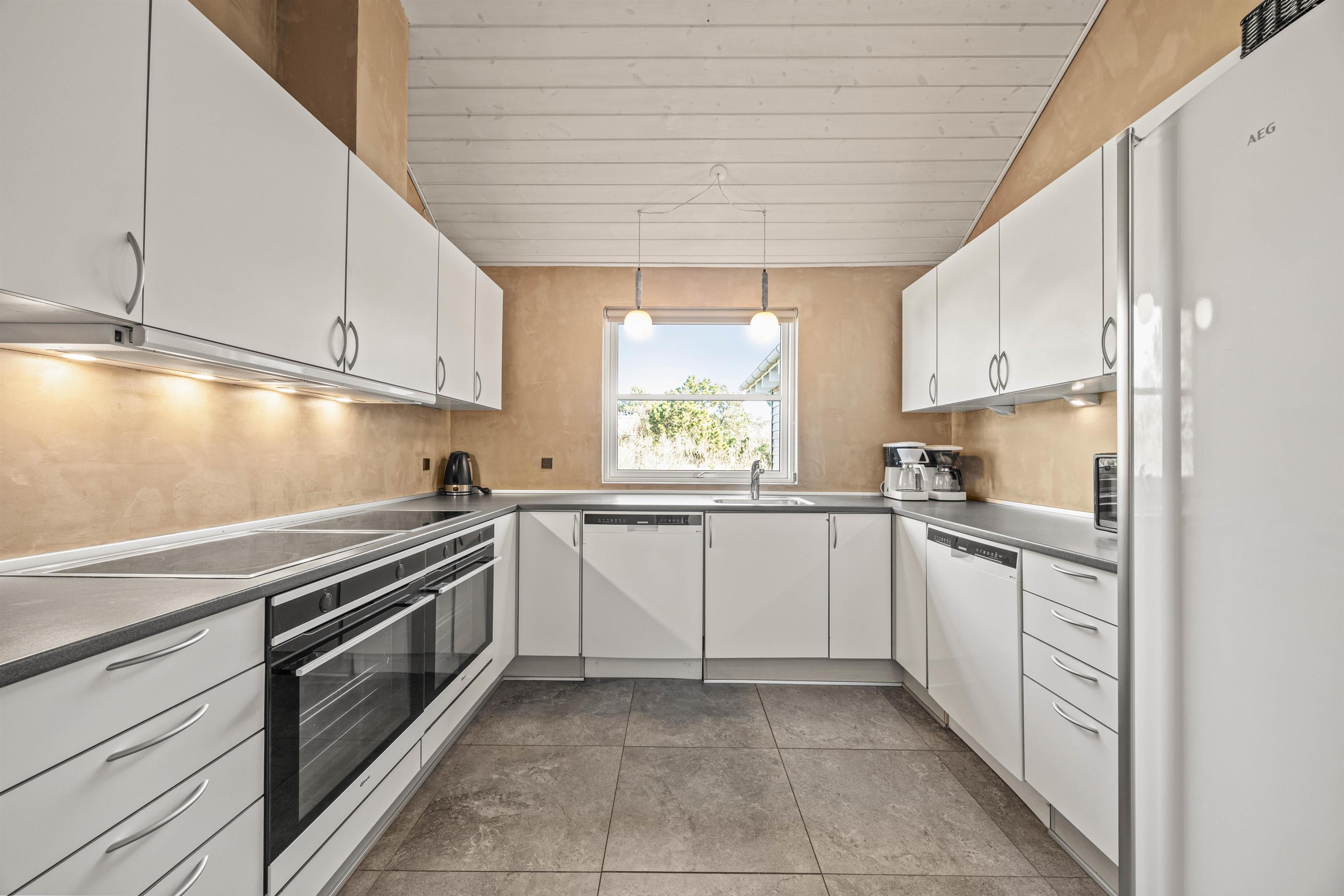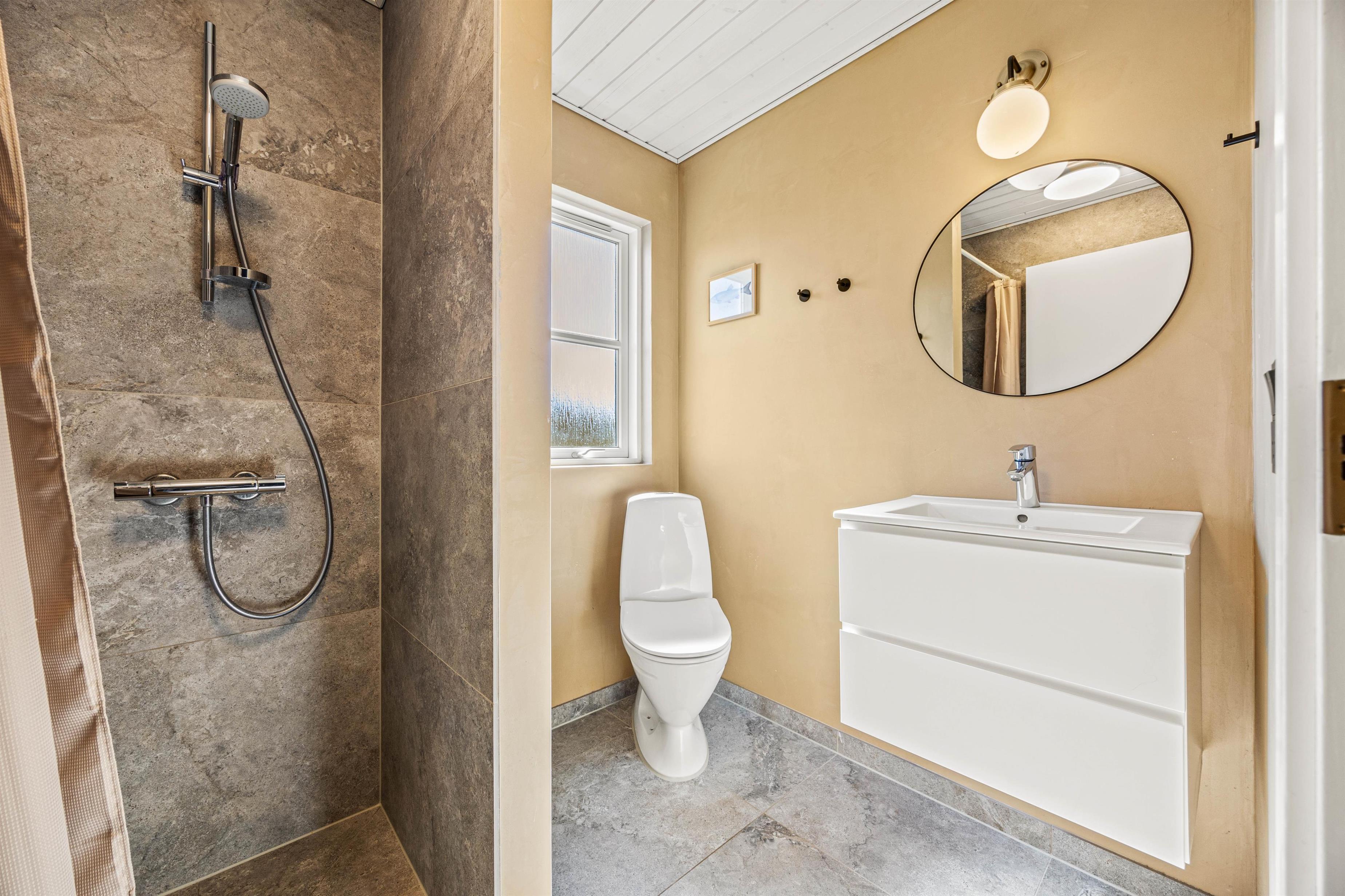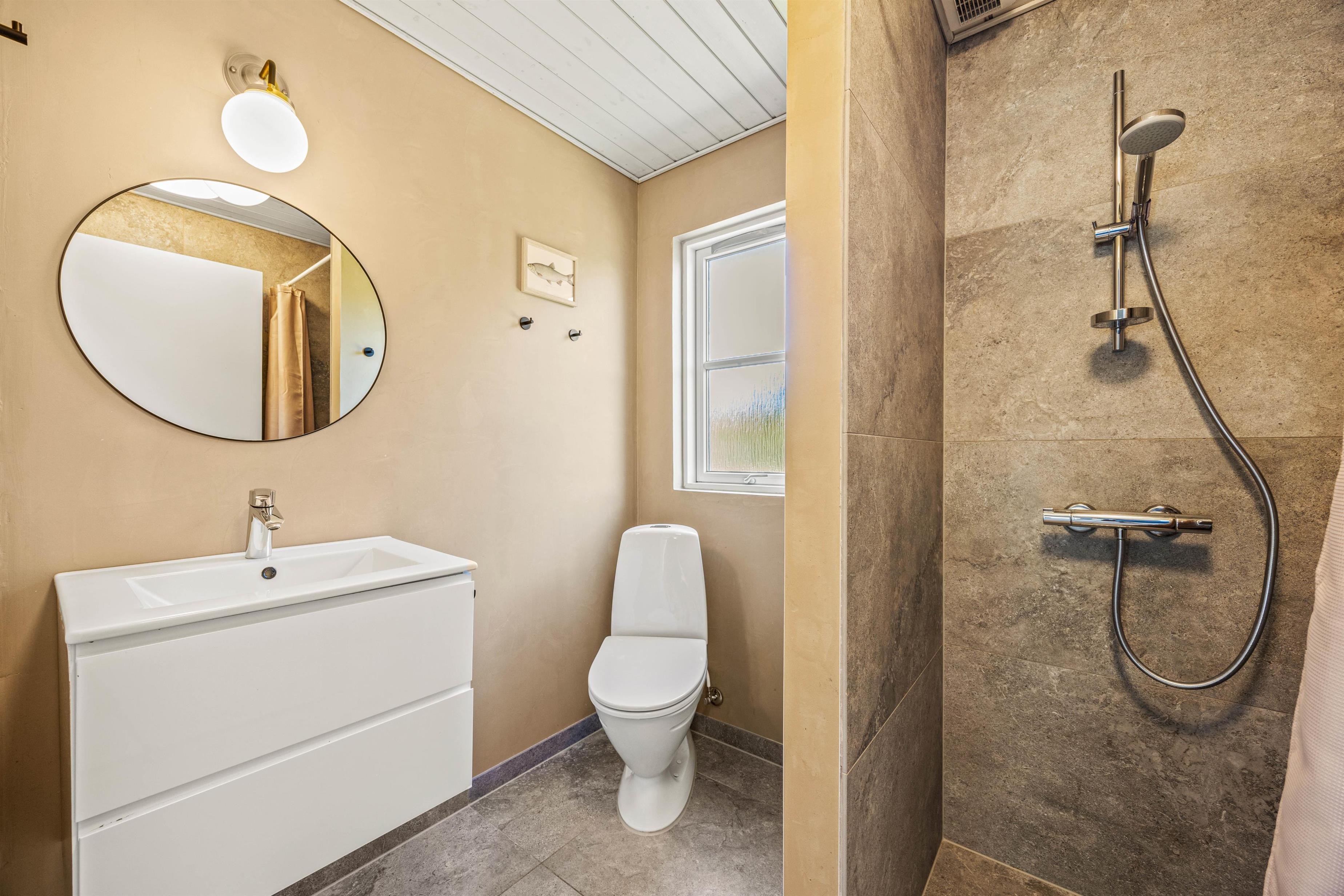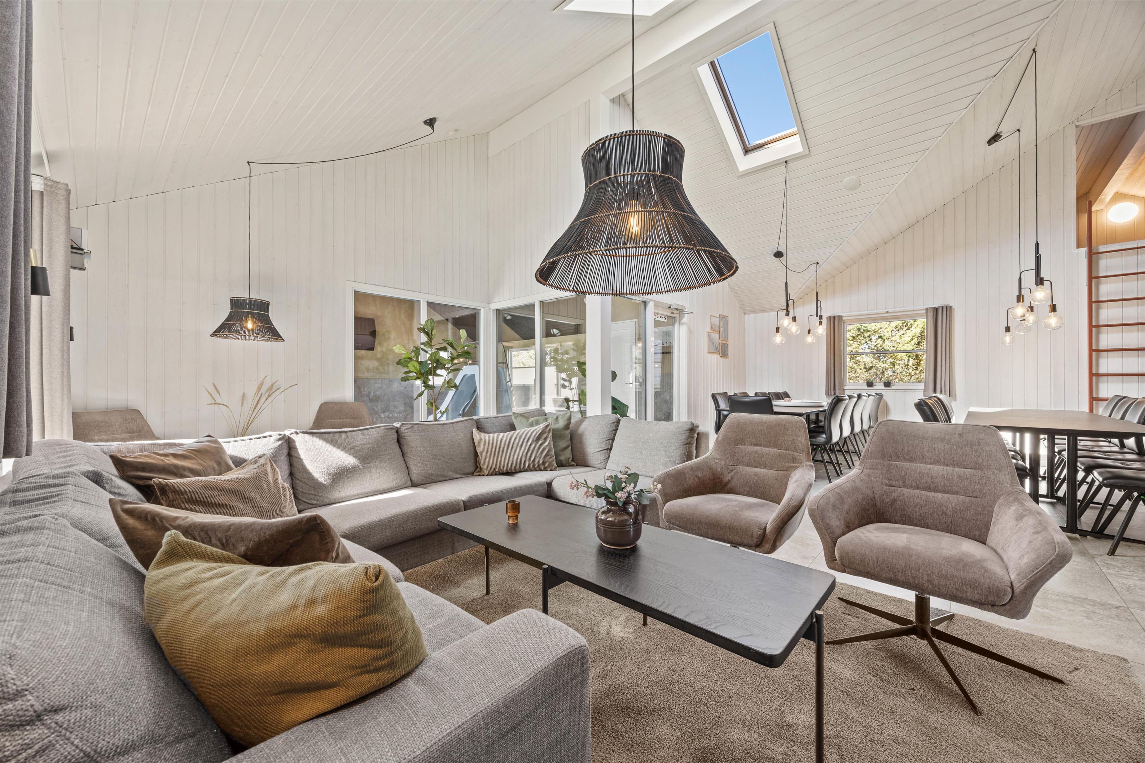 Med i alt 9 smagfuldt indrettede soveværelser og en kombination af 5 dobbeltsenge og 14 enkeltsenge giver sommerhuset i Vejers rigelig plads til op til 24 personer. Bekvemt og komfortabelt kan du slappe af med din familie eller venner i disse indbydende rum. De 4 badeværelser er moderne udstyret, så der opstår ingen ventetider, og alle kan starte friske på dagen. Opholdsområdet kompletteres af en hyggelig brændeovn, der giver behagelig varme på køligere aftener.