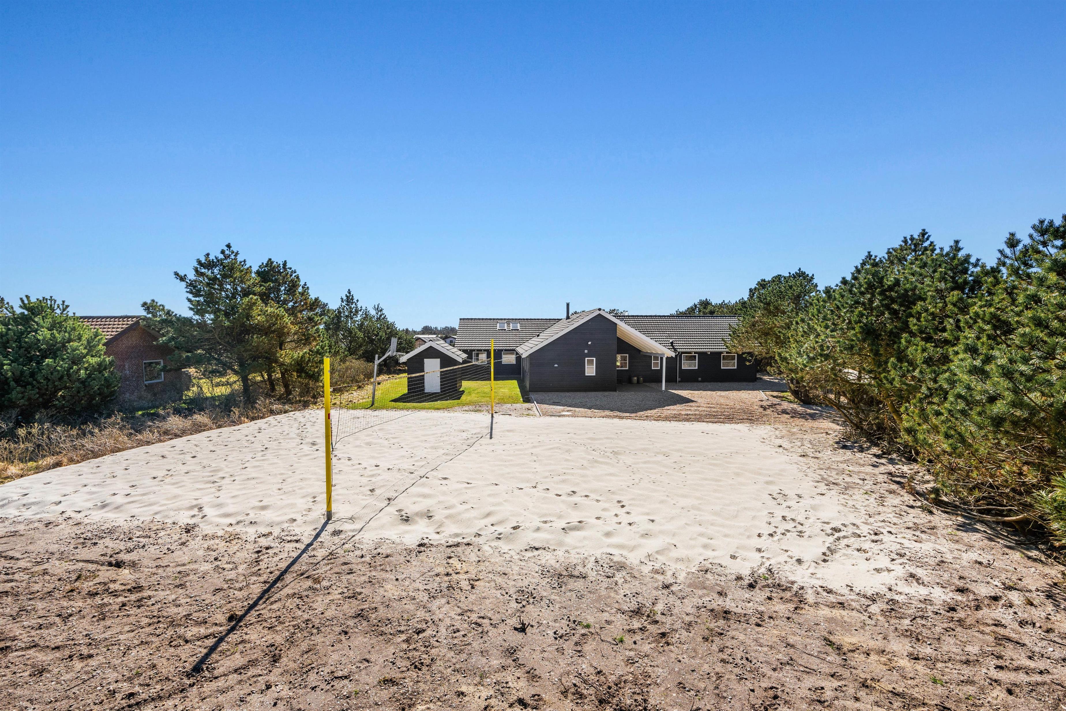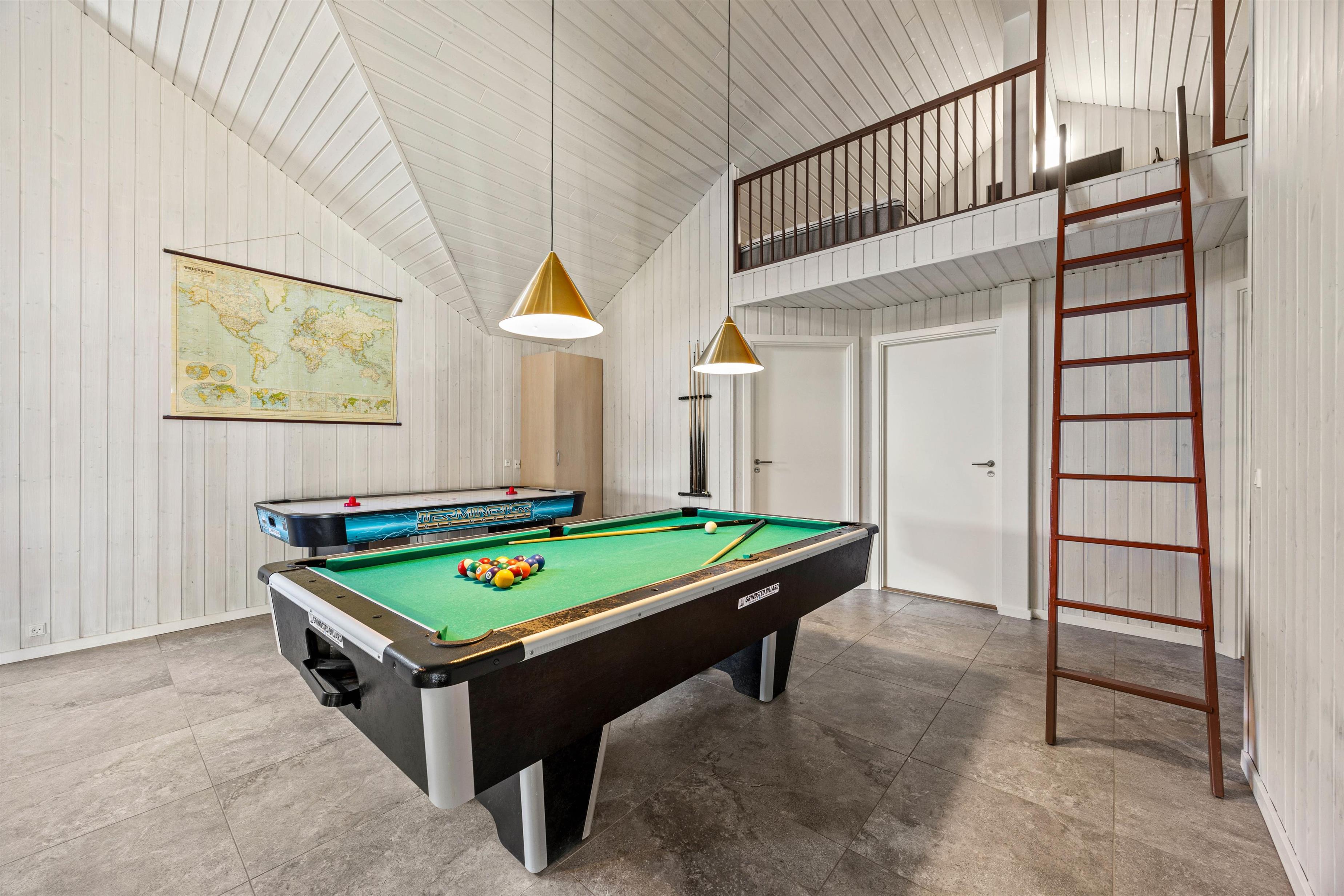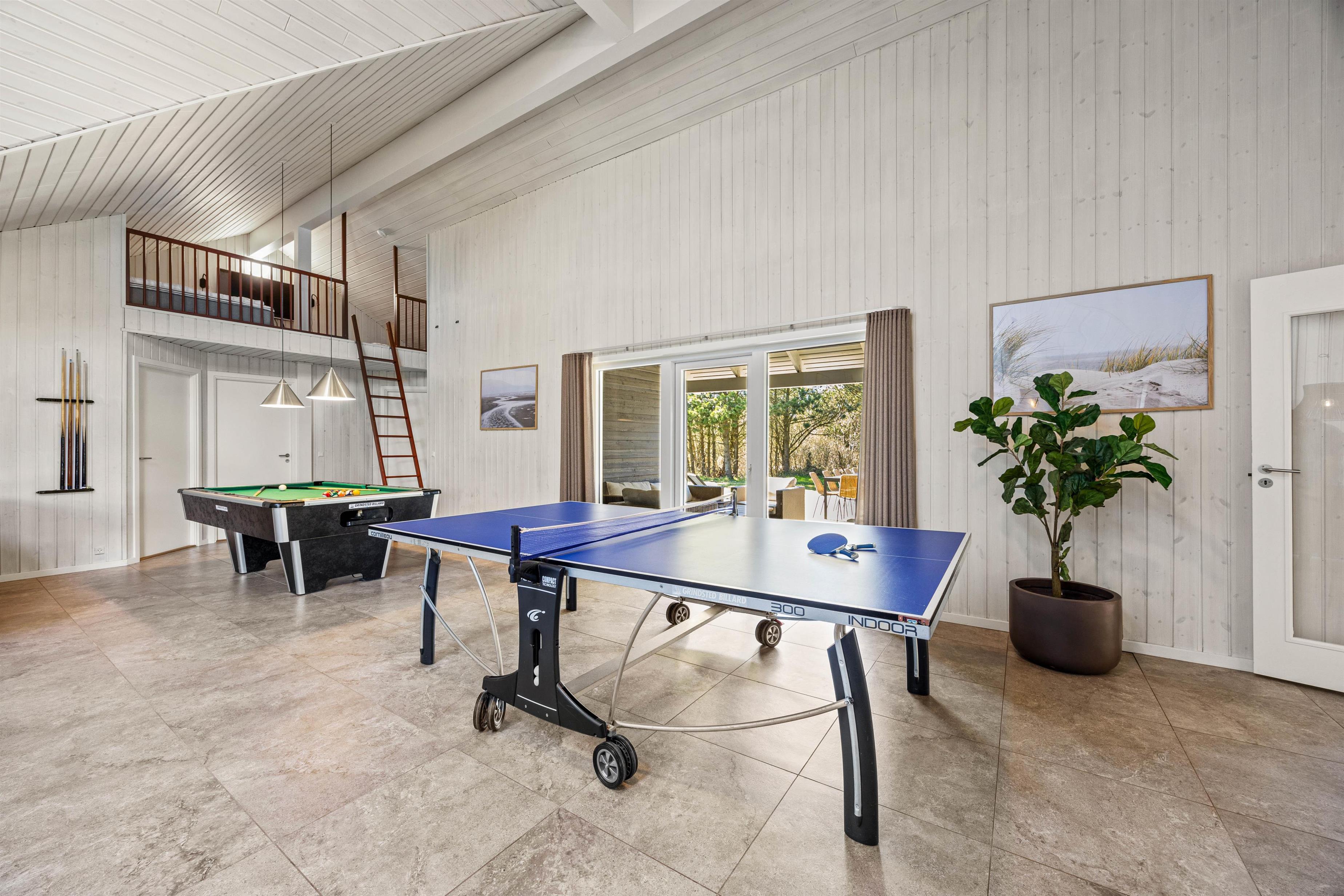 Feriehuset i Vejers er et sandt aktivitetshus, der tilbyder dig og dine medrejsende adskillige muligheder for fritidsaktiviteter. Nyd den fantastiske swimmingpool, eller træk dig tilbage til saunaen og det stående spabad for at forkæle krop og sjæl. For fysisk aktivitet står billard, bordtennis og bordfodbold til din rådighed. Du kan også være aktiv udendørs på den store grund på 2957 m², hvad enten det er til beachvolleyball eller en afslappet grillaften på den overdækkede terrasse.