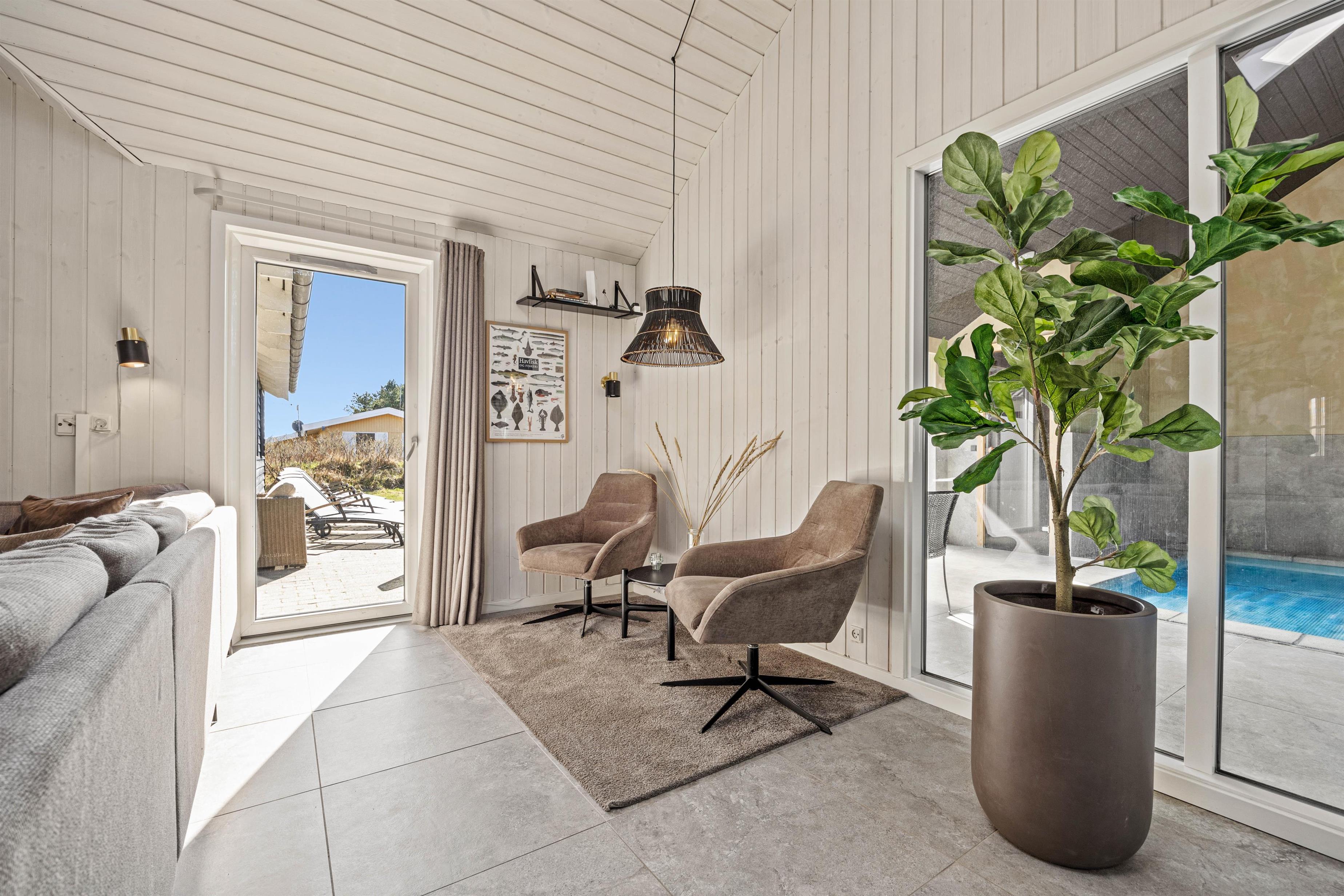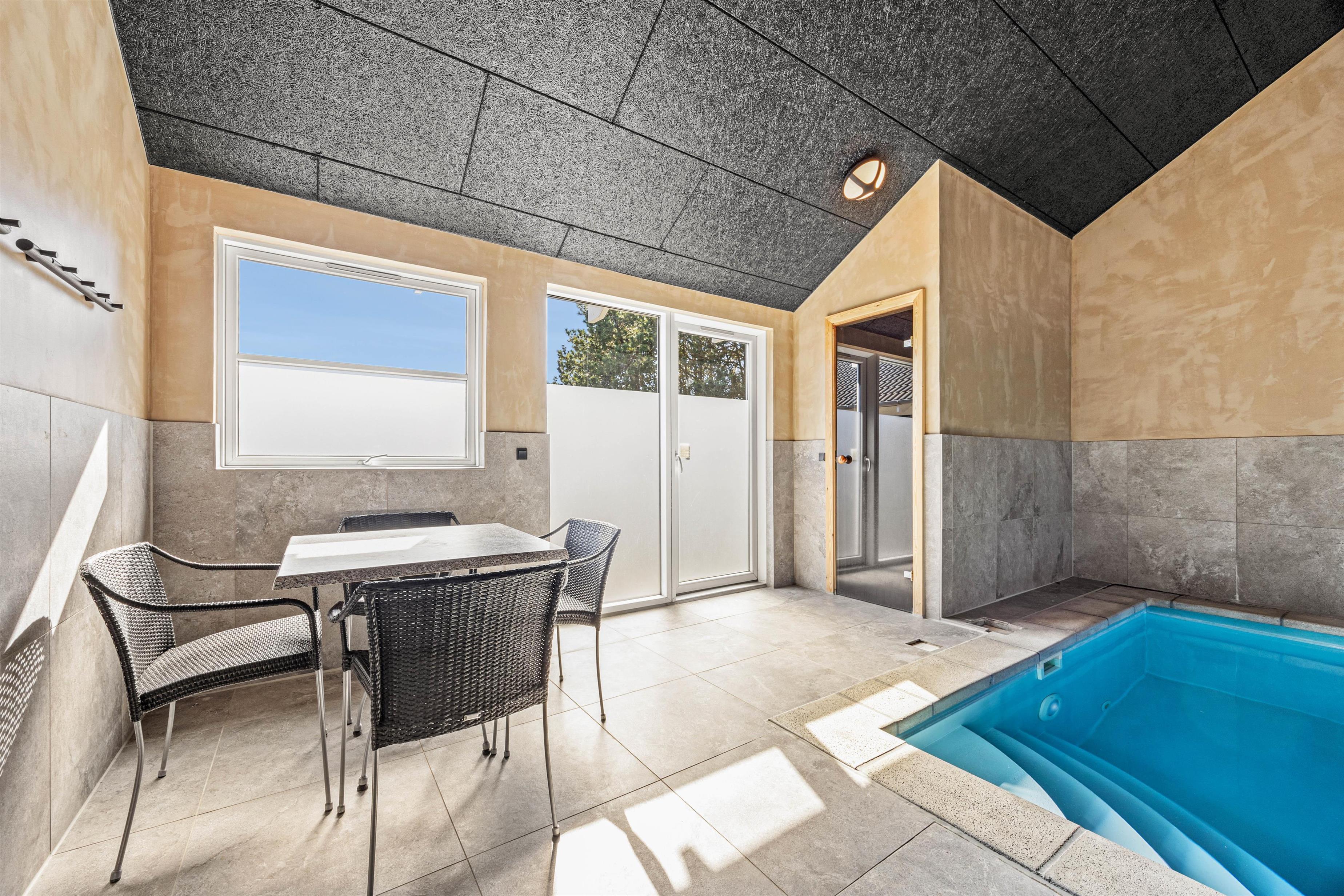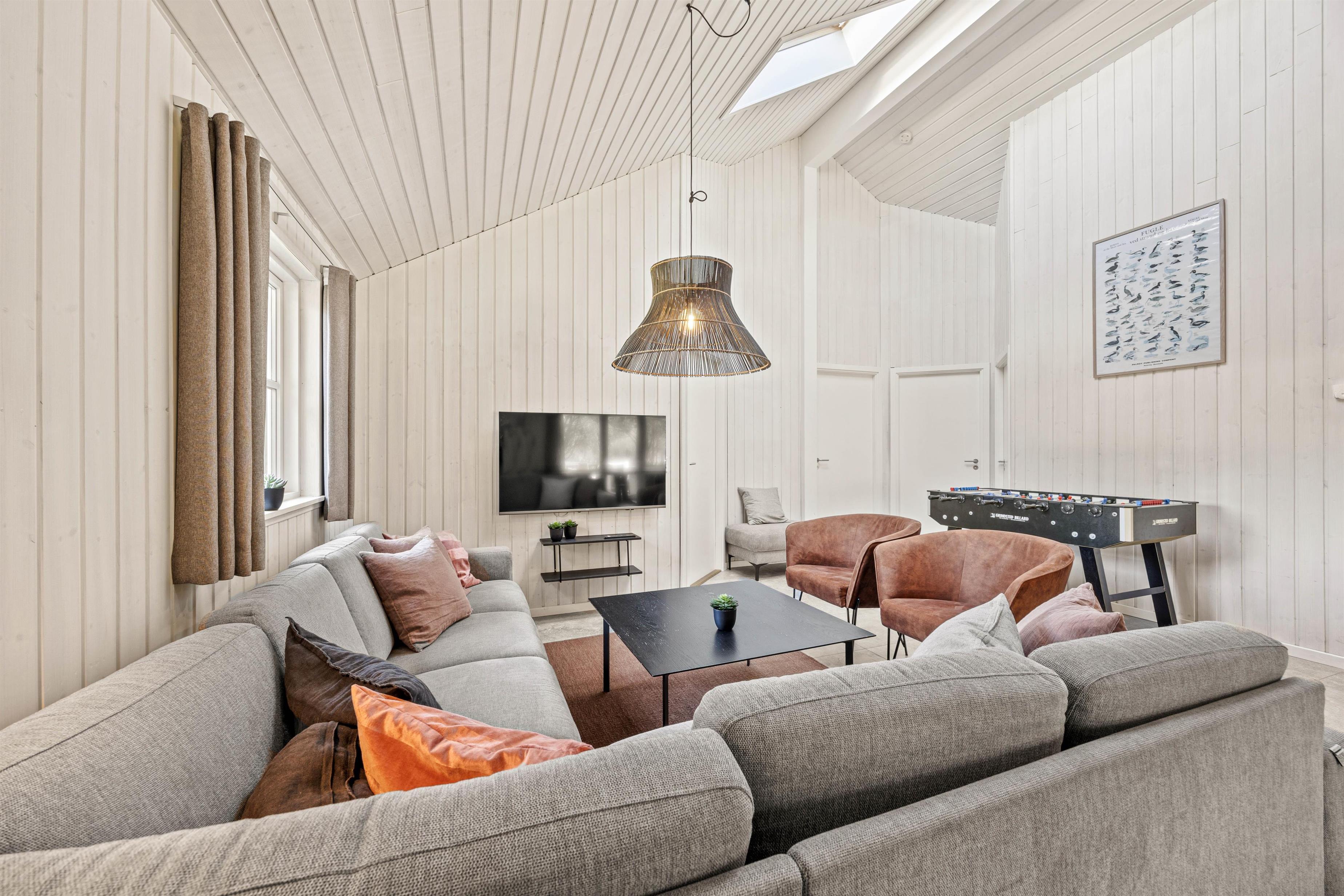 Feriehuset i Vejers er et sandt aktivitetshus, der tilbyder dig og dine medrejsende adskillige muligheder for fritidsaktiviteter. Nyd den fantastiske swimmingpool, eller træk dig tilbage til saunaen og det stående spabad for at forkæle krop og sjæl. For fysisk aktivitet står billard, bordtennis og bordfodbold til din rådighed. Du kan også være aktiv udendørs på den store grund på 2957 m², hvad enten det er til beachvolleyball eller en afslappet grillaften på den overdækkede terrasse.