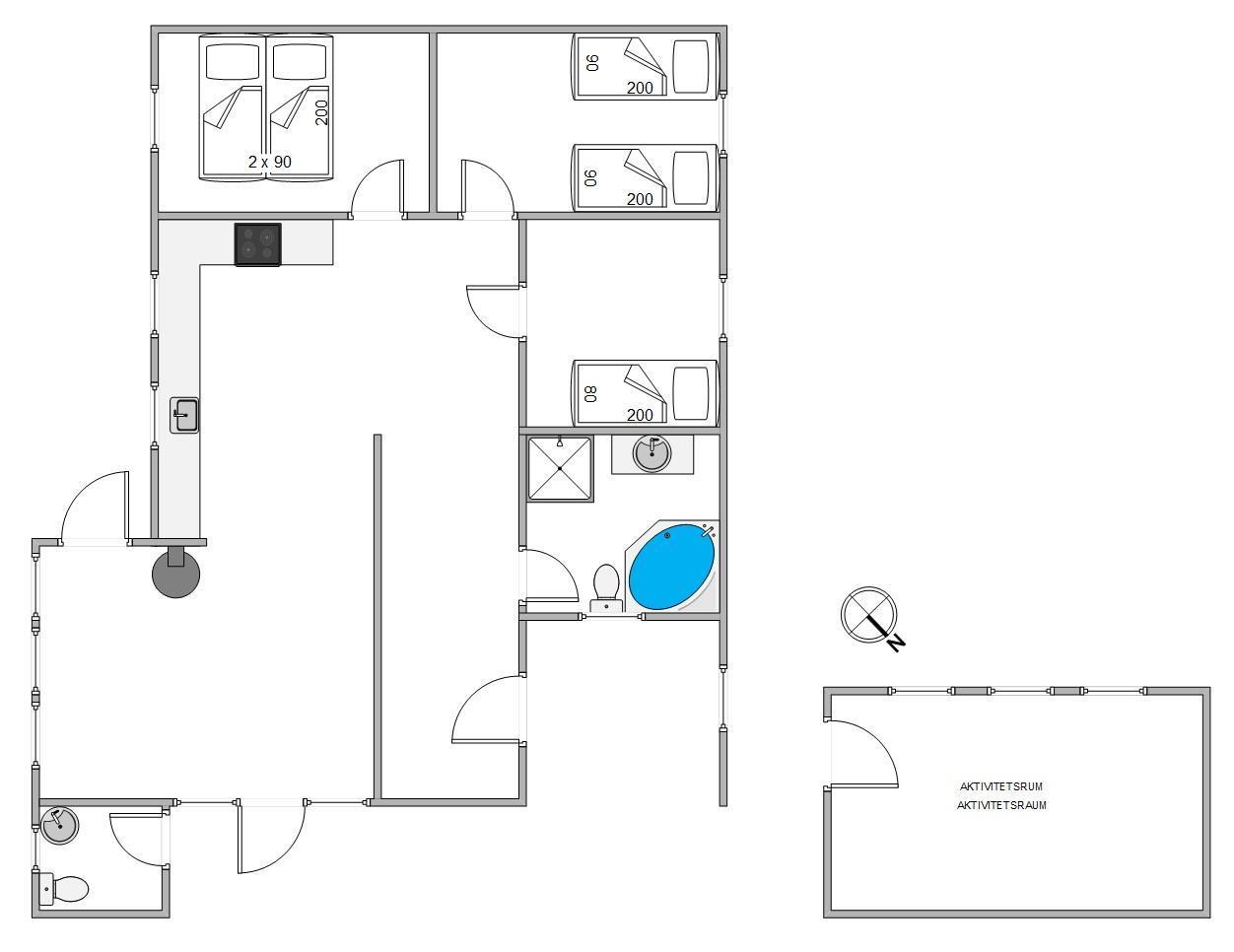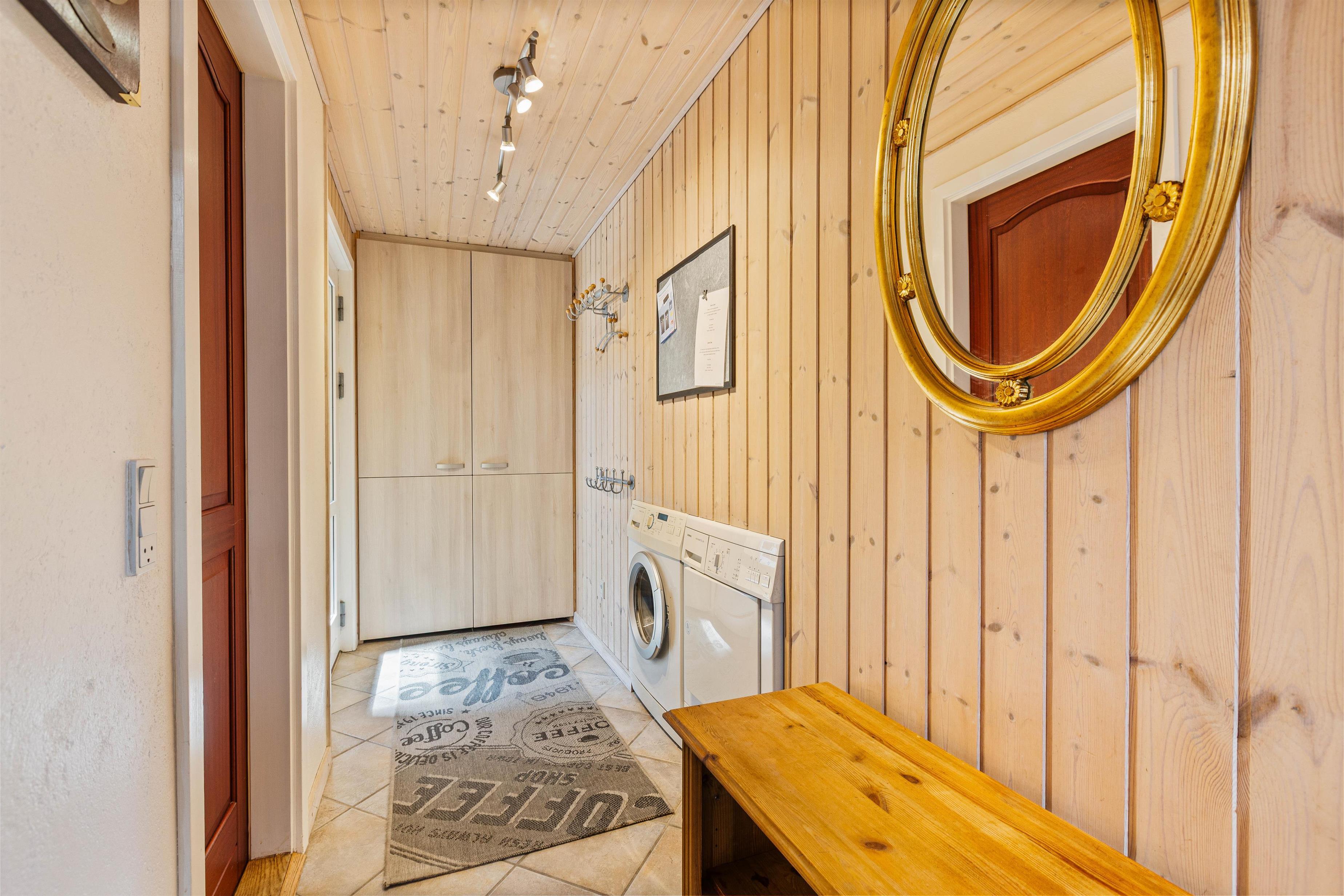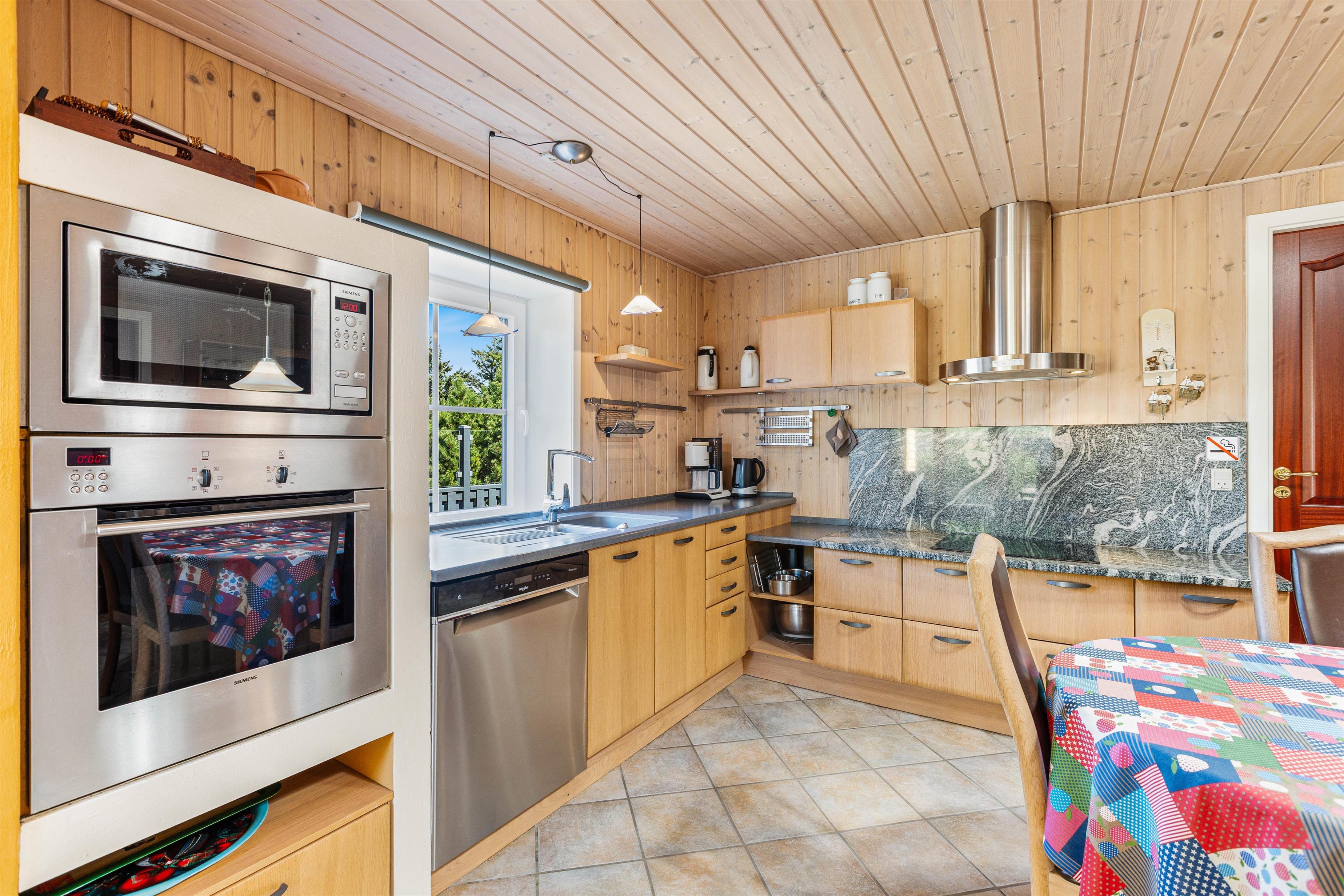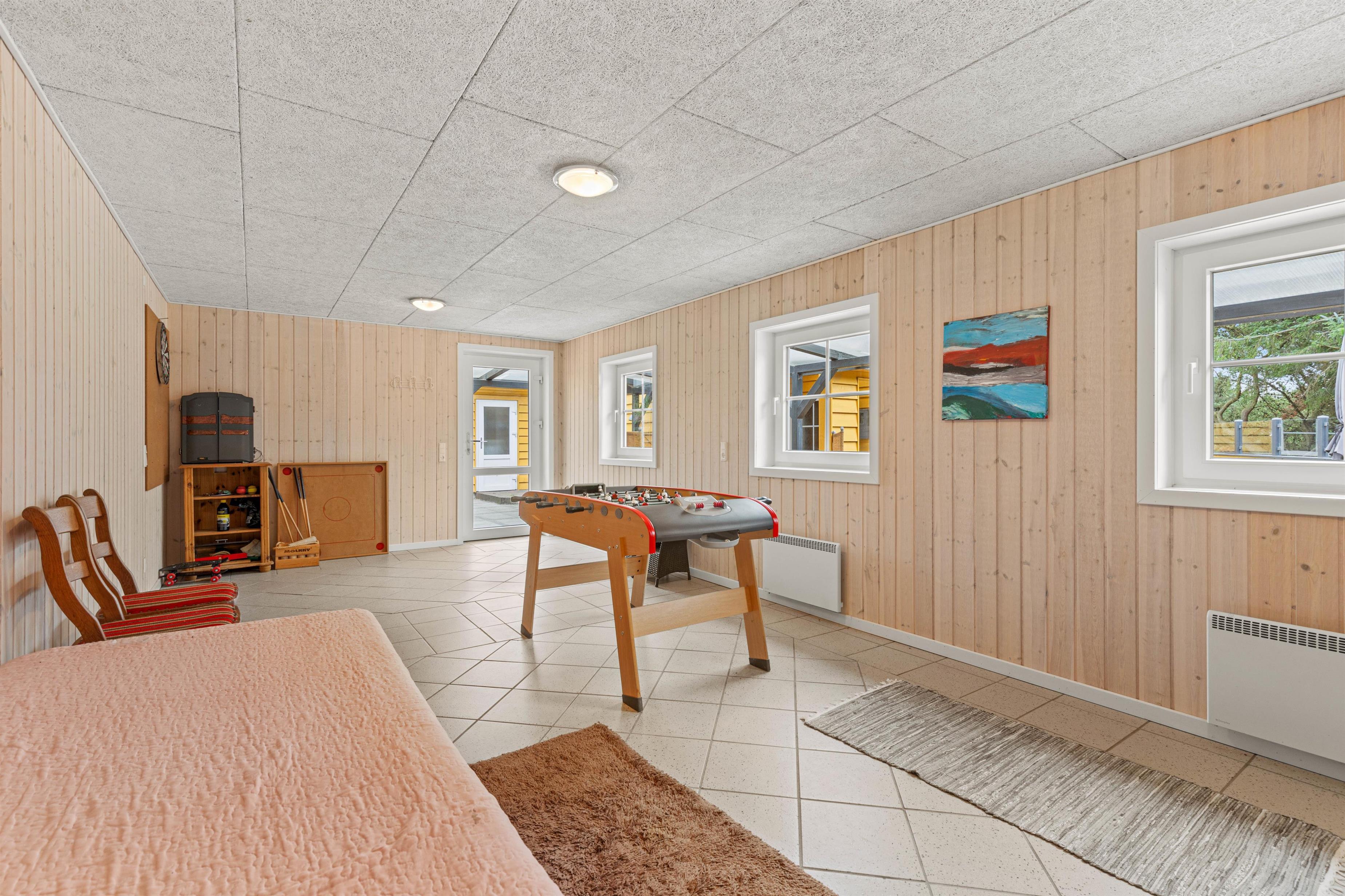 Her på Havvej 45 er det sjovt og nemt at trylle i det store køkken, det er indrettet med ovn og komfur i rigtige højder og generelt gode gennemtænkte løsninger. Imens de voksne hygger i stuen med at tænde op i brændeovnen og måske ser lidt fjernsyn og slapper af i de smarte, bekvemme lædermøbler, så kan børnene og de barnlige sjæle smutte over til spil, sjov og hygge i det lille opholds-/aktivitetsrum med bordfodbold og dart. Her behøver ingen at kede sig.