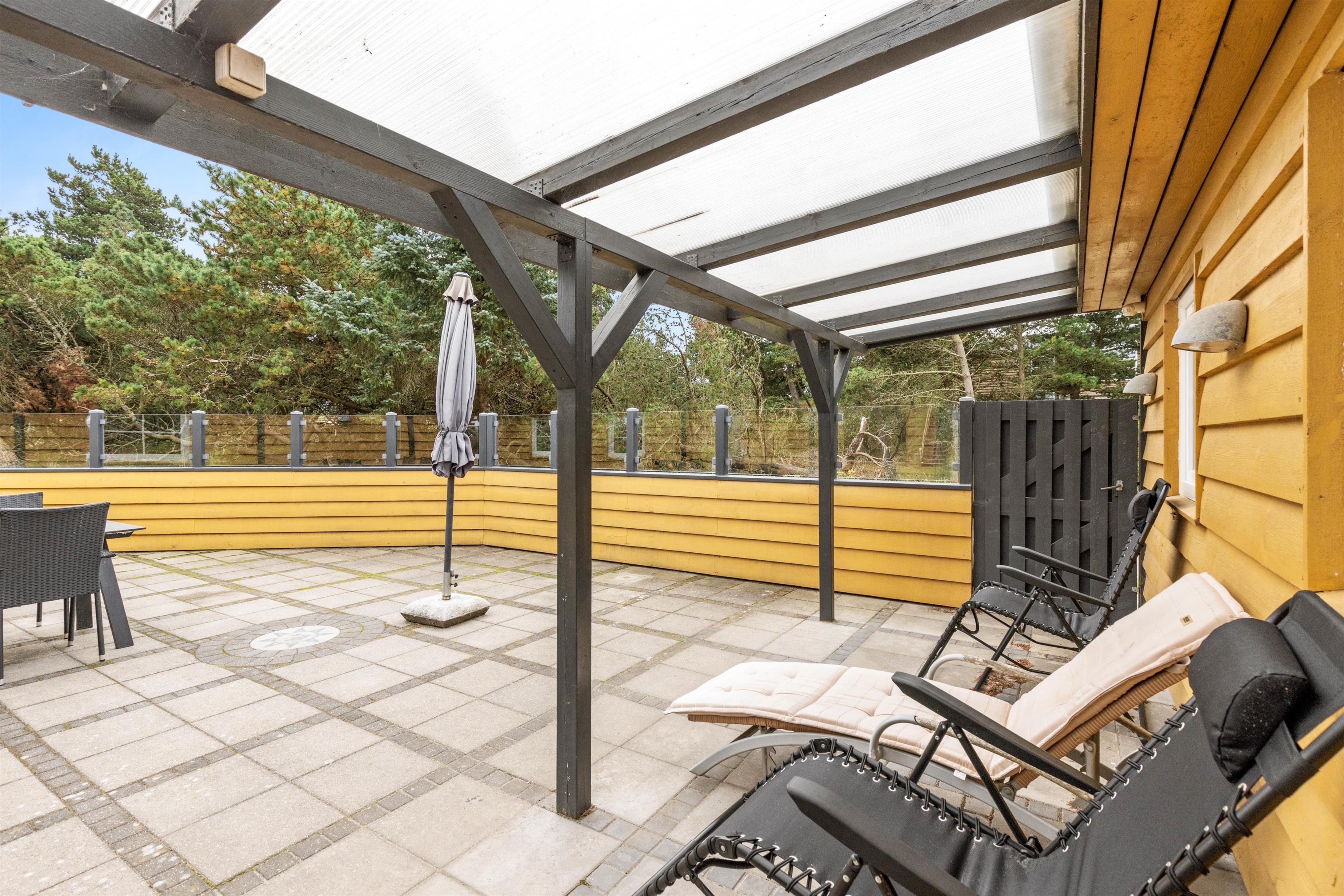 En stor lukket terrasse, som til dels er overdækket, garanterer for privatliv og dejlig læ. Her kan I trygt slappe af hele dagen, de små størrelser kan ikke smutte på opdagelse alene. Om aftenen kan I tænde op i grillen og lade dagen klinge ud med en grillet steak og et glas rødvin.