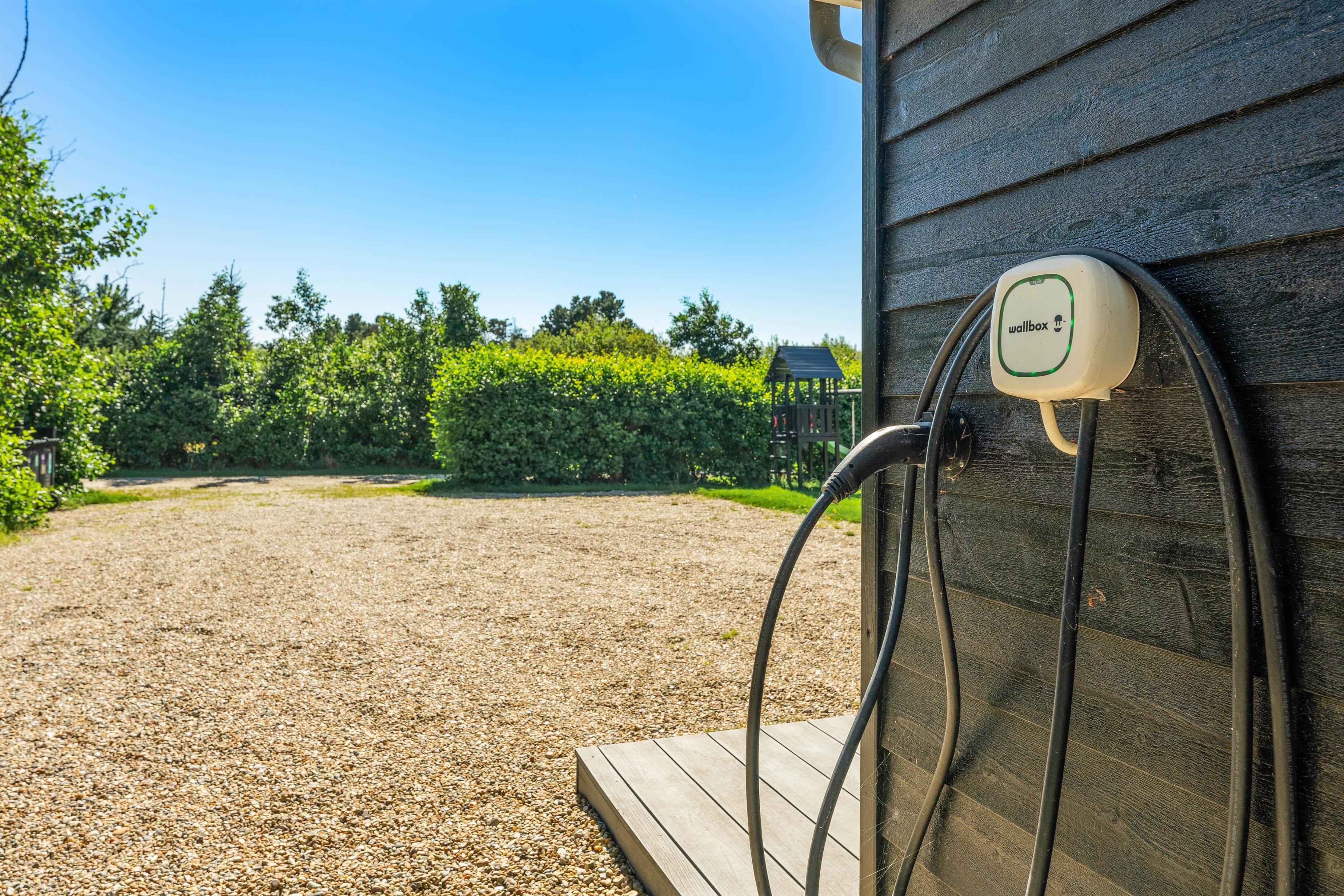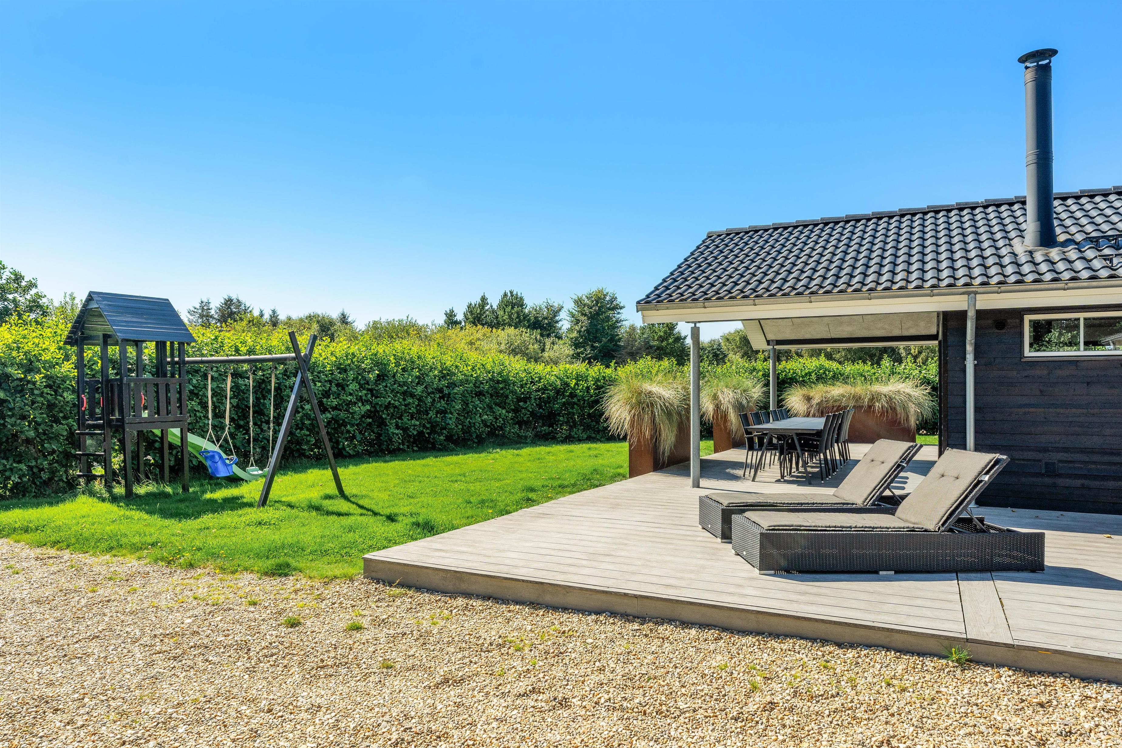 Feriehuset har en rigtig god terrasse, der både er åben og har en overdækket del, så I kan nyde den friske luft i al slags vejr. Der er havemøbler nok til alle, samt et par gode liggestole, og ikke mindst en stor grill, så I kan udnytte de skønne sommerdage til fulde og runde af med en god middag i aftensolen. Der er gyngestativ på grunden.