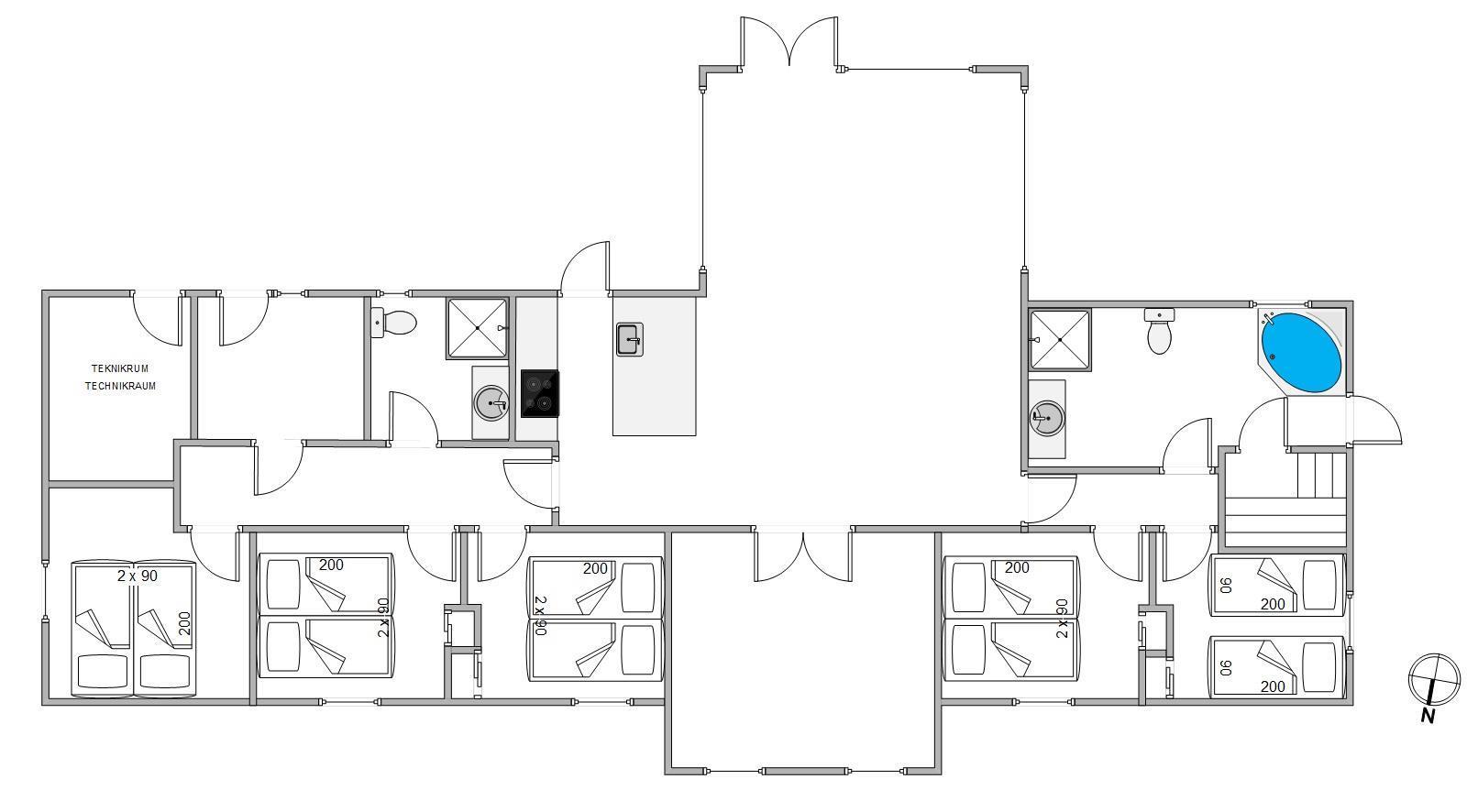 Der er sørget for underholdning til enhver smag. I aktivitetsrummet kan I give jer i kast med poolbord, bordtennis og dart. Det største af husets 2 badeværelser er indrettet med en lækker wellnessafdeling med spabad og sauna, og der er også en massagestol i feriehuset.