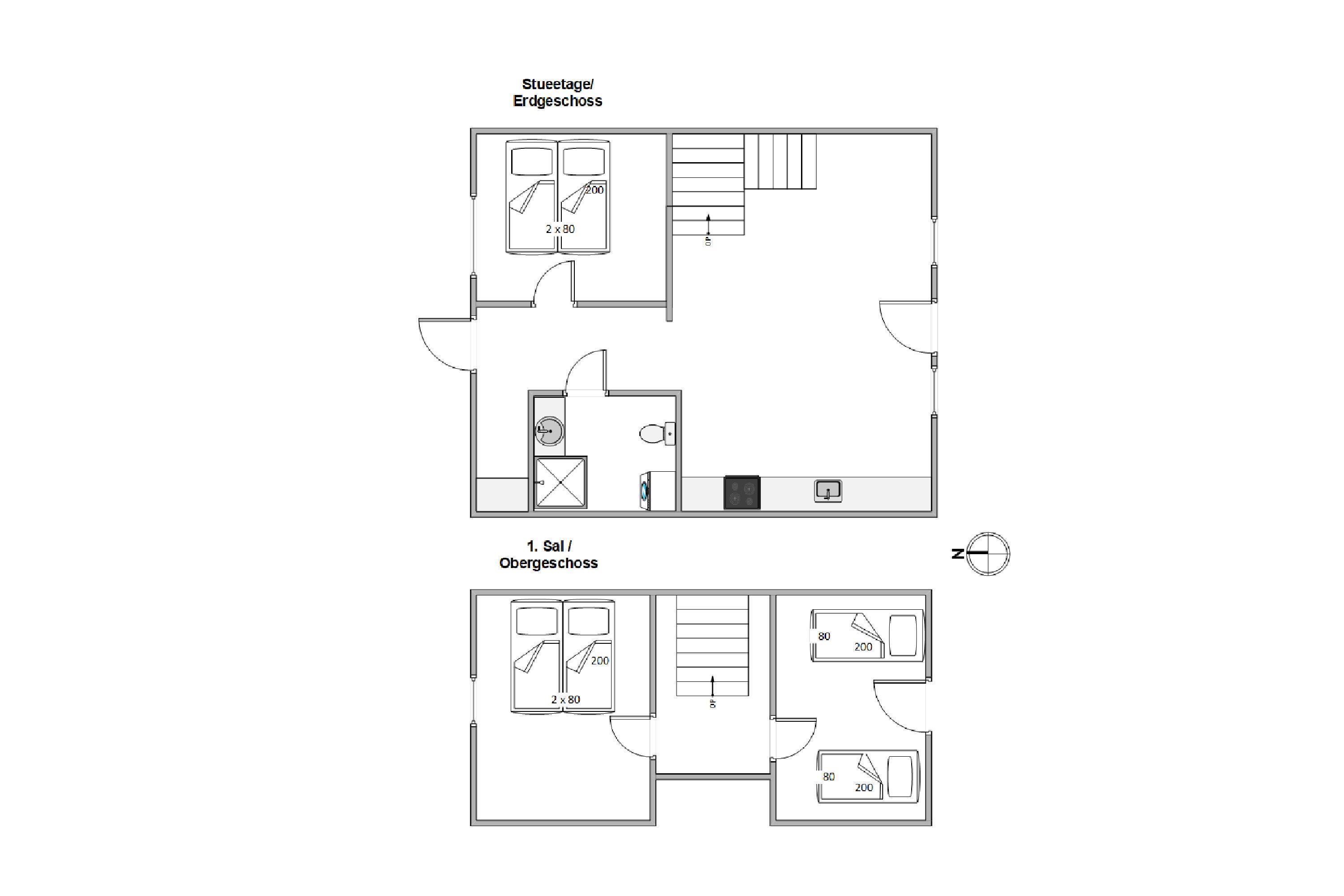 Det maritime rækkehus er delt op på to etager og rummer med sine 96 m² plads til 6 personer. Der er sørget for god skabsplads i de tre soveværelser, og de lyse farver, der er fælles for alle husets rum og værelser, skaber både en behagelig atmosfære og en masse rummelighed.