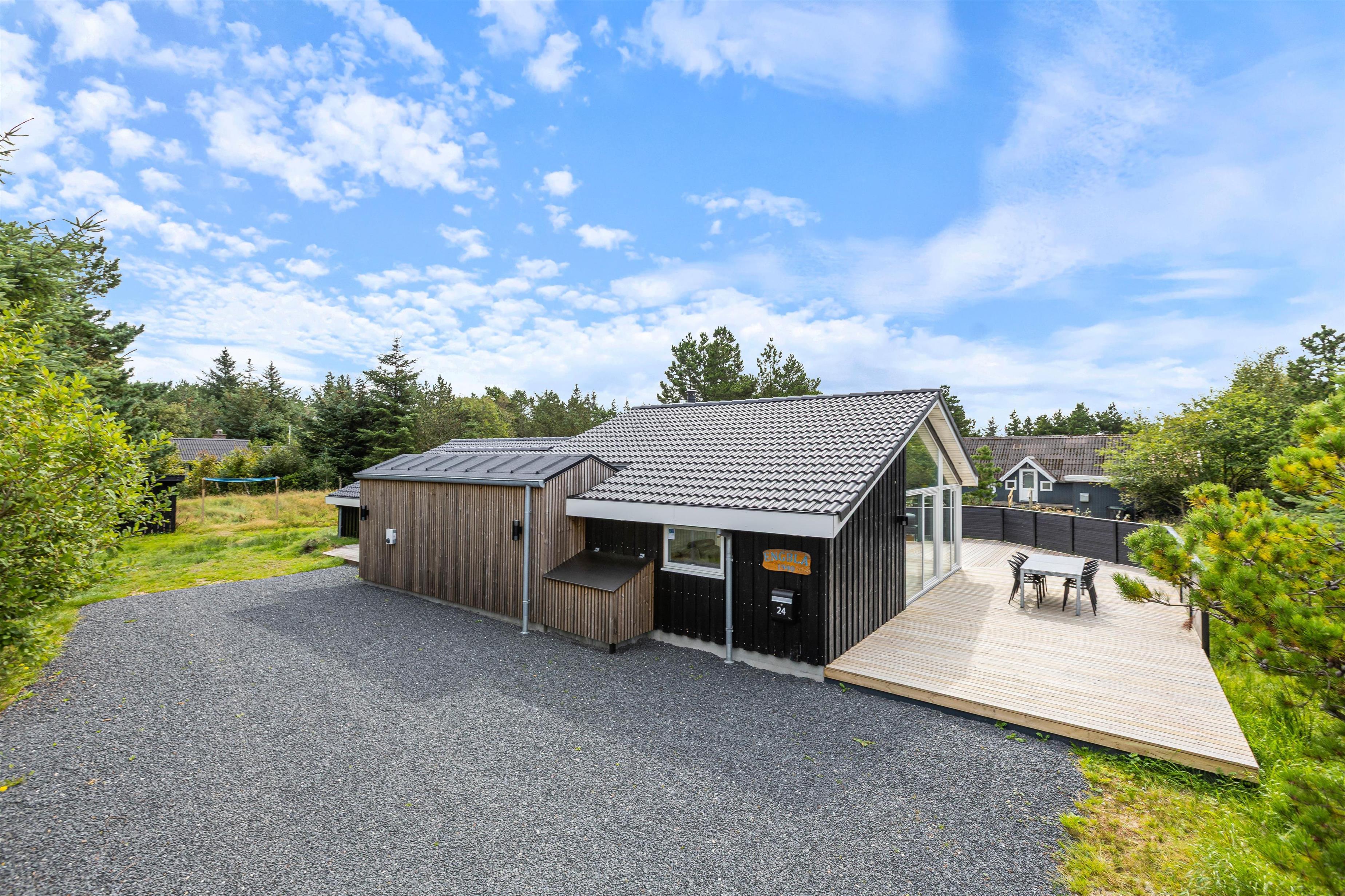 På Torskevej 24 venter jer et moderne, lyst og hyggeligt feriehus, hvor de mange vinduer giver et særligt smukt lysindfald. I det rummelige opholds- og spiseområde med køkken kan I samles om at lave mad, spille spil eller nyde en spændende filmaften. En knitrende ild i brændeovnen sætter prikken over i’et i feriestemningen. En lille billardturnering vil øge spændingsniveauet for de konkurrencemindede. Og ellers kan alle jo gøre præcis, hvad de har lyst til, for her er plads til alle.