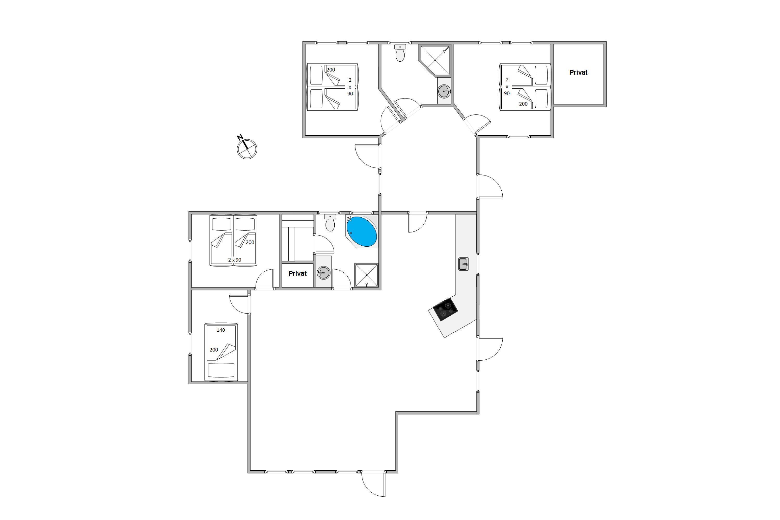 Sommerhuset er ideelt til en større børnefamilie eller to familier, der holder ferie sammen. Huset er indrettet med to badeværelser og et dejligt åbent køkken med både opvaskemaskine og mikroovn. Har I været ude i den friske luft det meste af dagen, kan I trække tilbage til huset, hvor spabadet og saunaen giver jer mulighed for at slappe af og få masser af varme til kroppen. Det er velvære til krop og sjæl.
