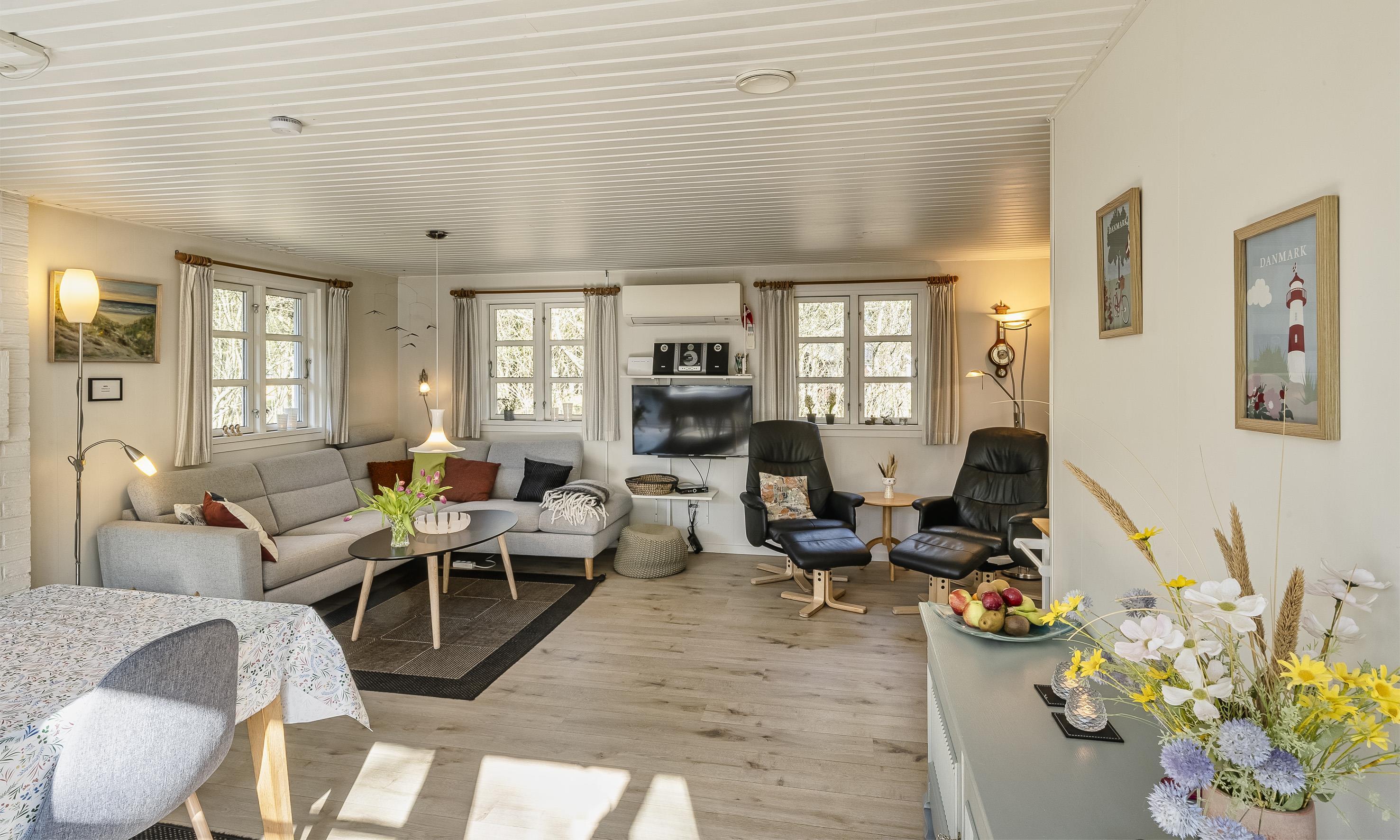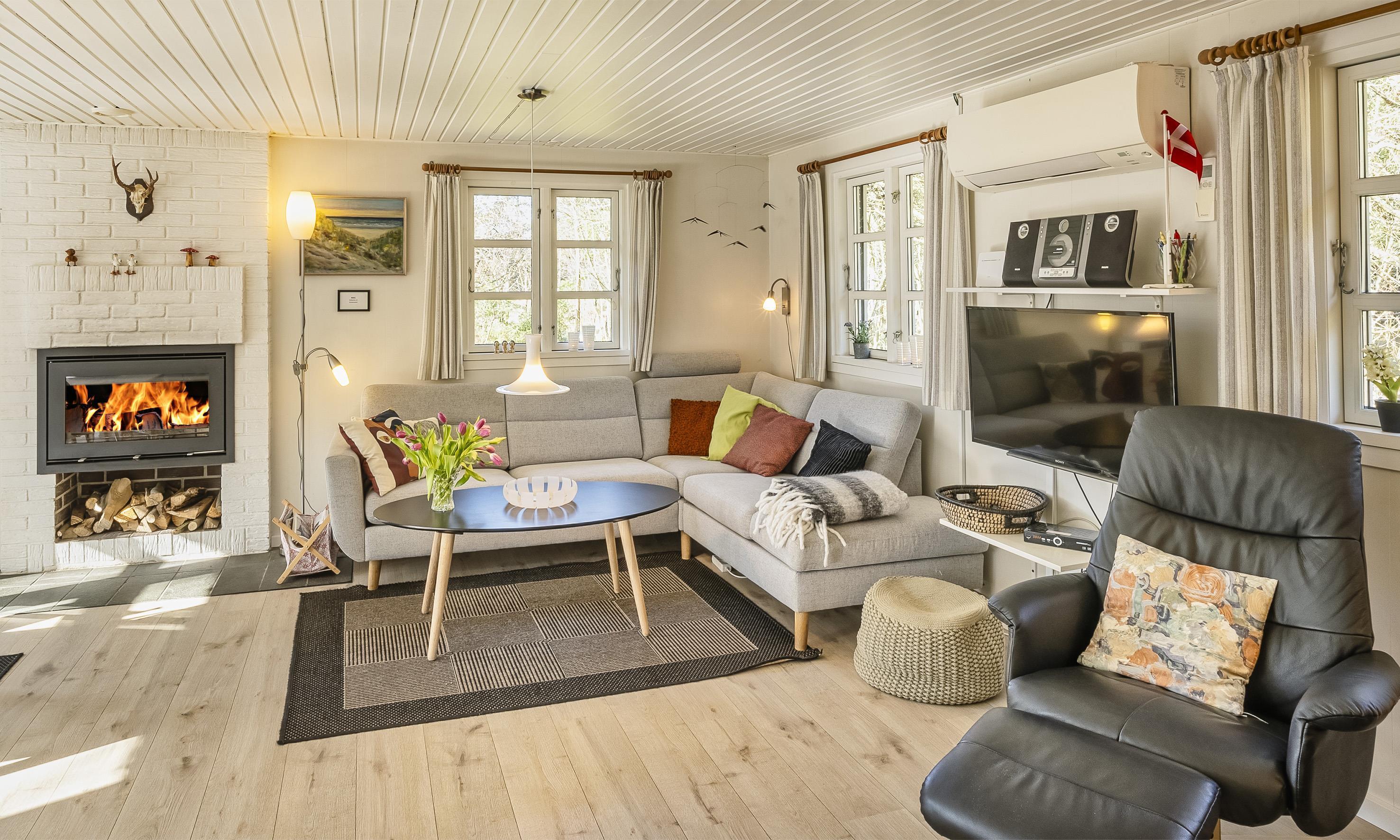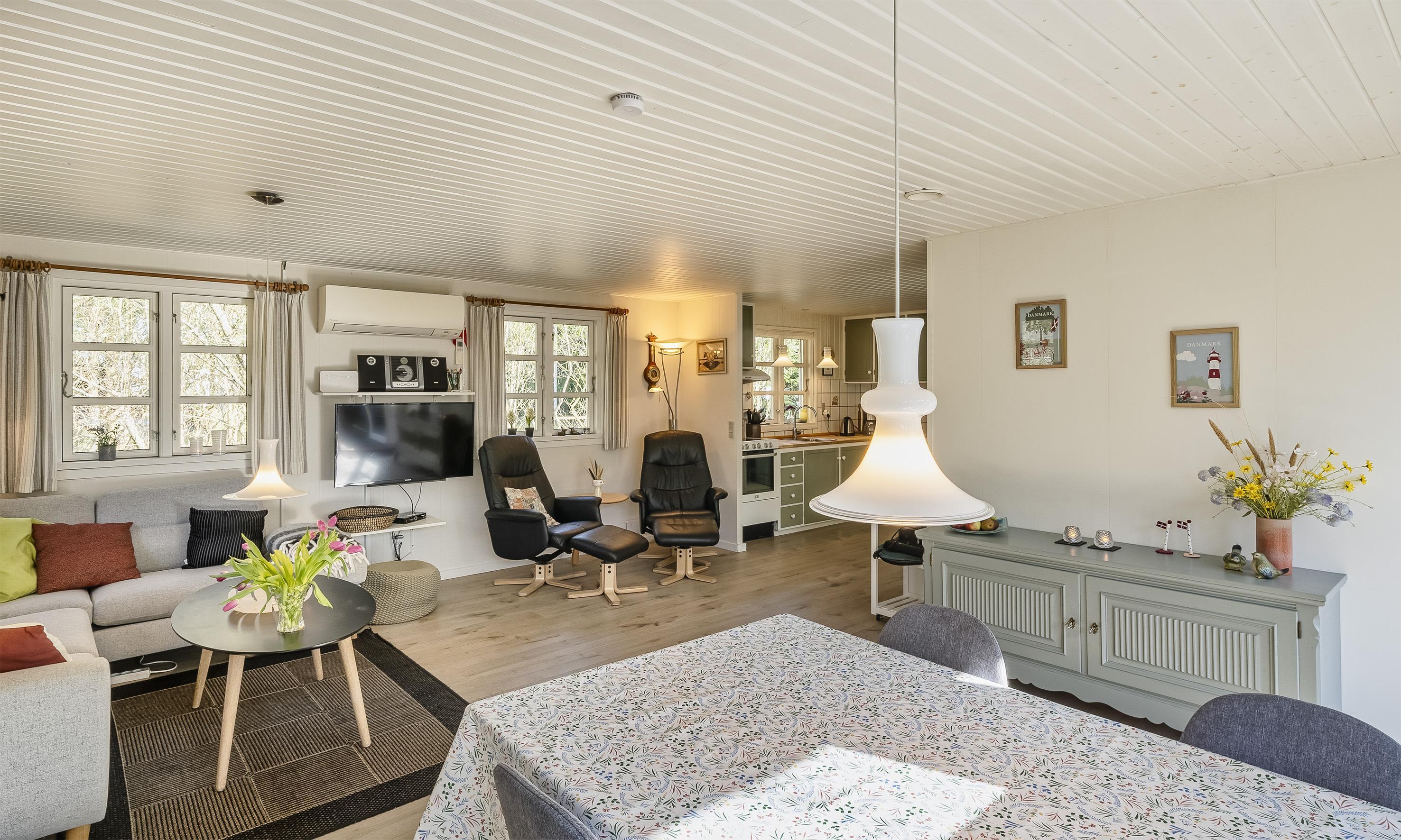 Huset gennemgik i 2020 en renovering, og indeholder mange af de ting man behøver for at holde en god ferie. Der er bl.a. vaskemaskine og tørretumbler, opvaskemaskine, brændeovn, lader til elbil Type2 og energivenlig varmepumpe.