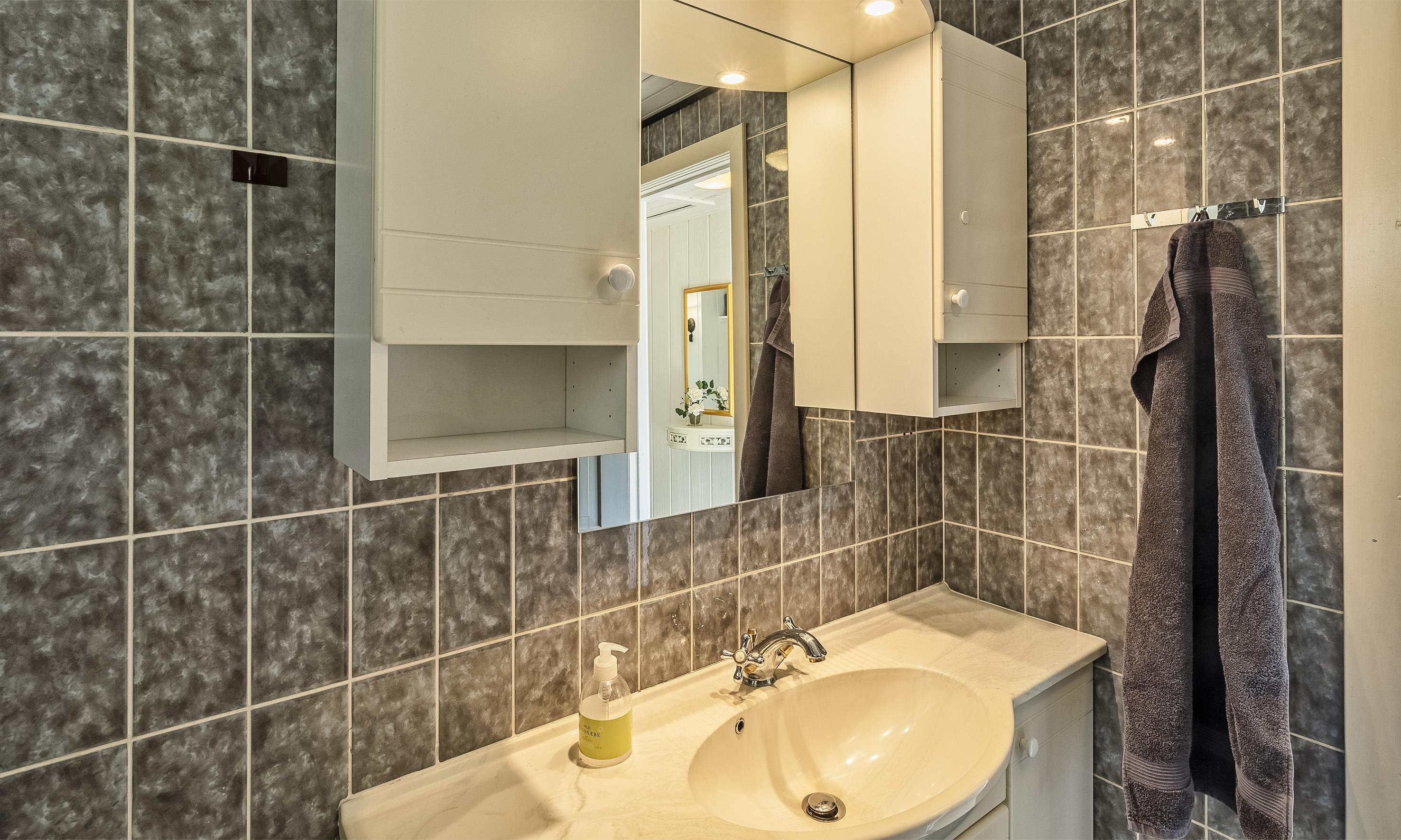 Badeværelse med bruser og vask
