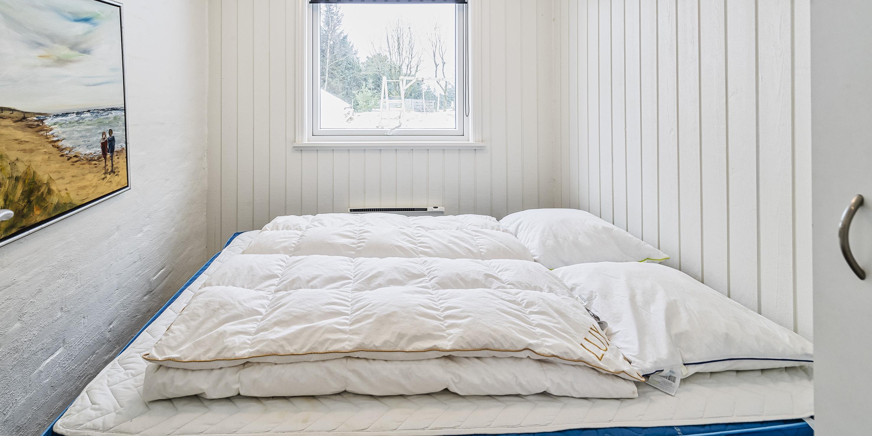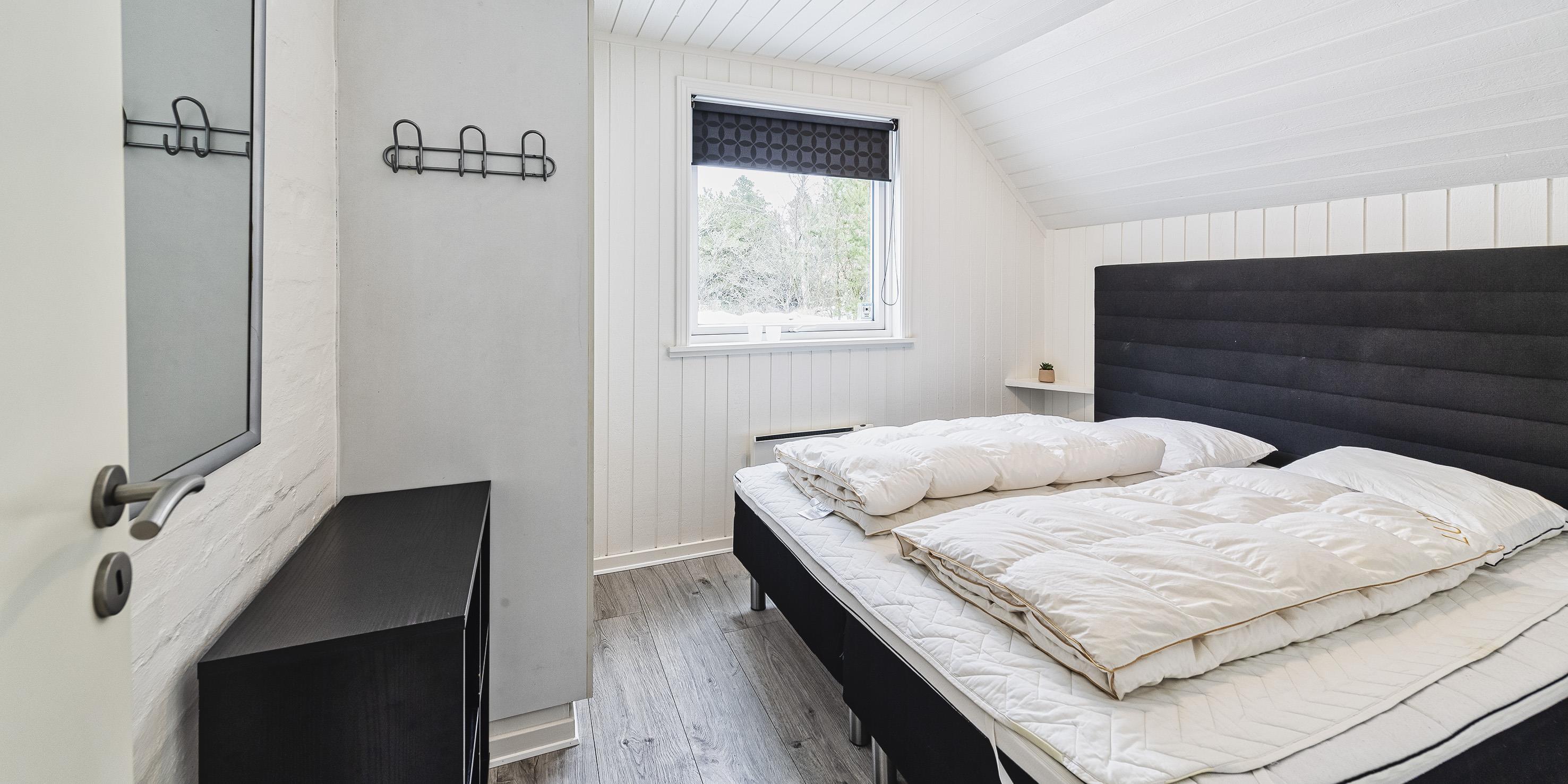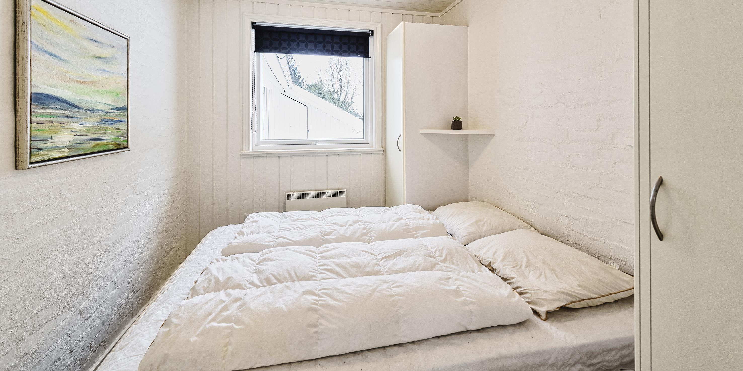 4 soveværelser. 1 med dobbeltseng 180x200 cm. 3 med smal dobbeltseng ( 140x200 cm)