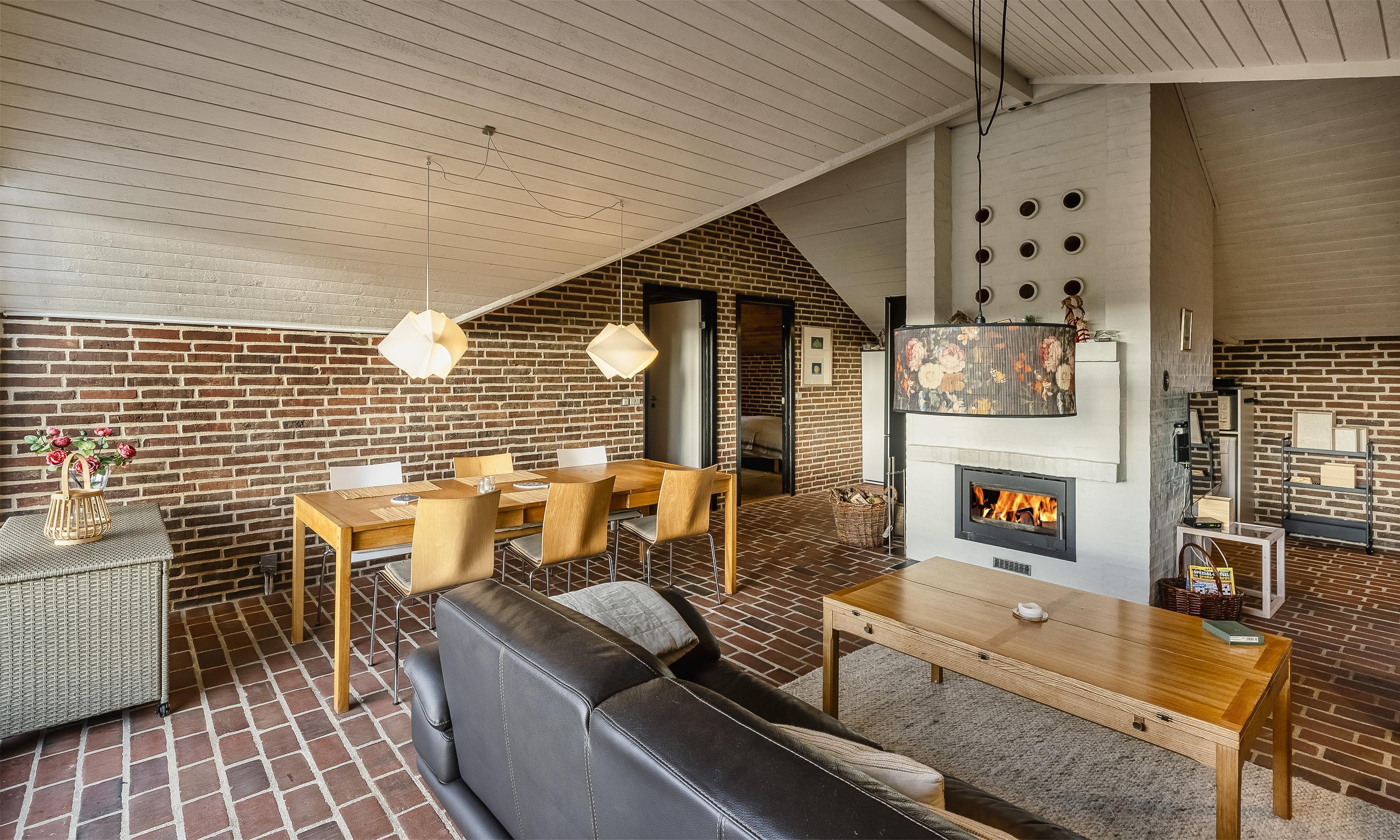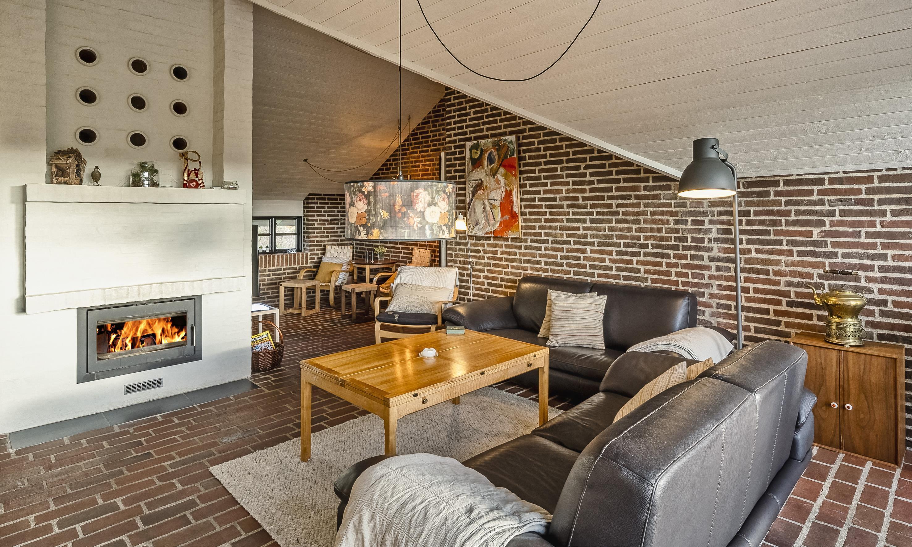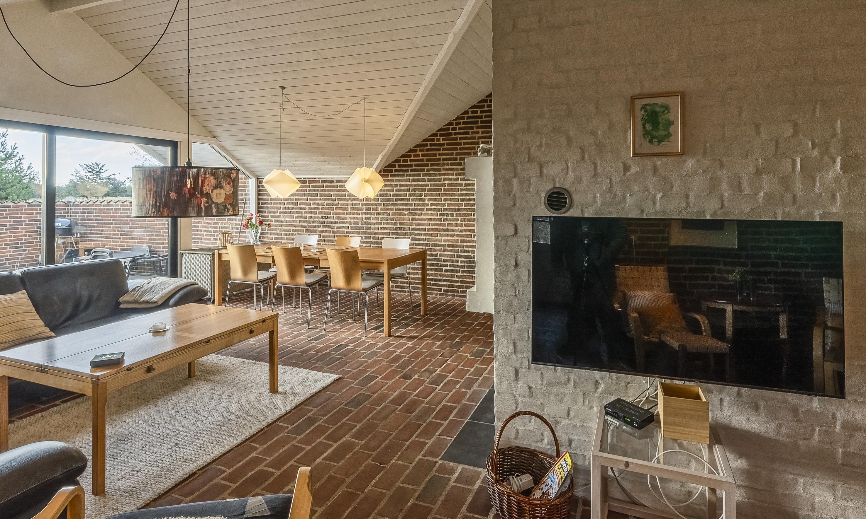 Sommerhuset: Lille entre med plads til overtøjet, 1 badeværelse af ældre dato, dog funktionelt og med gulvvarme. Dejlig opholdsstue med højt til loftet, pejs, spiseplads med fantastisk udsigt og udgang til terrassen. TV – hjørne med væghængt fjernsyn, som også kan drejes mod sofaerne (div. Tyske kanaler er tilgængelige). Der er endvidere trådløs internetadgang. Køkkenet fremstår funktionelt og veludstyret med bl.a. opvaskemaskine, mikroovn, komfur med varmluftsovn, emhætte og stort køle-/fryseskab. I køkkenet forefindes også en kombineret vaskemaskine og tørretumbler. Huset har i alt 3 soverum: DS + 2S + lille DS (120 cm. Bred).