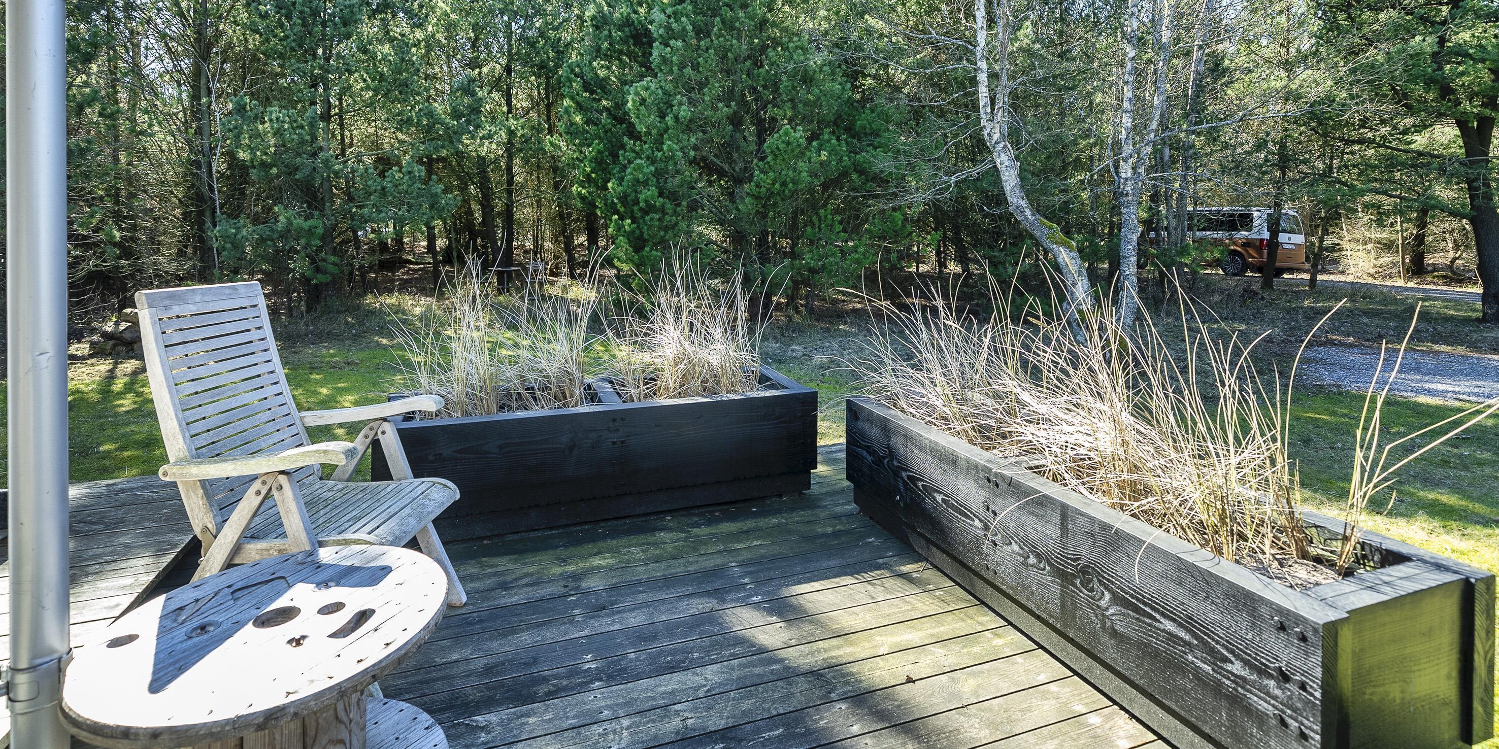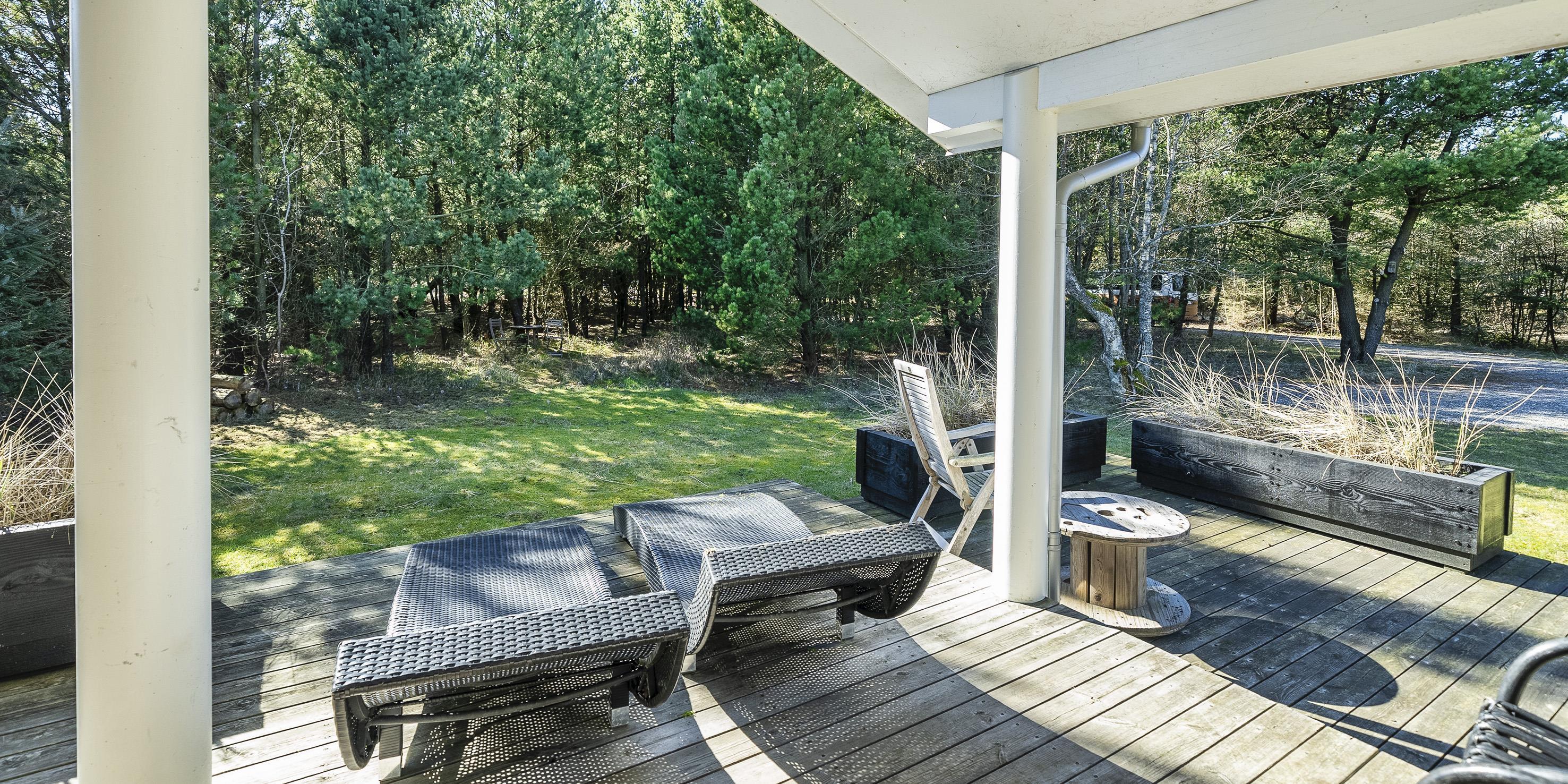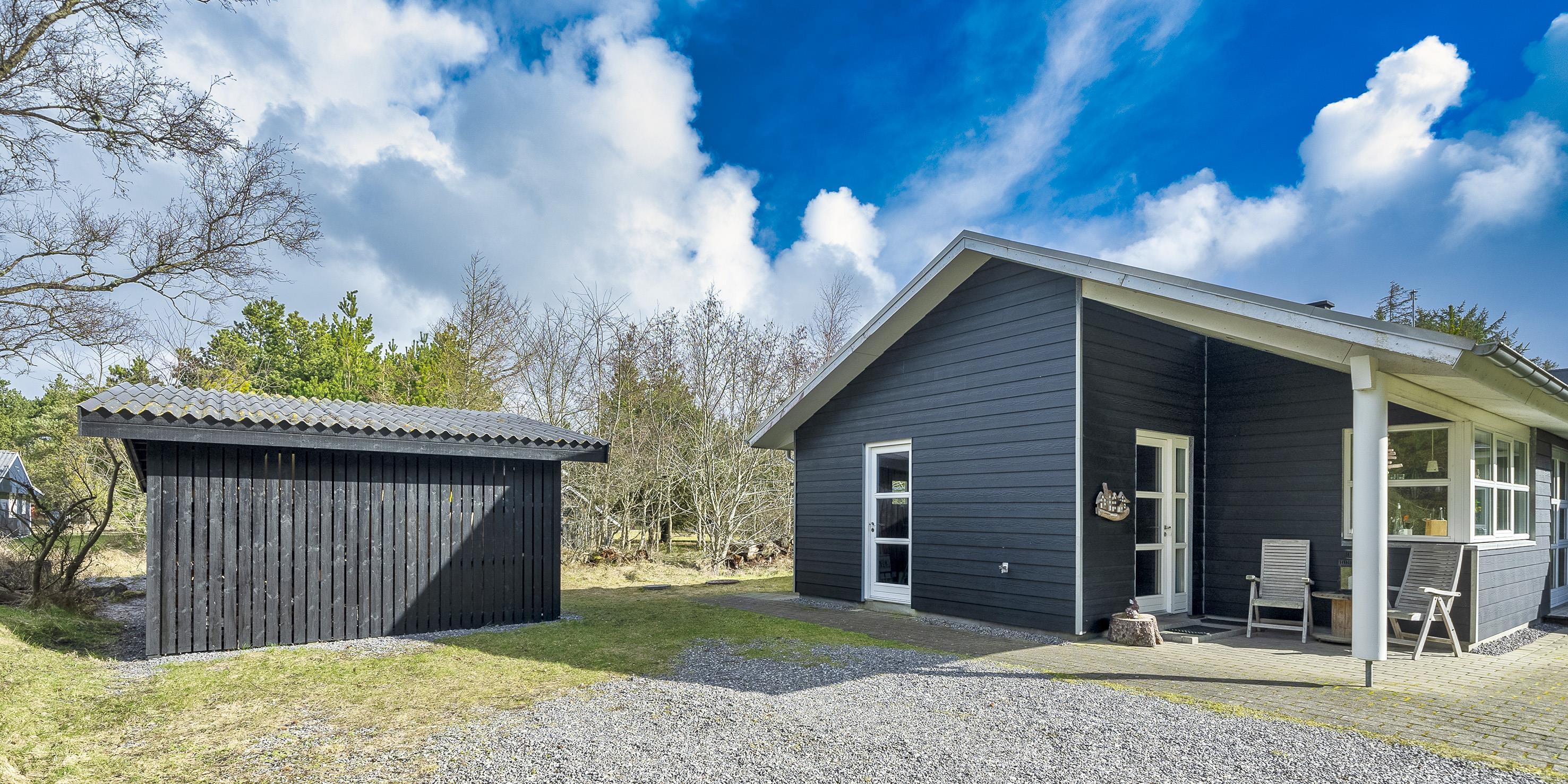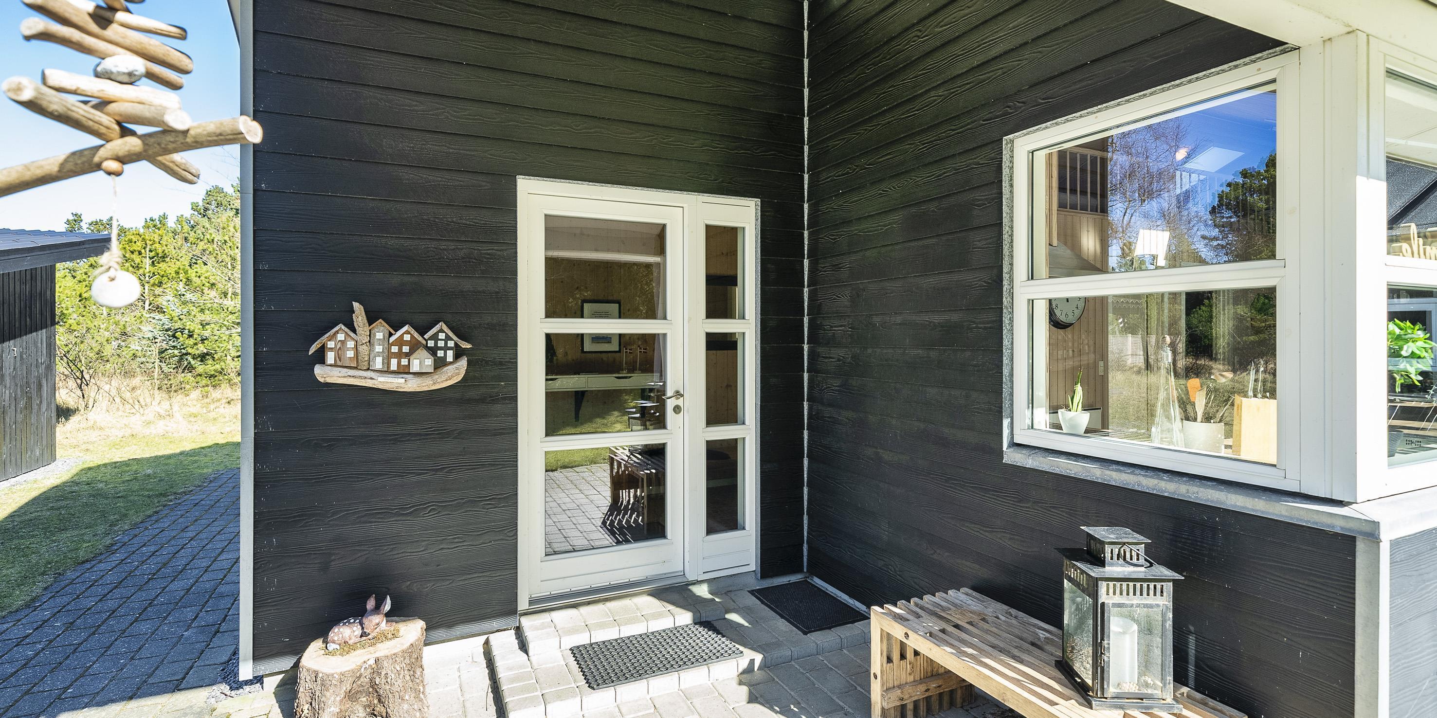 Moderne og velindrettet sommerhus til 6 personer, ca. 1.500 meter fra stranden, beliggende på stor delvis lukket grund. Mange træer er fældet rundt om huset sådan at solen rigtig kan komme ind og man kan nyde det på den skønne terrasse. Stor træterrasse i flere niveauer og en delvis overdækket terrasse. Huset indeholder: Entre indgangsparti med garderobeplads og vaskemaskine. Fra entré kommer man over i det store køkken-alrum med loft til kip, delvis flisegulve som parketgulve. Lyst og venligt vinkelkøkken med bageovn, keramisk kogeplade, opvaskemaskine, mikroovn og køle-/fryseskab. Stor spisestue med godt lysindfald fra 2 tagvinduer. Fra køkken-alrummet er der 2 hemse. Fra spisestuen går man et trin op i en hyggelig opholdsstue med brændeovn, fjernsyn med tv kanaler over Stofa (lille pakke). Smart-Tv. Trådløs internet (50/50). Playstation 3 samt diverse spil. Varmepumpe . Der er 3 soveværelser: DS + DS + DS. Master badeværelse med bruser/wc, sauna og spa. Gæstetoilet med bruser. Der er tilladt 2 små hunde med en ryghøjde på max. 40 cm – eller én stor hund. Katte er ikke tilladt! Cykelskur med mere ude på grunden. Byggeår 2009.