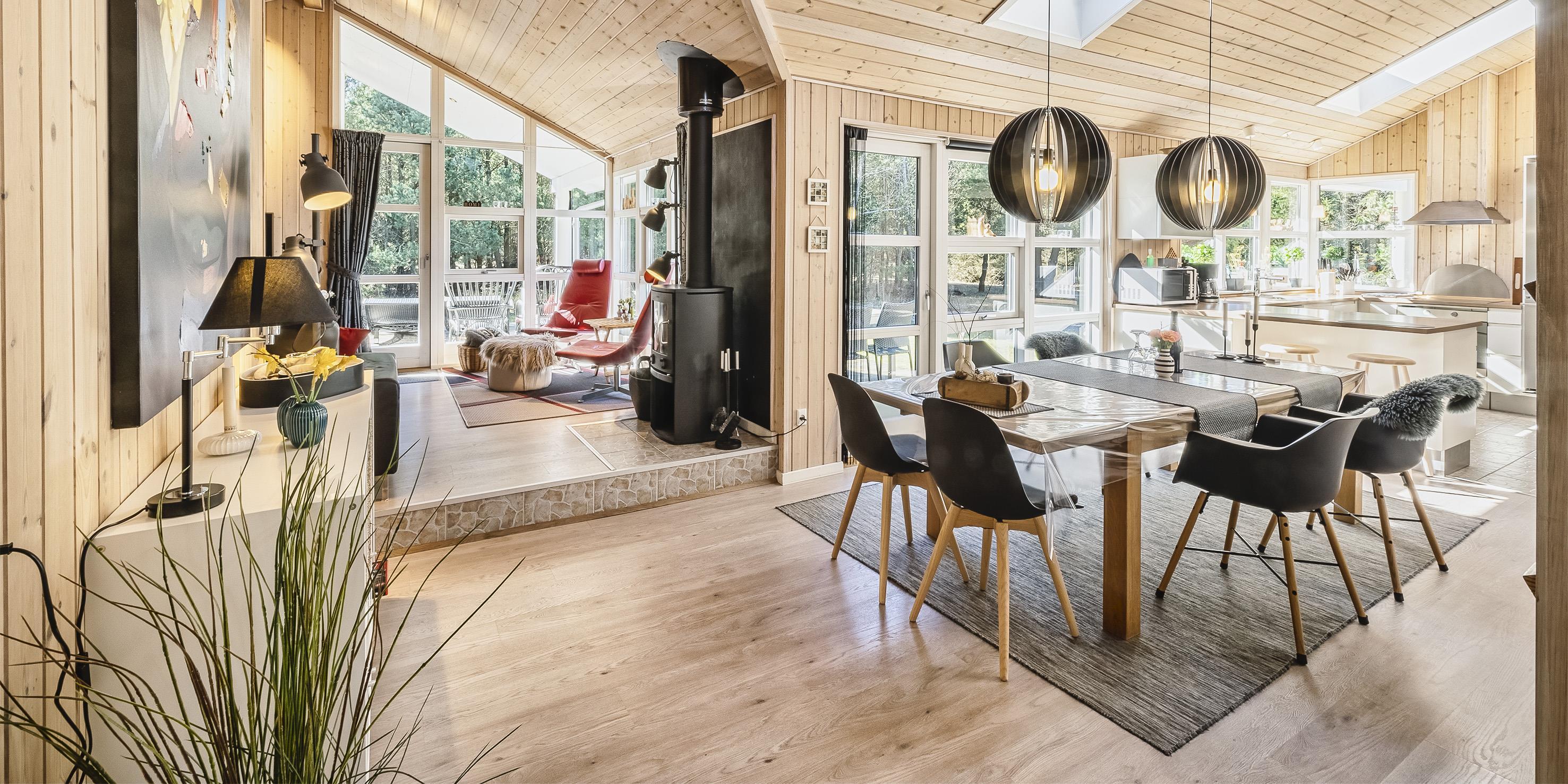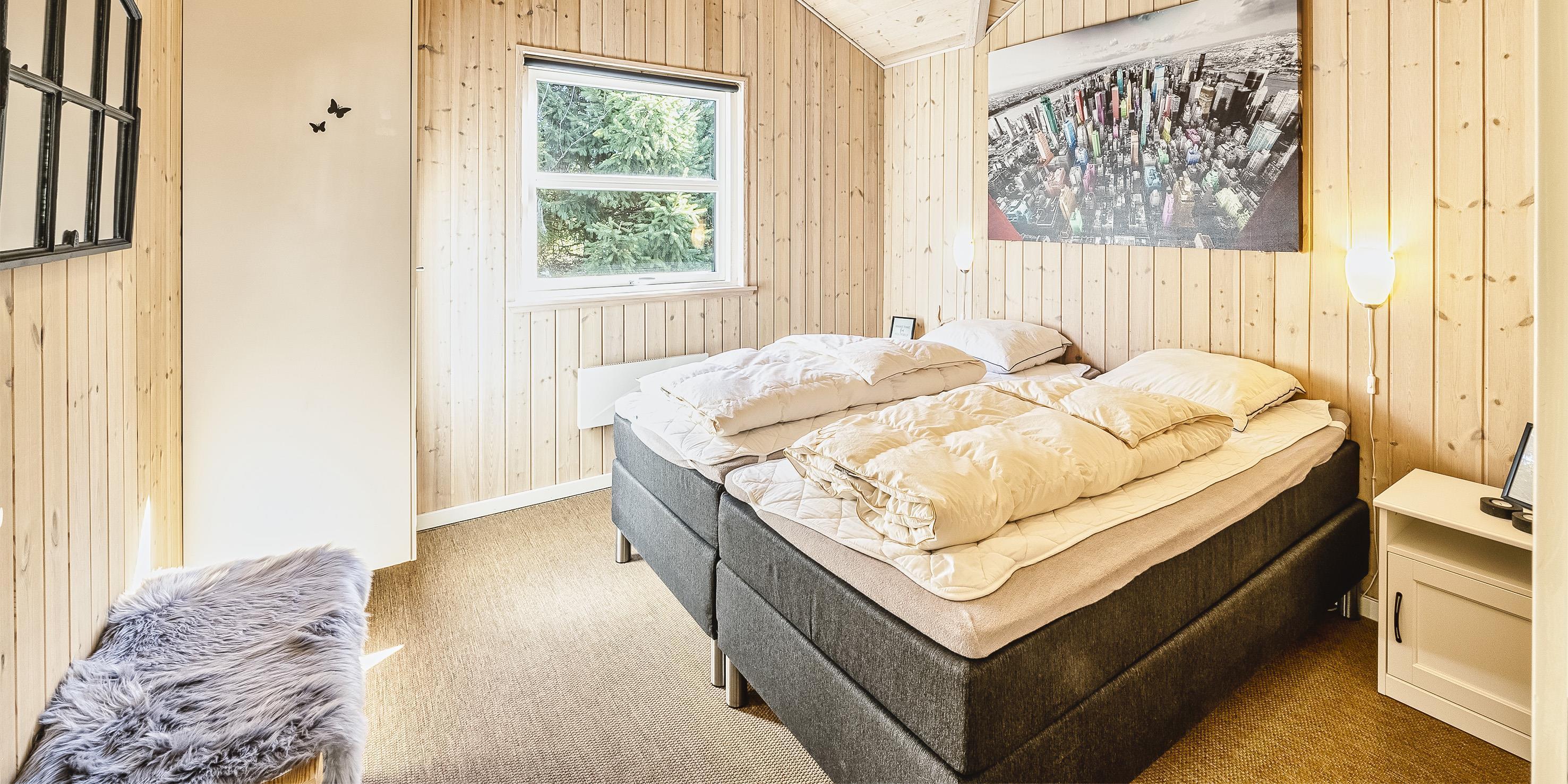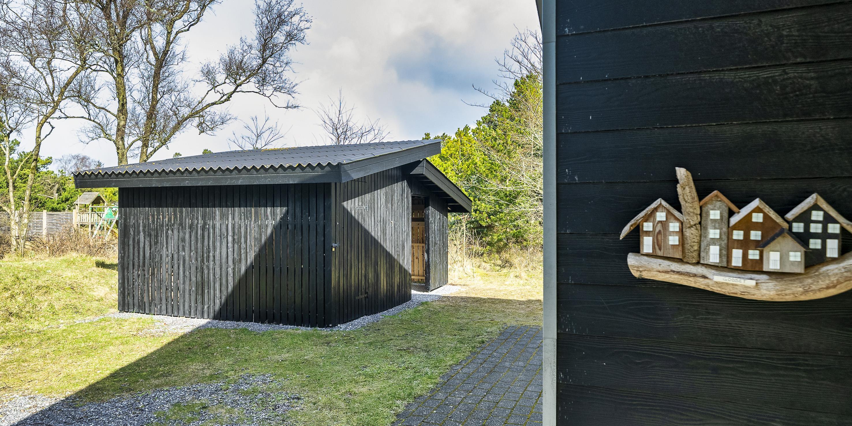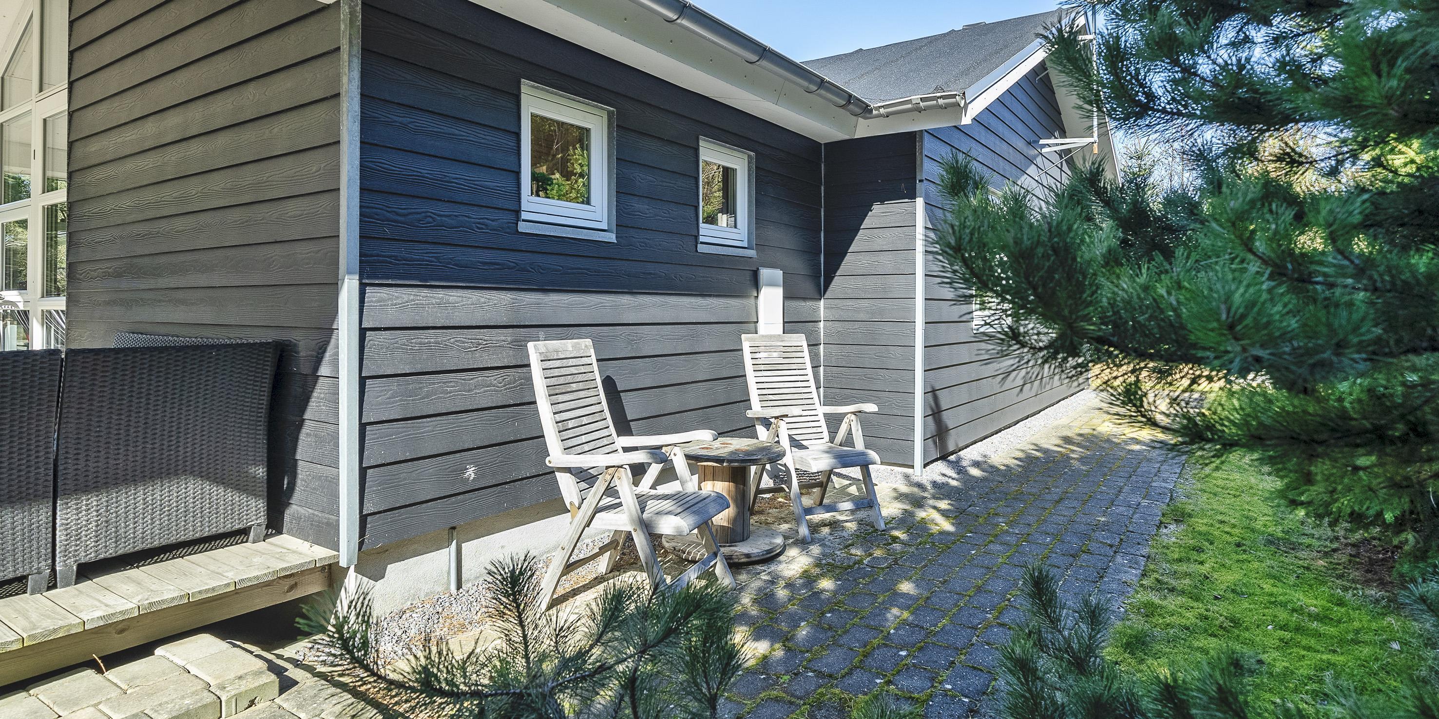 Moderne og velindrettet sommerhus til 6 personer, ca. 1.500 meter fra stranden, beliggende på stor delvis lukket grund. Mange træer er fældet rundt om huset sådan at solen rigtig kan komme ind og man kan nyde det på den skønne terrasse. Stor træterrasse i flere niveauer og en delvis overdækket terrasse. Huset indeholder: Entre indgangsparti med garderobeplads og vaskemaskine. Fra entré kommer man over i det store køkken-alrum med loft til kip, delvis flisegulve som parketgulve. Lyst og venligt vinkelkøkken med bageovn, keramisk kogeplade, opvaskemaskine, mikroovn og køle-/fryseskab. Stor spisestue med godt lysindfald fra 2 tagvinduer. Fra køkken-alrummet er der 2 hemse. Fra spisestuen går man et trin op i en hyggelig opholdsstue med brændeovn, fjernsyn med tv kanaler over Stofa (lille pakke). Smart-Tv. Trådløs internet (50/50). Playstation 3 samt diverse spil. Varmepumpe . Der er 3 soveværelser: DS + DS + DS. Master badeværelse med bruser/wc, sauna og spa. Gæstetoilet med bruser. Der er tilladt 2 små hunde med en ryghøjde på max. 40 cm – eller én stor hund. Katte er ikke tilladt! Cykelskur med mere ude på grunden. Byggeår 2009.