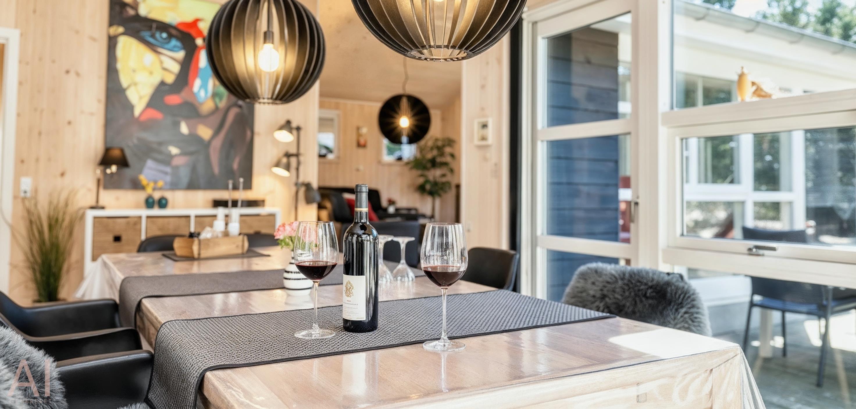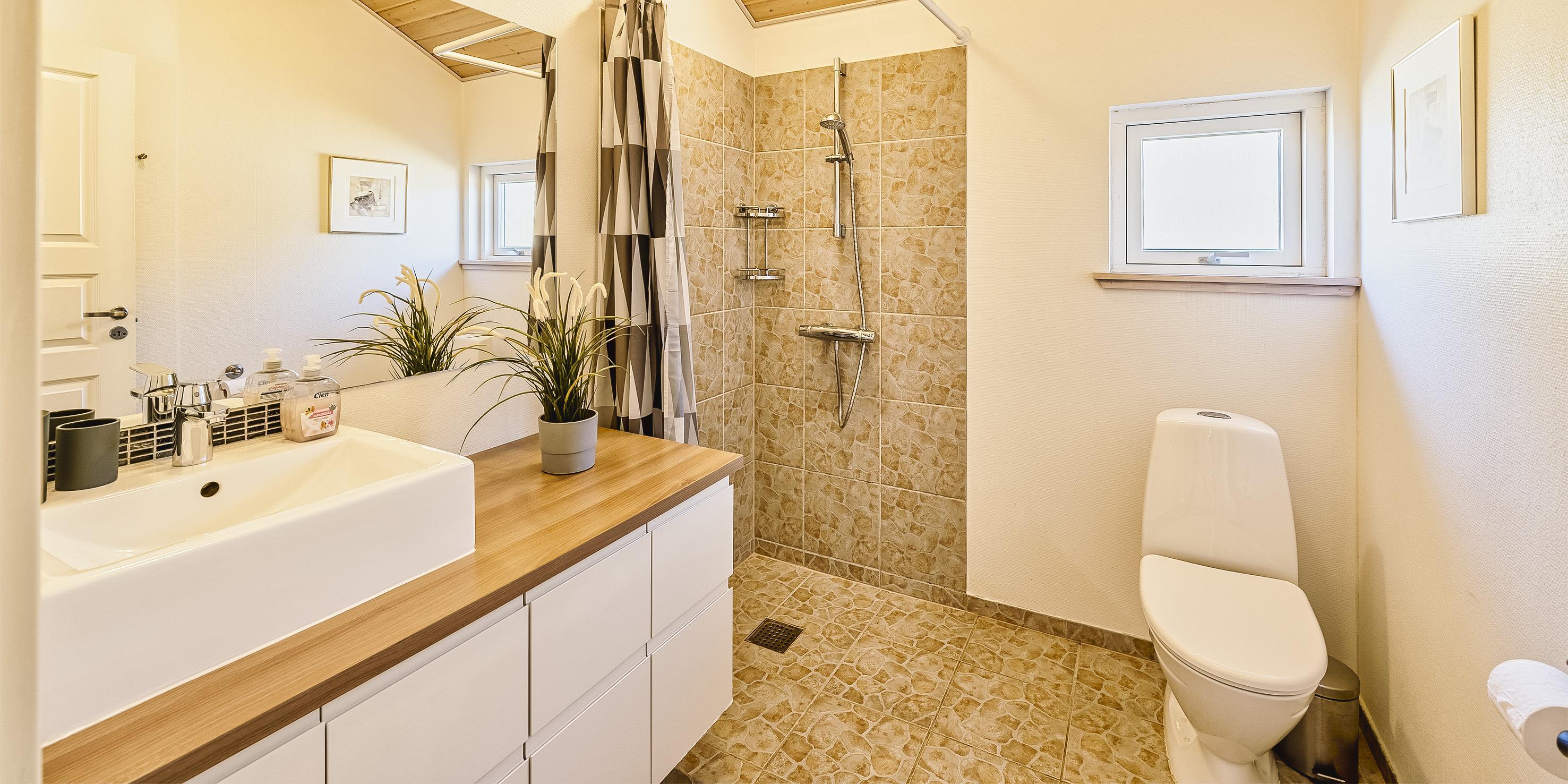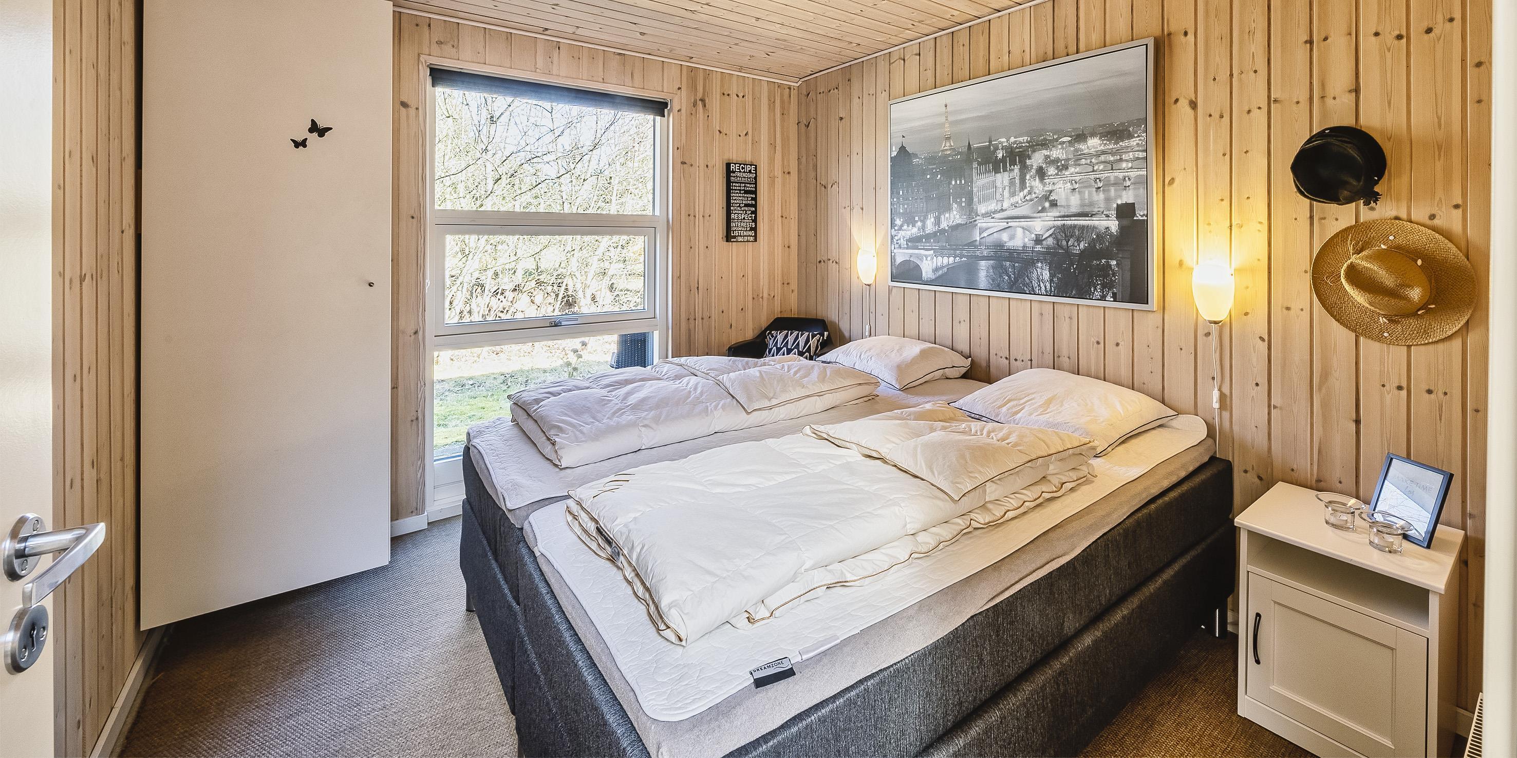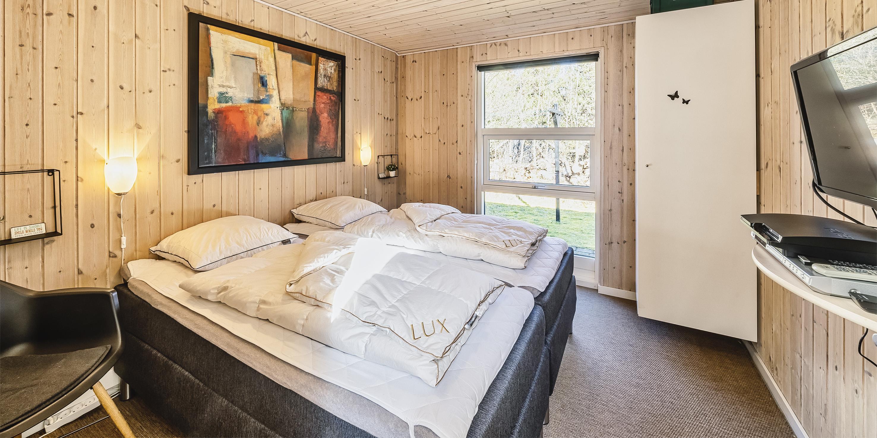Moderne og velindrettet sommerhus til 6 personer, ca. 1.500 meter fra stranden, beliggende på stor delvis lukket grund. Mange træer er fældet rundt om huset sådan at solen rigtig kan komme ind og man kan nyde det på den skønne terrasse. Stor træterrasse i flere niveauer og en delvis overdækket terrasse. Huset indeholder: Entre indgangsparti med garderobeplads og vaskemaskine. Fra entré kommer man over i det store køkken-alrum med loft til kip, delvis flisegulve som parketgulve. Lyst og venligt vinkelkøkken med bageovn, keramisk kogeplade, opvaskemaskine, mikroovn og køle-/fryseskab. Stor spisestue med godt lysindfald fra 2 tagvinduer. Fra køkken-alrummet er der 2 hemse. Fra spisestuen går man et trin op i en hyggelig opholdsstue med brændeovn, fjernsyn med tv kanaler over Stofa (lille pakke). Smart-Tv. Trådløs internet (50/50). Playstation 3 samt diverse spil. Varmepumpe . Der er 3 soveværelser: DS + DS + DS. Master badeværelse med bruser/wc, sauna og spa. Gæstetoilet med bruser. Der er tilladt 2 små hunde med en ryghøjde på max. 40 cm – eller én stor hund. Katte er ikke tilladt! Cykelskur med mere ude på grunden. Byggeår 2009.