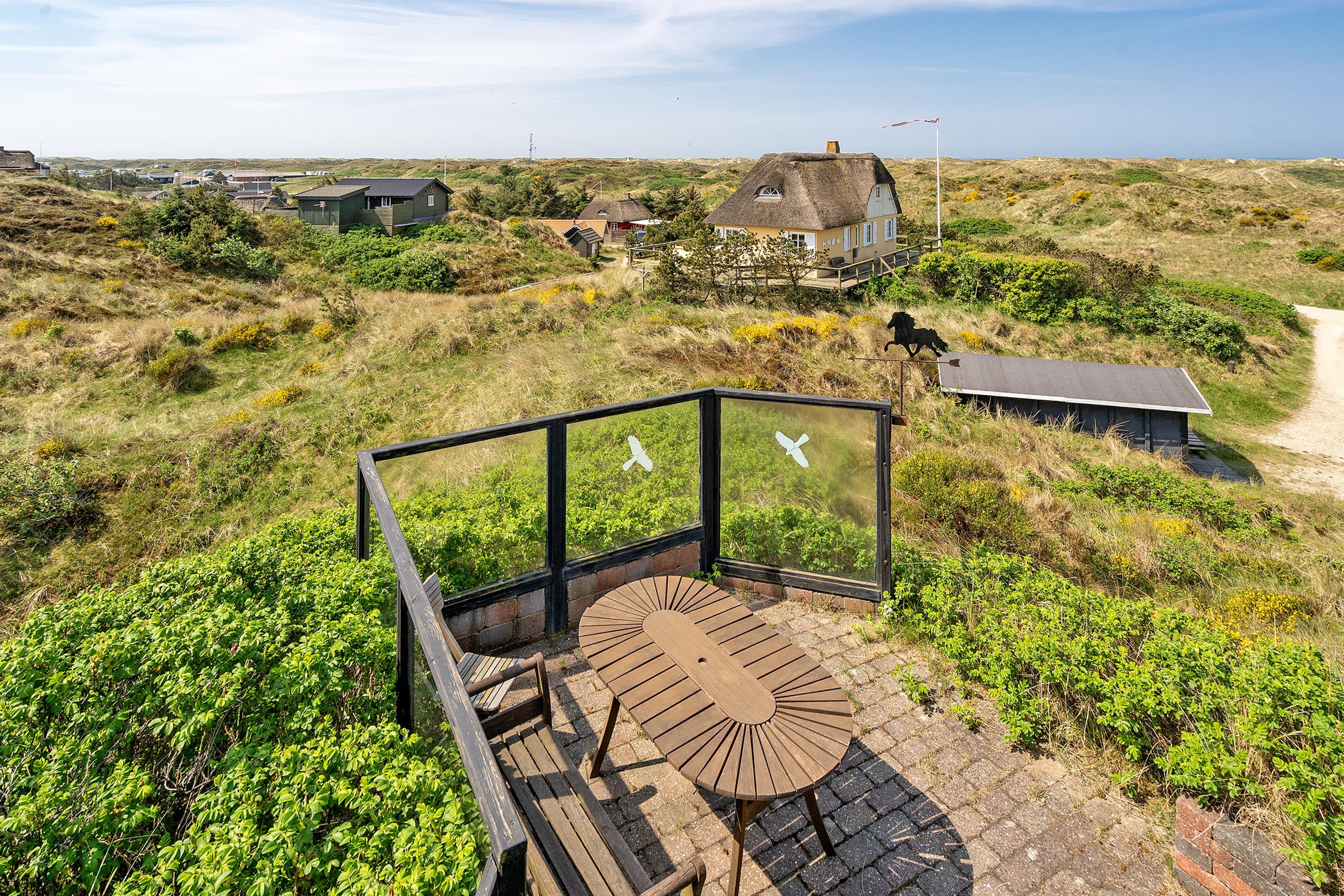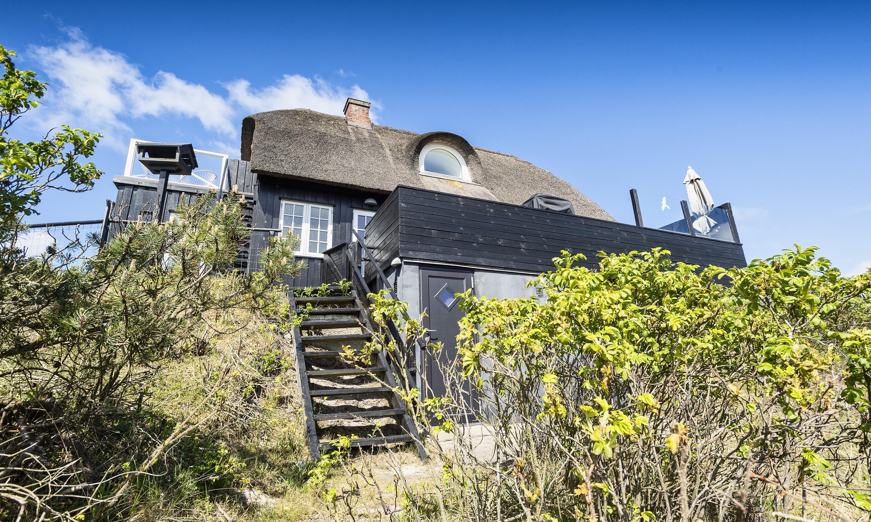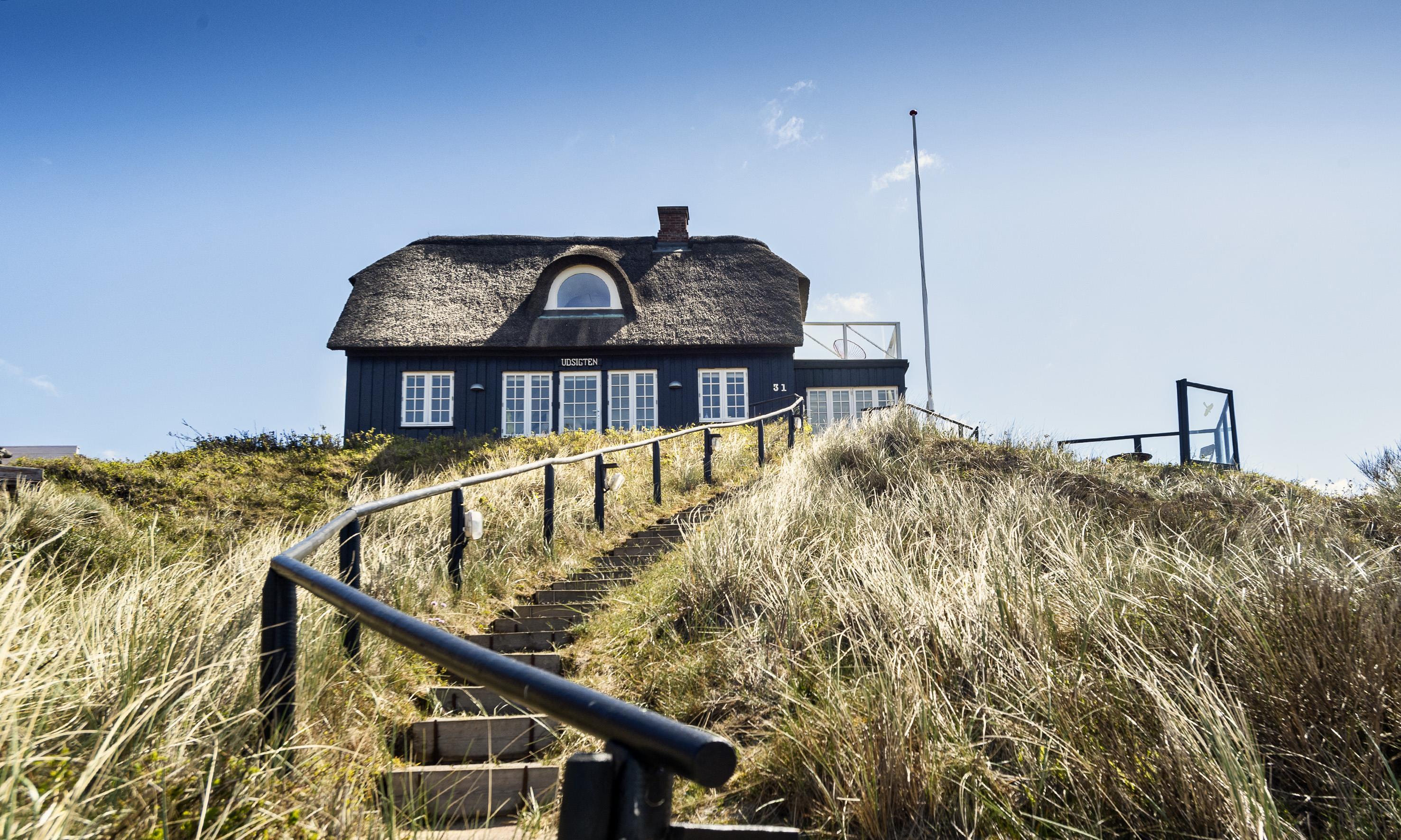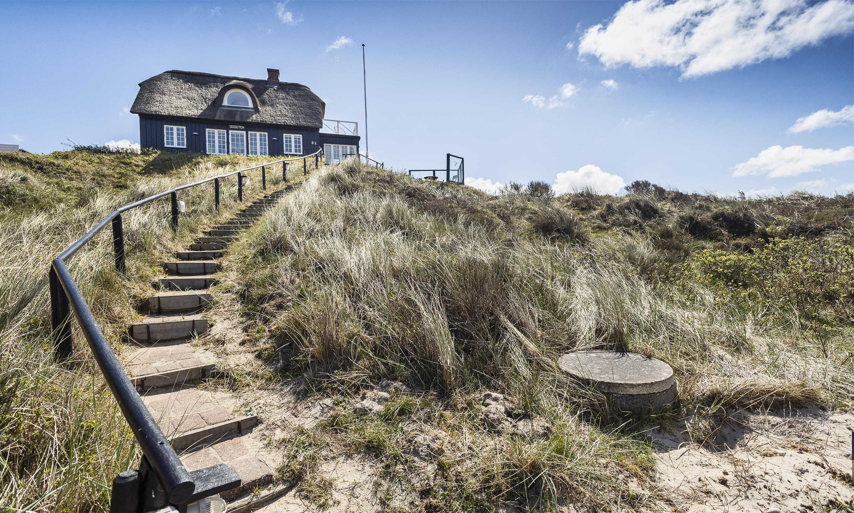 ”Havudsigten” er en af de få perler i Vejers der er beliggende på en klittop med kun 100 meter til Vejers Sydstrand. Sommerhuset er fordelt på 2 etager til 6 personer med et fantastisk panoramablik over klitterne samt havkig fra stueplan, og fra 1. sal er der panoramaudsigt og havudsigt fra de stor gavlvinduer.